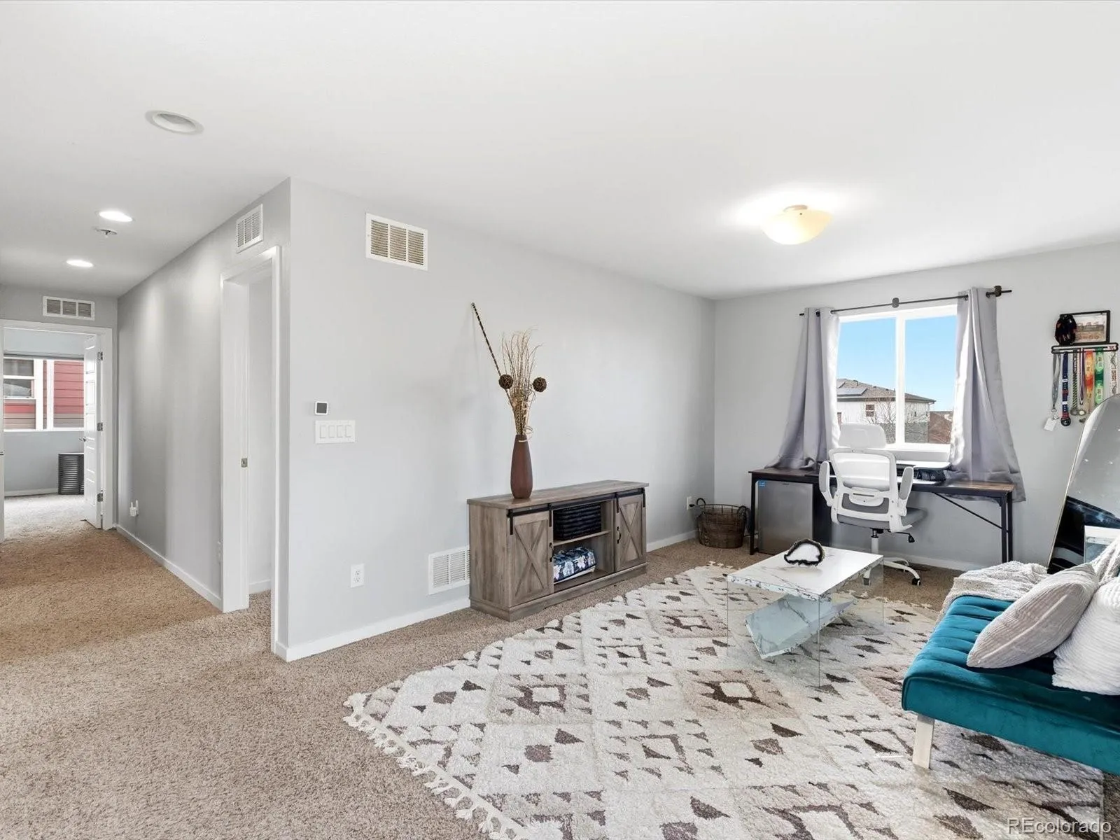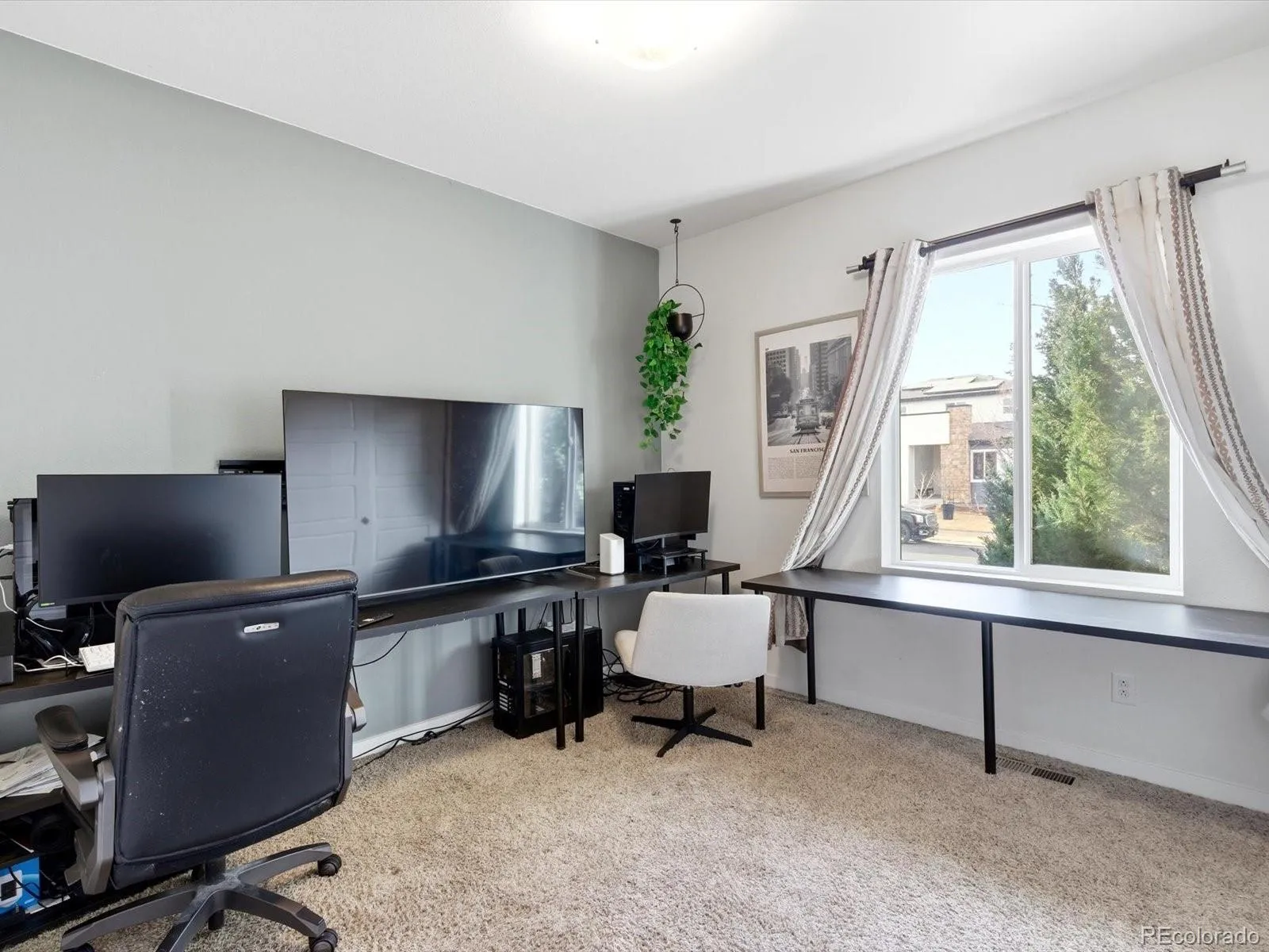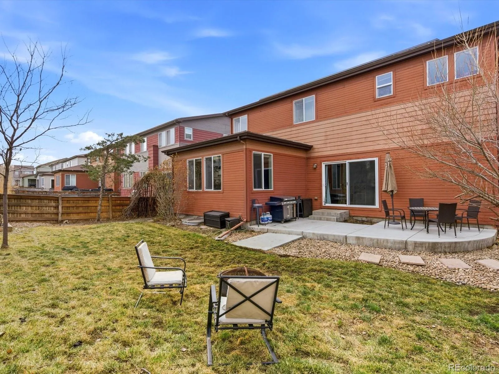 Welcome to this contemporary, modern home in the bustling Reunion neighborhood. Seller owned TESLA solar panels add to the energy efficiency of this home. Enjoy high ceilings and bright windows in the main open concept living area. Large kitchen makes cooking fun and social with loads of storage, stainless steel appliances, gas stove, huge island, and tile backsplash. From your kitchen conversation and entertaining flow easily into the oversized dining room and family room. Main floor has a tucked away dedicated bedroom and bathroom for a quiet retreat for guests or a flexible space for a home office. Upstairs you are greeted with loads of light from the open loft perfect for relaxing, work or play. Spacious master suite with a large walk-in closet & spa style shower. Two additional bedrooms, a laundry room and a full bathroom complete the upstairs. Large lot with a fenced yard and concrete patio makes entertaining a breeze. Over 800 sqft of unfinished basement, is yours to create additional space or use for a workout or crafting area. Reunion is wonderful place to live with a sense of community boasting two pools, recreation center, huge Reunion park with lakes, playgrounds, pickleball/tennis court, two Elementary Schools, a K-8 charter school, a charter High School as well as the Reunion neighborhood coffee shop! Seller owned paid off Tesla solar keeps energy costs down. Don’t miss your chance to own this vibrant home in an energetic community!