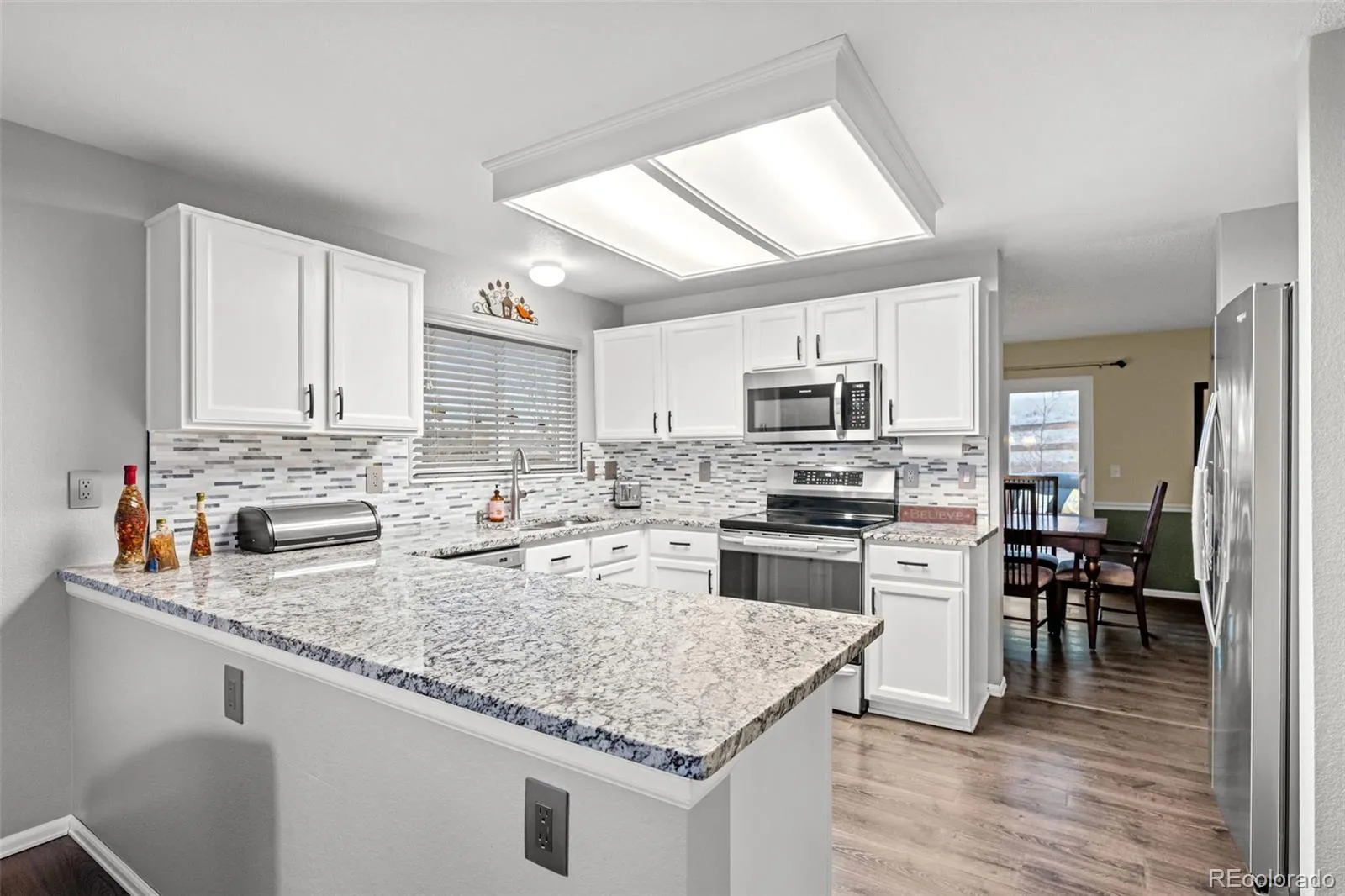 Step inside to a bright, thoughtfully designed floor plan with stylish updates and abundant natural light throughout. The spacious kitchen features modern finishes, ample cabinetry, and generous counter space, flowing seamlessly into the inviting family room—ideal for everyday living and effortless entertaining. Expansive windows frame serene views of the open space, creating a beautiful connection to the outdoors.