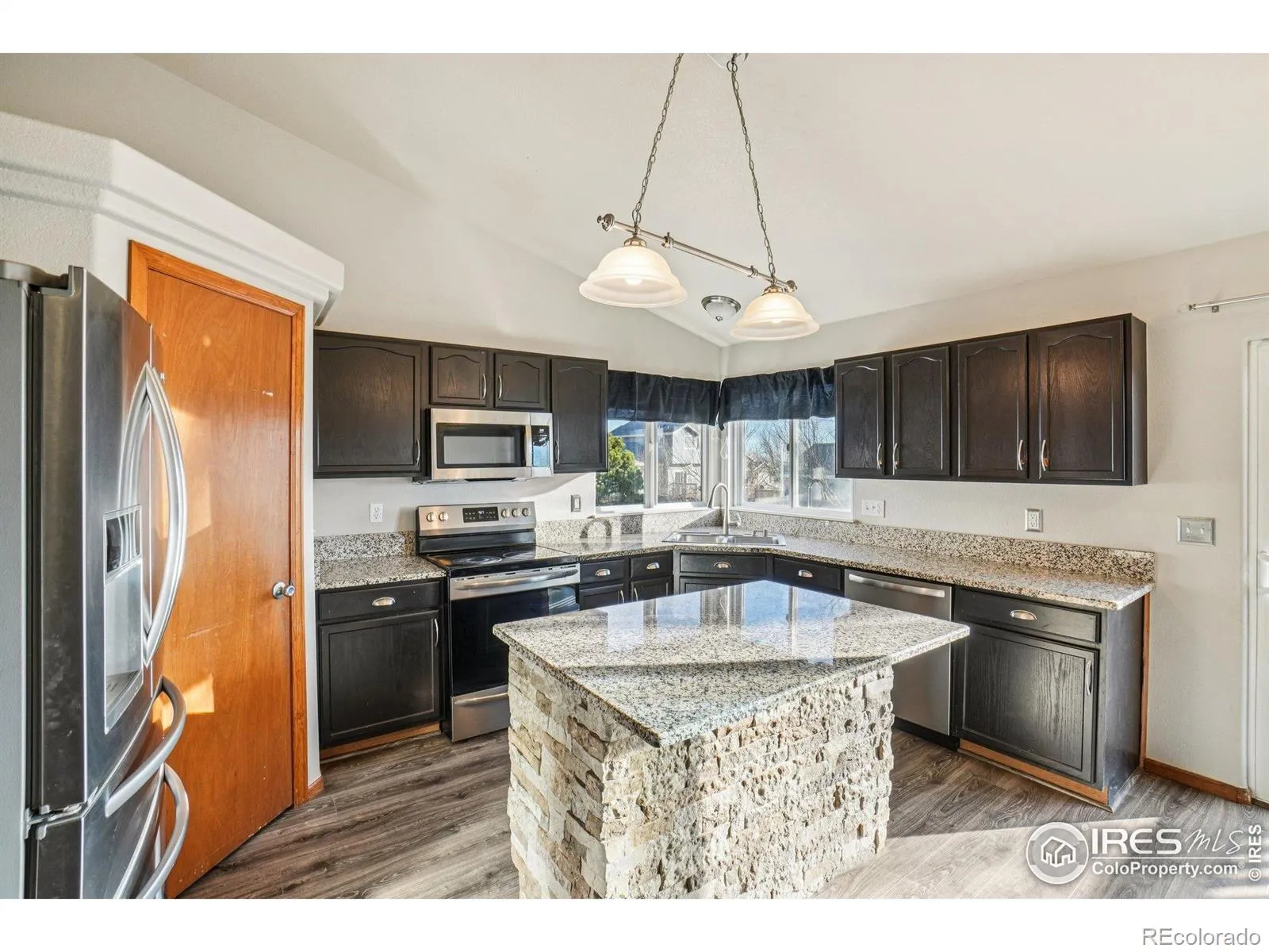 Ask about our Preferred Lender incentive. Gorgeous West Loveland home nestled near the foothills with NO METRO. This bright & beautiful 4 bed/ 3 bath home features an open flowing floor plan, vaulted ceilings, new luxury vinyl plank flooring, & tons of natural light. Large eat-in kitchen features granite countertops, SS appliances, & dark cabinetry. Two separate living spaces make this home easy to host & entertain. Large primary bedroom with 5-piece bath & spacious walk-in closet. Amazing west facing lot with mature trees. Oversized 3-Car garage & storage shed in backyard. Walking distance to Ponderosa Elementary and Erwin Middle. Convenient location easy access to golf, Estes Park, and Mahaffey Park.