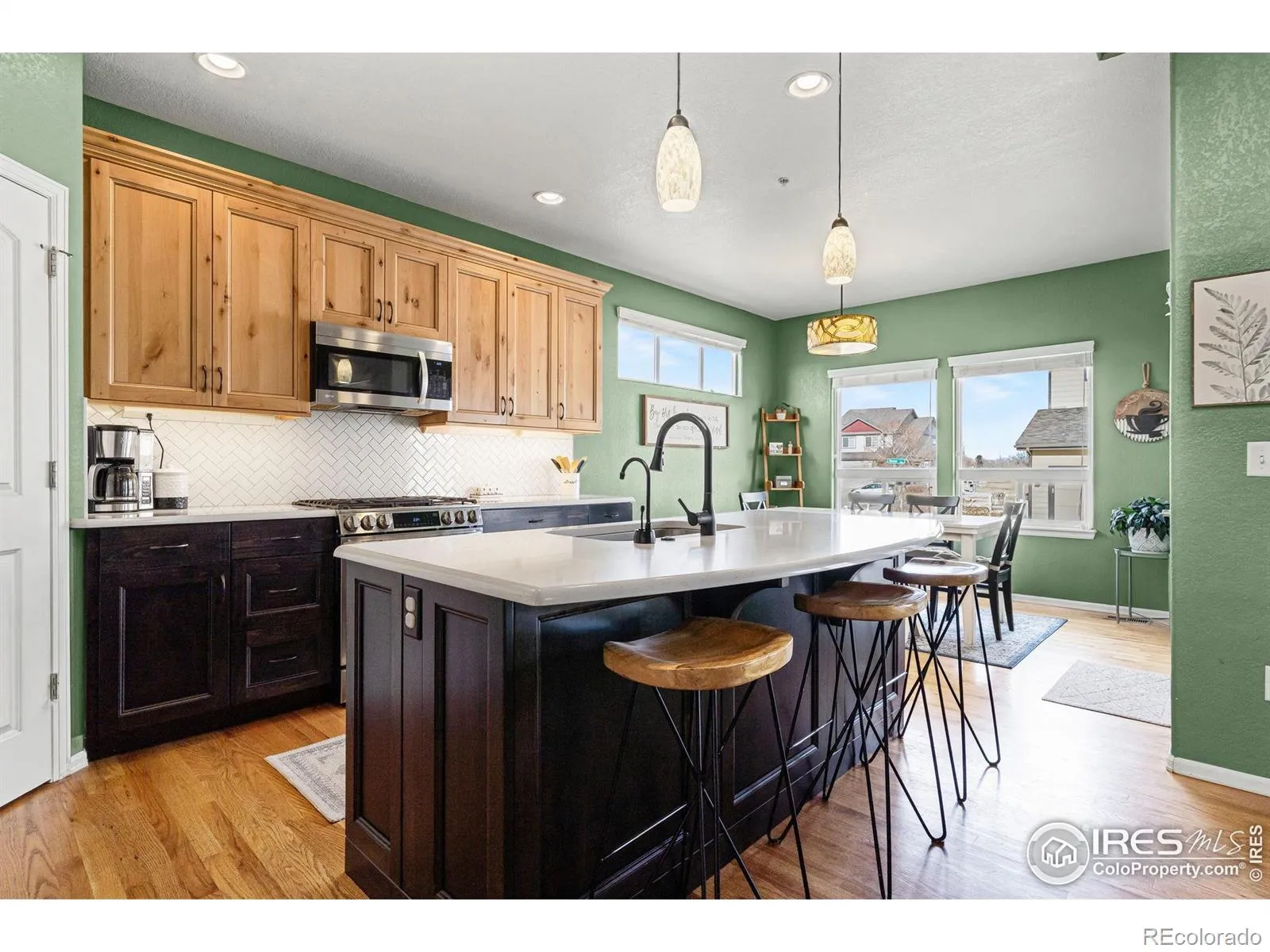 Beautiful ranch-style home offering 3,344 finished square feet, 5 bedrooms, 4 baths, and an oversized two-car garage in a highly desirable southeast Fort Collins location. Designed for effortless main-level living, this home features a bright, open layout with solid hardwood flooring and a stunning, thoughtfully updated kitchen complete with quartz countertops, center island, custom maple cabinetry, gas convection oven, walk-in pantry, and elevated finishes that blend style with function. The professionally finished basement offers a large family room and kitchenette, two additional bedrooms, a full bath, and a flexible bonus space ideal for a home office, gym, or hobby room-perfect for guests or multi-generational living. Outside, enjoy a corner lot, covered porch and covered patio, as well as a spacious fenced yard with established landscaping with sprinkler and drip system. Ideally situated near neighborhood trails and open space with convenient access to shopping, dining, parks, schools, and I-25, this home offers the perfect balance of comfort, quality, and Colorado lifestyle.