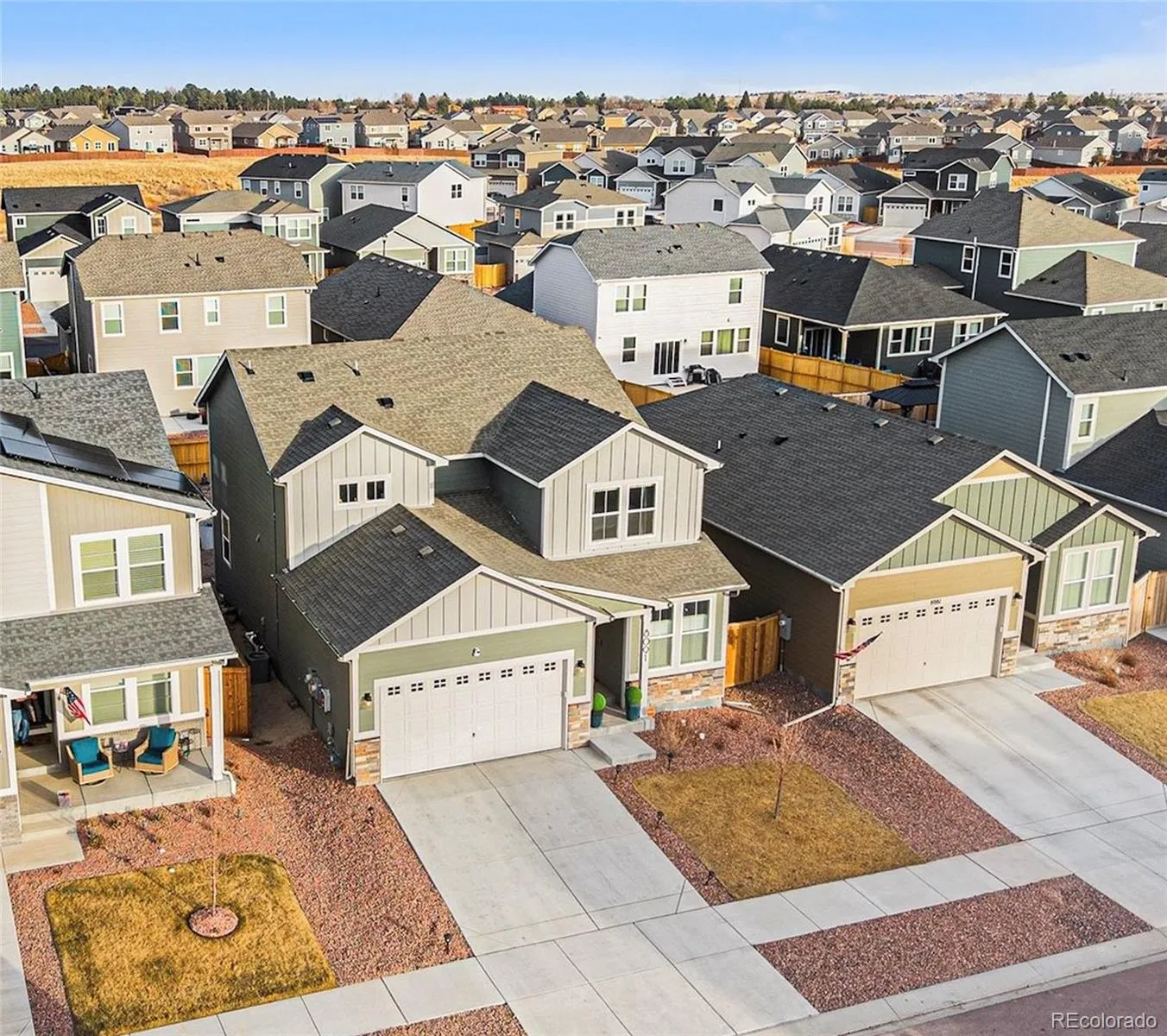 Gorgeous multi generational living or just dedicated spaces for every member of the household or even both! This energy efficient smart home has a perfect layout and room for absolutely everyone. You’ll love all of the storage and natural light – conveniently located with easy access to schools, military installations, hospital, parks, trails and more! Every surface is new, upgraded and immaculate and pride of ownership shines throughout. This 3557 sqft gem lives large and grand with nine foot ceilings, a butlers pantry as well as regular pantry, a generous slab granite island, oversized undermount stainless steel sink, upgraded appliances with every chef’s favorite – a gas range, premium laminate flooring throughout the main level, granite countertops everywhere, mud room with built in bench and storage off the garage, main level bedrooms for guests, three beds plus sun soaked library loft upstairs along with a tranquil primary suite oasis, stunning Pikes Peak views from your walk in closet, convenient second floor laundry room, an enormous rec room in the basement with game area and bonus living room along with a dedicated bonus work out room and yet another bedroom with its own 3/4 bathroom, all upgraded window coverings including top down light filtering shades from Levolar, a 2024 Rennai tankless water heater (no running out of hot showers so feel free to fill those bedrooms with friends and family!) and a huge solar system so you can run that cold AC all summer long! The backyard is a blank canvas with a great patio and the seller is willing to help make it a dream! Bring your plans and let’s make it all ideal!!! So many premium upgrades here. You won’t want to miss it!!!