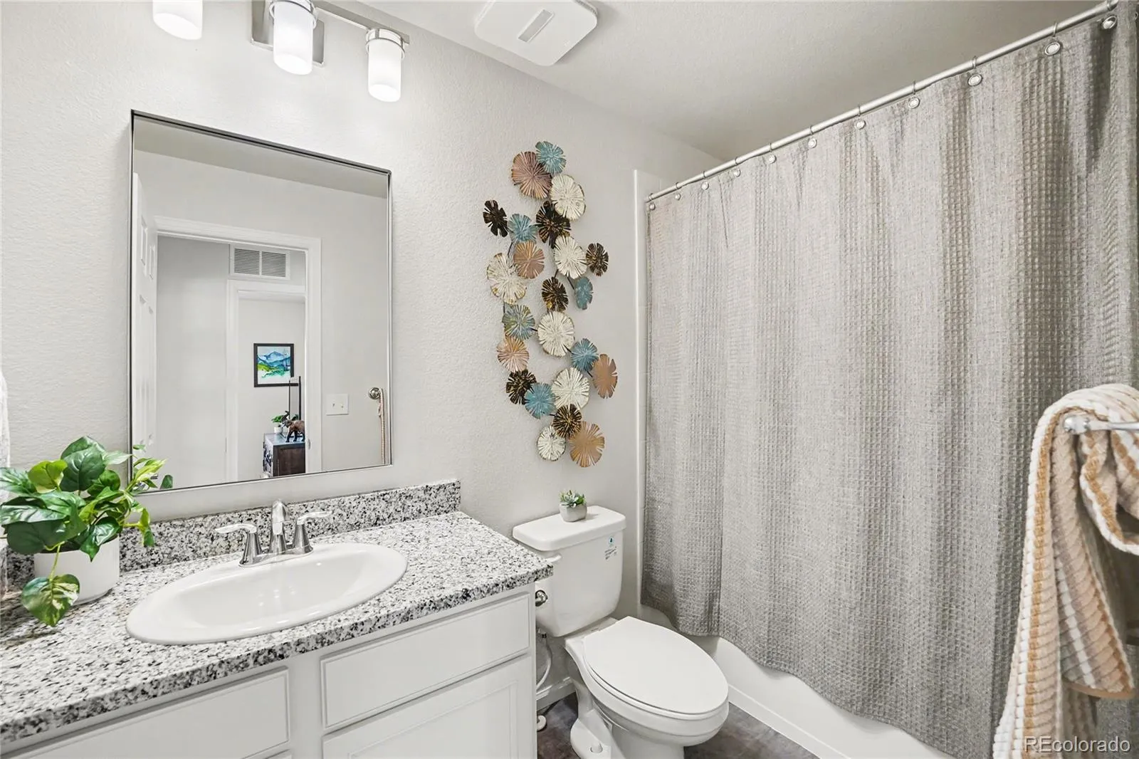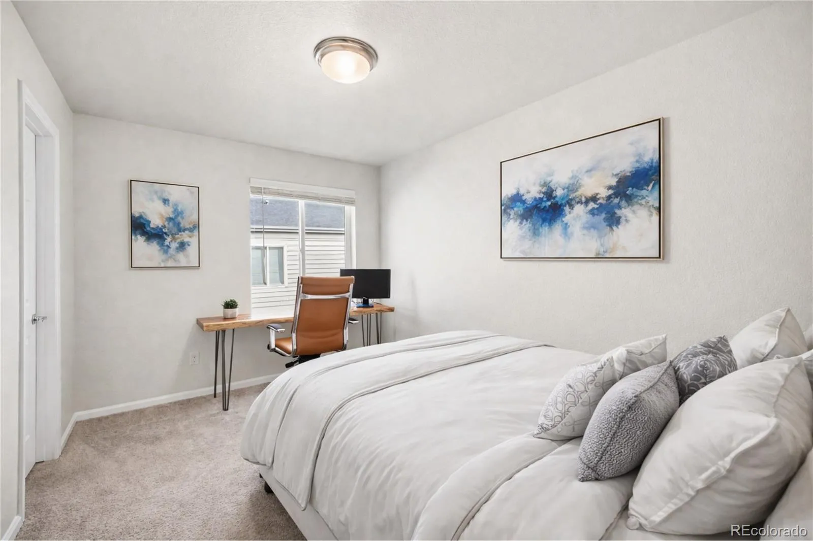 Upstairs, you’ll find a spacious primary retreat filled with natural light and neutral carpeting. The primary bathroom offers dual sinks, granite countertops, and a walk-in shower. All bedrooms include walk-in closets, providing excellent storage throughout. Convenient upper-level laundry makes daily living effortless. Additional bedrooms are well-sized and versatile for guests, home office, or flex space. Enjoy the convenience of an attached two-car garage — perfect for protecting vehicles from Colorado’s changing weather.