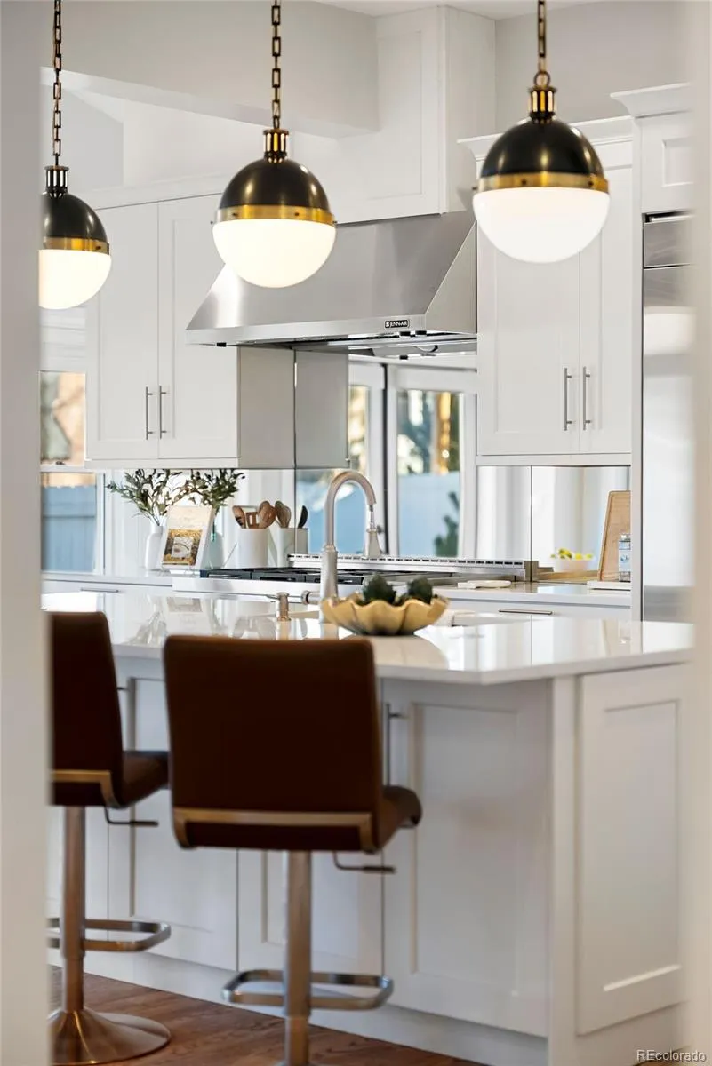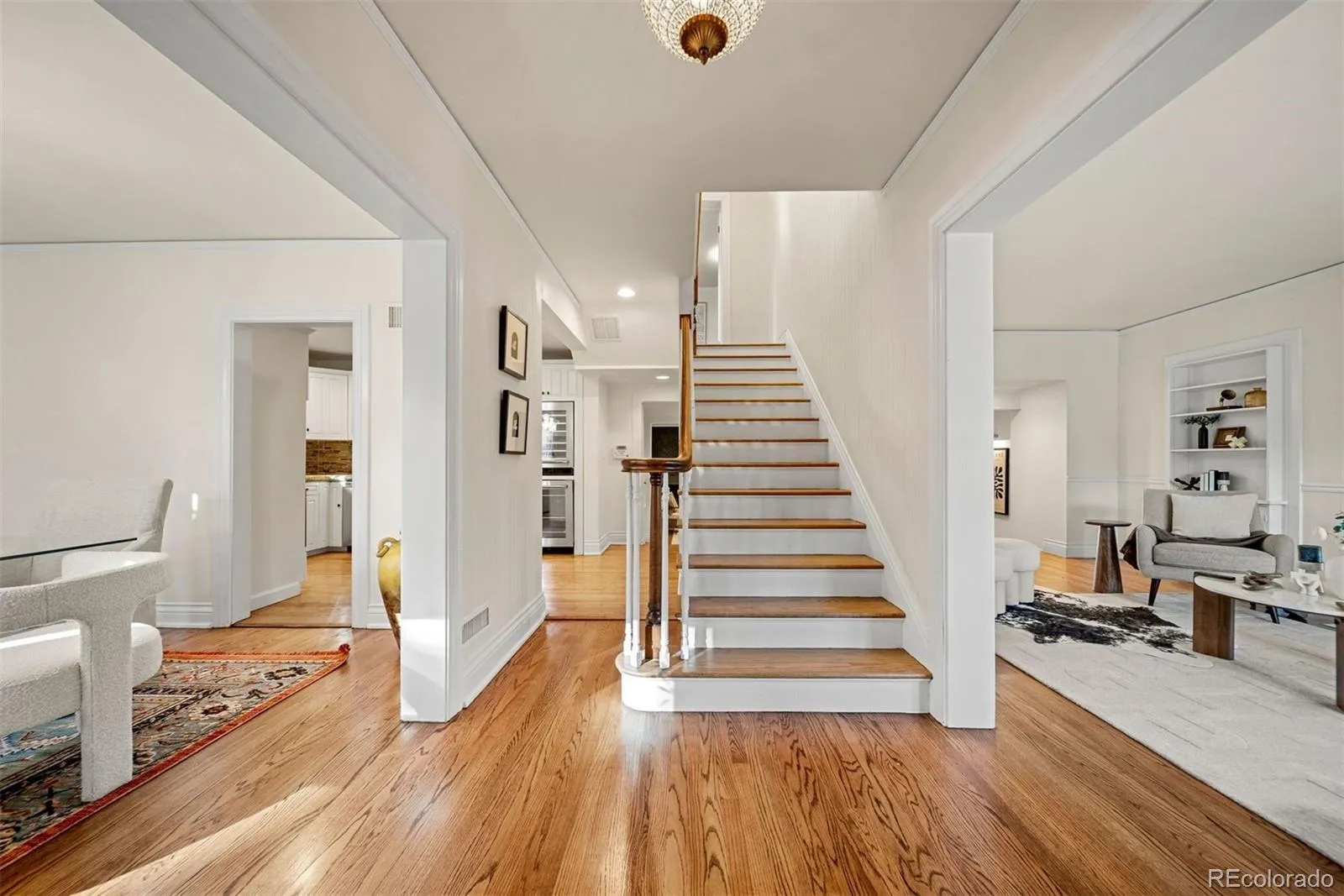 Originally built in 1937 and thoughtfully updated over time, this home blends historic character with modern functionality through a carefully designed addition. Many of the original architectural details remain, now paired with refreshed finishes, updated lighting, and improvements that support today’s lifestyle. The main level offers a variety of gathering spaces that work equally well for entertaining and everyday living. A formal living room with a refreshed fireplace provides a comfortable place to welcome guests, while a separate family room with its own fireplace offers a more relaxed setting. The formal dining room connects to a catering kitchen with wine storage, creating a natural flow for hosting. The primary kitchen features quartz countertops, JennAir stainless steel appliances, and a bright breakfast nook with access to the backyard patios and lawn. A private office and renovated powder bath complete the main floor. Upstairs are four bedrooms, including two primary suites. The primary suite includes a sitting area, a five-piece bath, dual walk-in closets, a private laundry, and a balcony. The second primary bedroom has its own en-suite bath, while two additional bedrooms share a full bathroom. The home includes two lower levels, adding flexibility. The basement within the newer addition can function as a home gym, playroom, or media space. The original basement includes a bedroom, reading nook, full bathroom, and a second laundry area, making it well-suited for guests or extended stays. Additional updates include fresh interior paint, new lighting, multiple laundry areas, and an outdoor sauna. The landscaped front and back yards feature established rose bushes and two raised garden beds with drip irrigation. Zoned for Carson Elementary, located near Cherry Creek, the neighborhood Farmer’s Market, and the trails along 6th Avenue Parkway, this home offers a balance of classic design and modern livability with convenient access to downtown Denver.