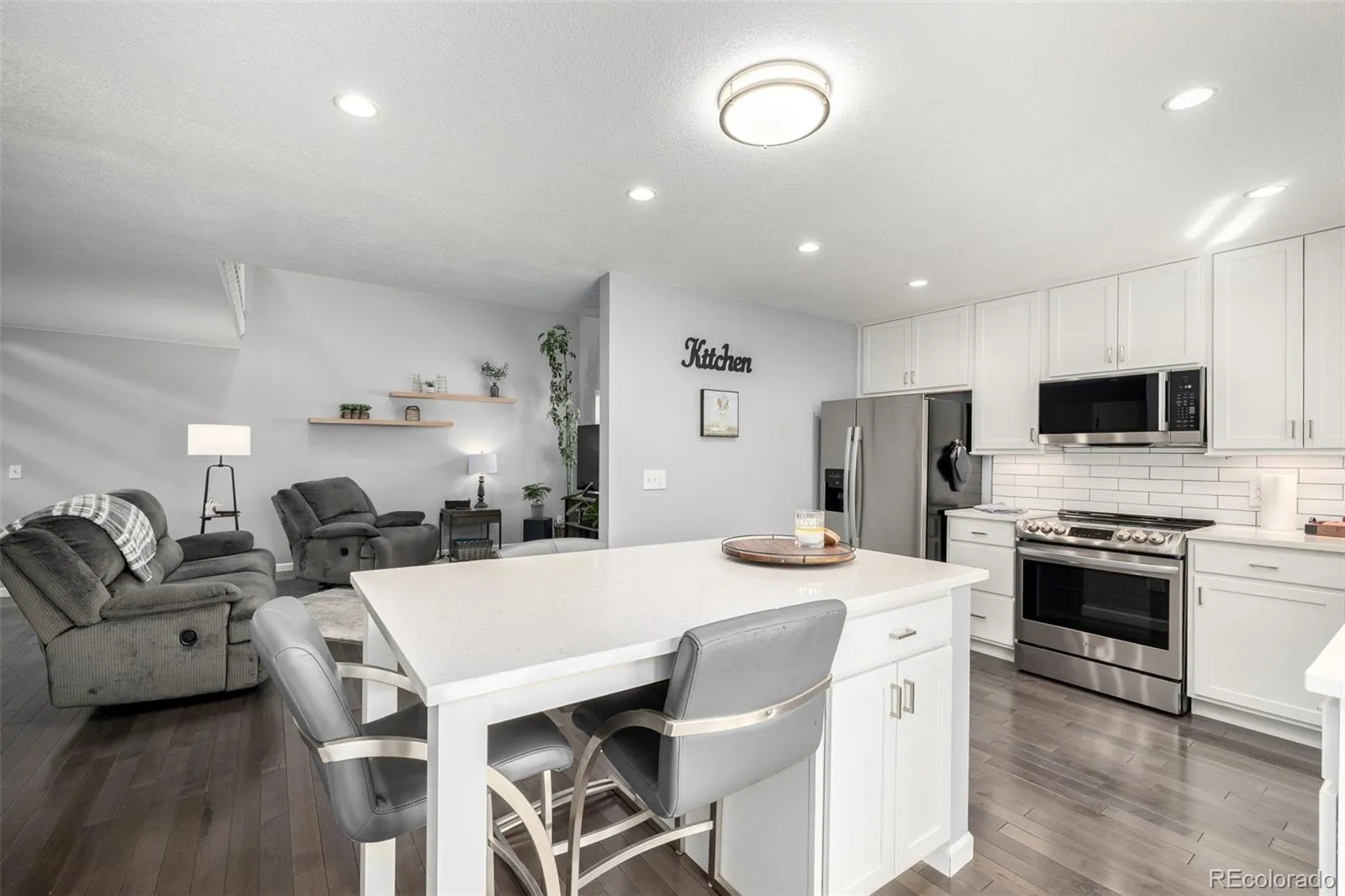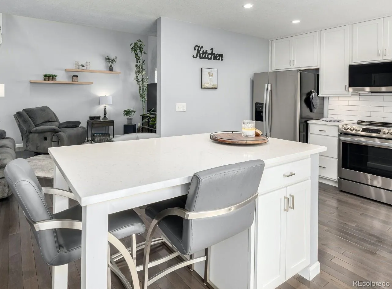 Welcome to this absolutely stunning updated 3-bed 3-bath home ideally located in a cul-de-sac in the heart of Littleton! Get ready to fall in love with a space defined by beautiful finishes and total functionality; it’s a flawless property that is truly ready to be called home. From the moment you arrive, you’ll enjoy the charming curb appeal with brick accents, mature trees, and a welcoming covered entry. Step inside to an inviting open layout featuring rich wood flooring, fresh neutral tones, and abundant natural light throughout. The spacious living room showcases a stunning modern fireplace with custom tile surround and wood mantel, creating a warm focal point for gathering and relaxing. The fully updated open concept kitchen is designed for both everyday living and entertaining, offering crisp white cabinetry, quartz countertops, subway tile backsplash, stainless steel appliances, and eat in space at the island. The seamless flow between the kitchen and living spaces makes hosting effortless. The primary bedroom is very spacious with a large closet and a attached bathroom. All bathrooms have been refreshed with modern vanities, updated lighting, and stylish finishes. The walkout basement offers an ideal layout for a fourth bedroom and private bath. Enjoy Colorado living in the private side yard featuring a patio space ideal for outdoor dining, entertaining, or simply unwinding. Plus the lower level has a walk out to the open green belt space with mature trees. The attached two-car garage adds convenience and additional storage. This property is the epitome of effortless living, offering curated curb appeal without the work, thanks to dedicated HOA-managed grounds maintenance. Divinely located in an established neighborhood with easy access to Highline Canal and Lee Gulch Trails, Horseshoe park, shopping, dining, and major commuter routes.