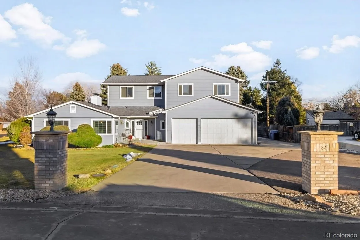 Welcome to 34 Skyline Drive – a rare opportunity to own a meticulously maintained ranch home on an oversized 0.39-acre corner lot in Wheat Ridge’s most sought-after neighborhood, Paramount Heights. With its quiet streets, nearby open space, and proximity to Crown Hill Park, acclaimed dining, breweries, and coffee shops, this location offers a relaxed, almost country like setting with exceptional proximity to the best of Colorado living. This spacious 3-bedroom, 4-bath home reflects pride of ownership throughout. The updated kitchen features granite countertops, stainless steel appliances, and fresh interior paint. Mechanical upgrades include multiple water heaters, a 95% high-efficiency furnace with central air and humidifier, and extensive energy-saving improvements. A new 20-panel solar system with Tesla battery, insulated floor joists, and R-40 blown insulation contribute to long-term efficiency and comfort. Natural light and effortless flow define the interior, highlighted by a serene primary suite with a spa-like bathroom featuring a soaking tub, walk-in shower with heated floors, and a private dry sauna. Just outside the primary suite, a newly installed 300-gallon natural pond and redwood deck create a peaceful, zen-like retreat. Outdoors, the expansive corner lot is fully irrigated and professionally landscaped with mature plantings including peonies and Indian Feather perennials. Car enthusiasts will appreciate the remarkable 1,200-square-foot garage offering space for 4–5 vehicles, soaring 10–13-foot ceilings, insulated doors, finished concrete floors, steel lifts, bathroom, and utility sink. With durable 50-year Hardie board siding, a newer 50-year roof, a 53-foot well with five shares of Consolidated Water, and exceptional potential to expand or pop-top for enhanced views, 34 Skyline Drive represents a truly special offering rarely available in Paramount Heights.