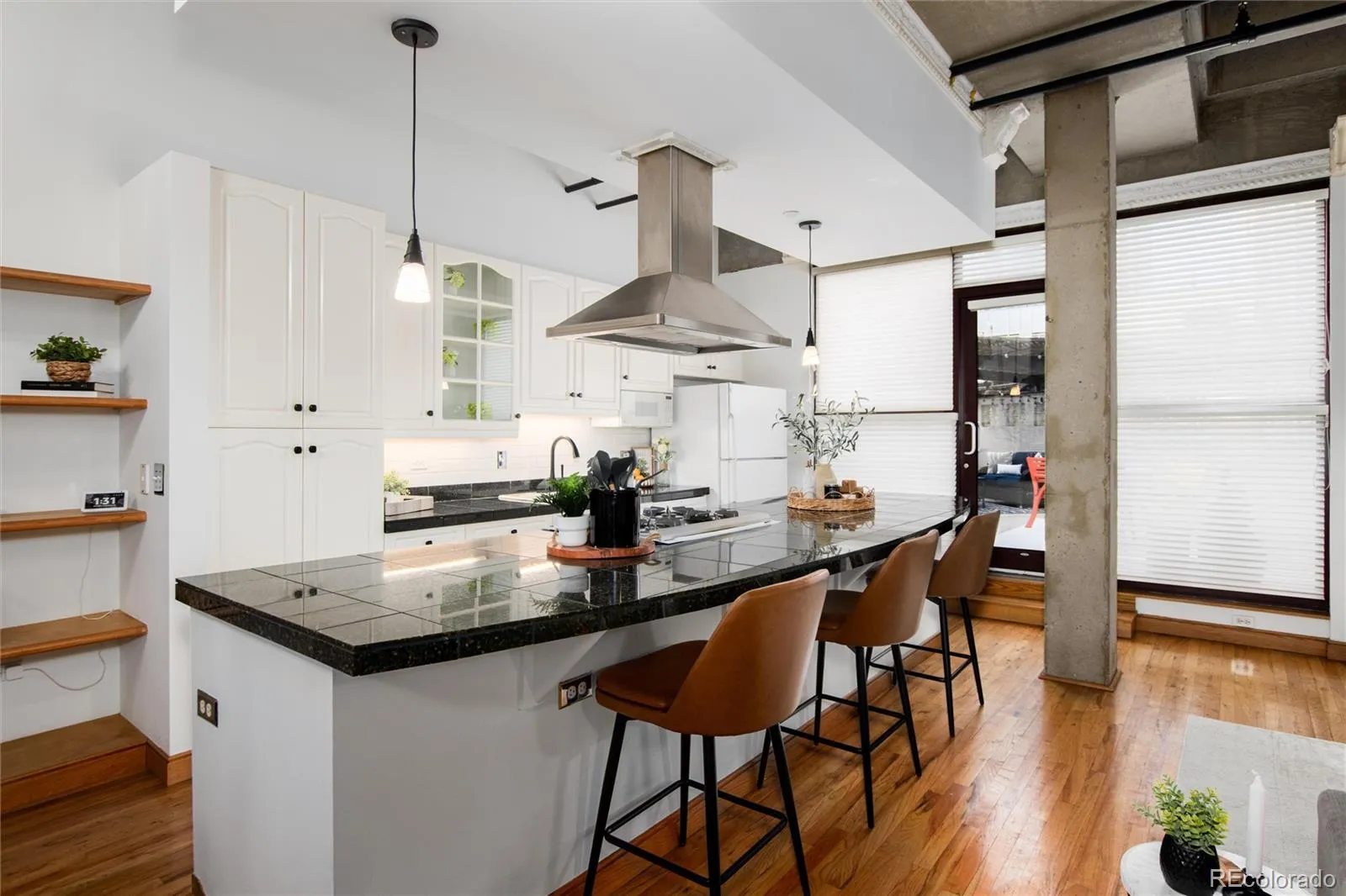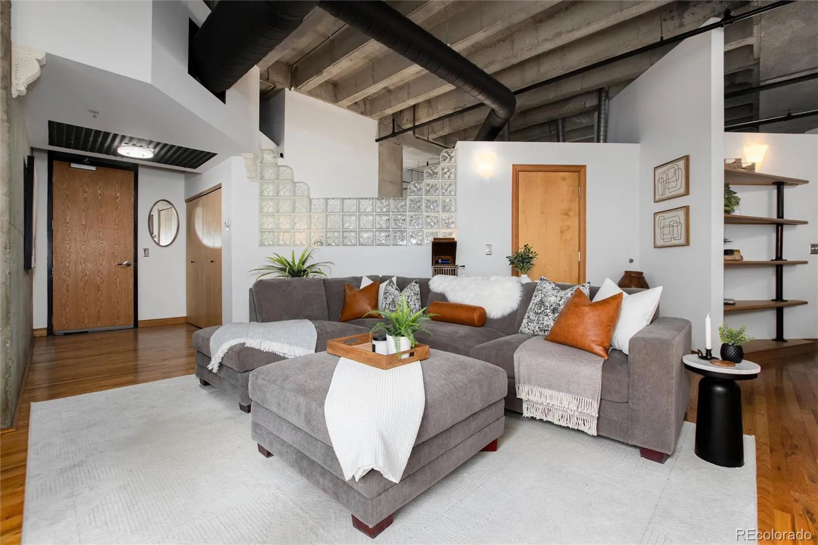 SELLER OFFERING A 2/1 INTEREST BUY DOWN, CALL FOR DETAILS! Discover the perfect blend of modern sophistication and urban convenience in this exceptional loft. Featuring an expansive open floor plan with soaring 12-foot ceilings and rich hardwood floors, this residence offers a spacious, airy ambiance ideal for both relaxing and entertaining. The kitchen is equipped with abundant storage, generous counter space, and a large island—perfect for hosting gatherings. All appliances, including a washer and dryer, are included for your convenience. Enjoy an abundance of natural light from a wall of windows, which opens to your private 600 sq ft patio —an inviting space for morning coffee or evening cocktails. The living area boasts exposed concrete and ductwork for an industrial-chic vibe, complemented by a cozy gas fireplace for winter nights. Custom glass blocks illuminate the primary bedroom and bonus office nook with soft, ambient light. Retreat to the spacious primary suite, complete with a walk-in closet and a full bathroom. Guests will appreciate the stylish powder room, while you benefit from a dedicated parking space just steps to the elevator. 7 x 10 deeded storage space on same level as loft. Community amenities include a rooftop pool, fitness center, community room, and conference facilities. Enhanced security features, such as resident-only elevators on the second floor, provide peace of mind. Step outside and explore all that Denver has to offer—dining, entertainment which includes the Denver Performing Arts Complex, Coors Field, Ball Arena, LoDo, and many other cultural attractions are just moments away. This luxury loft is more than a home; it’s your gateway to the vibrant downtown lifestyle