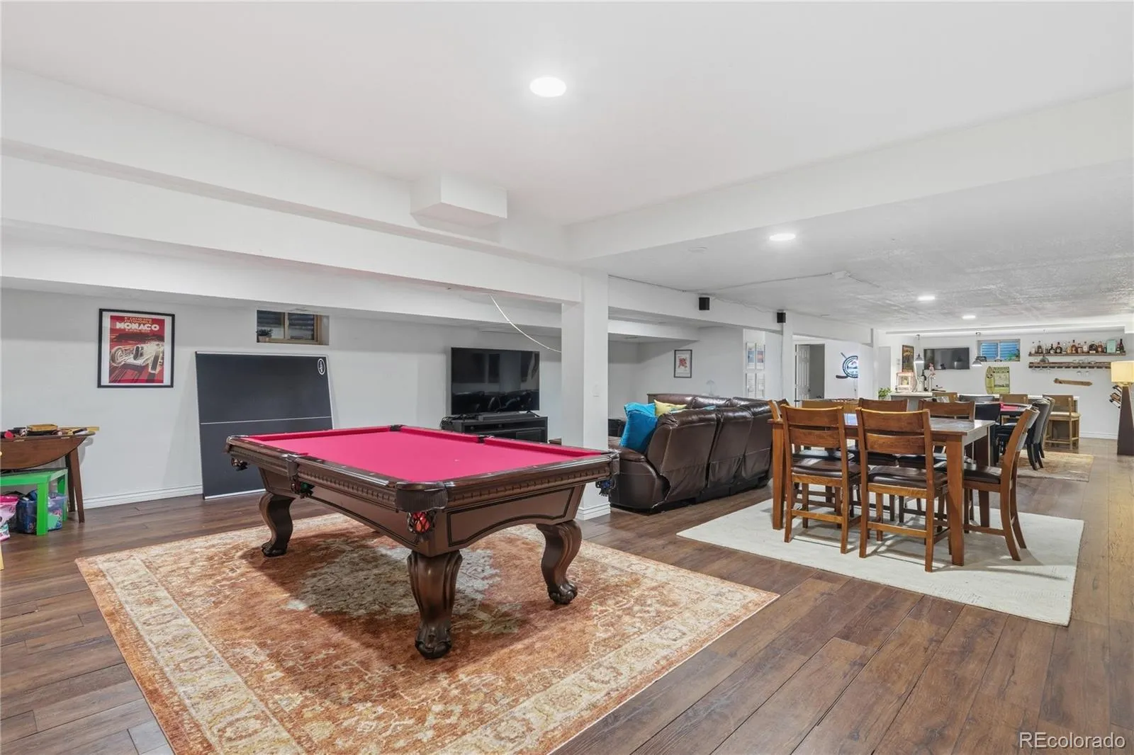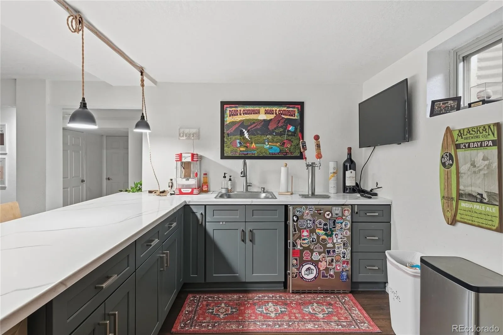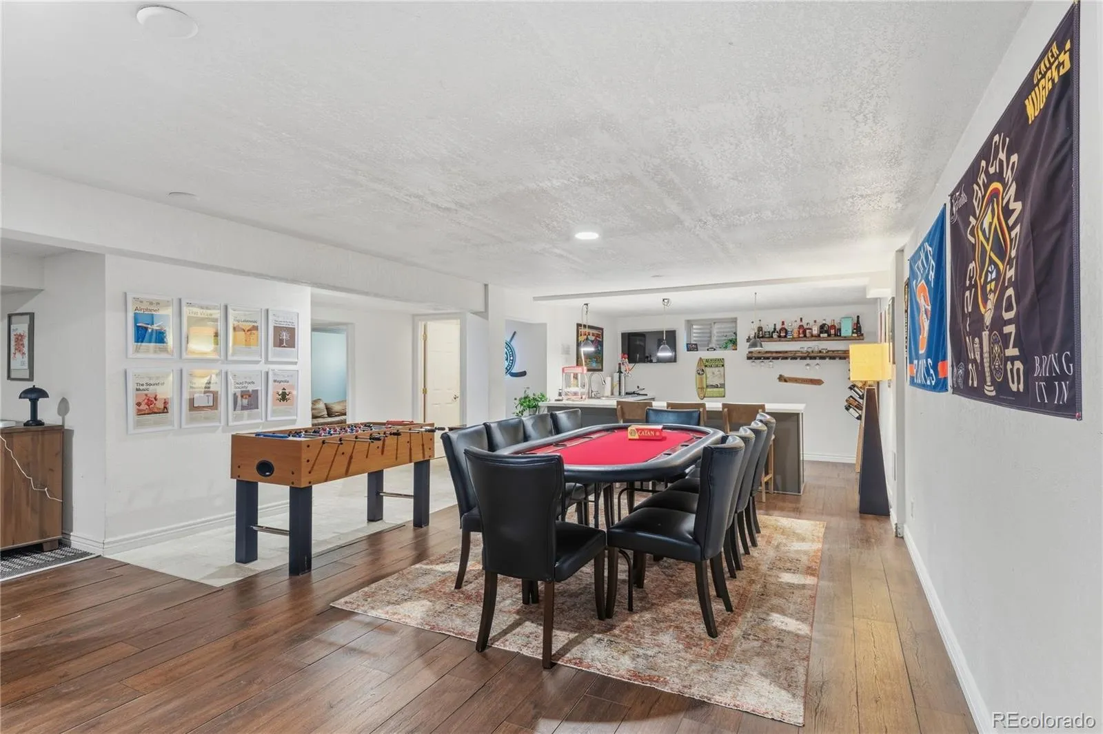 Sprawling 5 Bed | 4 Bath brick ranch on a quiet cul-de-sac in desirable Littleton, can be called home today! Timeless curb appeal welcomes you with classic brick, mature trees, and a newly re-paved driveway (8/2025). Inside, the open-concept main level features hardwood floors, abundant natural light, and a seamless flow between living, dining, and kitchen spaces. The inviting living room is anchored by a woodburning stove (2023), creating warmth and character. The kitchen offers granite countertops, stainless appliances, generous cabinetry, and ample prep space — ideal for everyday living and entertaining. The spacious primary suite includes a large closet and a beautifully appointed en-suite bath with dual sinks, soaking tub, and separate shower. New carpet installed November 2025 (with warranty) adds fresh comfort throughout select areas. The fully finished basement expands your living space with a large recreation area, game room, custom wet bar with seating, beverage fridge, and multiple entertainment zones. An additional bedroom and bathroom provide flexibility for guests, while a substantial storage area keeps everything organized. Step outside to an expansive backyard retreat featuring a large concrete patio, dedicated firepit gathering space, mature landscaping, a peaceful koi pond, and generous lawn — perfect for entertaining, pets, or play. The private lot offers exceptional outdoor living rarely found at this price point. A rare combination of space, updates, and location — this home is move-in ready and designed for both comfort and connection.