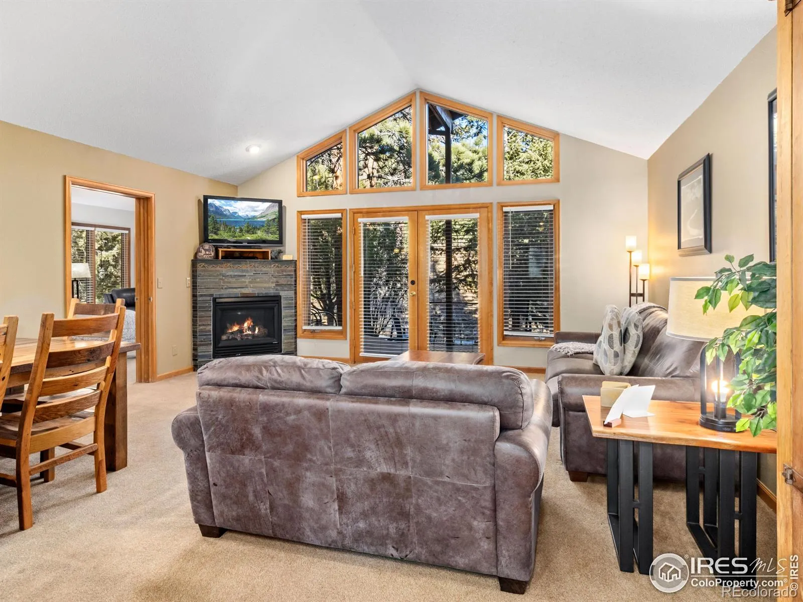 The perfect place on the RIVER in Estes Park! Rare offering at Riverwood on Fall River, Unit 4 is a spacious 1250sf, single-level floorplan. Vaulted greatroom with stone fireplace and wall of windows to take in the sights and sounds of the river. Two king suites and two baths, with custom tile/stone shower and beautifully furnished throughout. Expansive deck overlooks the forested site and peaceful riverfront setting. Great flyfishing and convenient to the hike/bike trail into Rocky Mountain National Park and the vibrant downtown corridor, grab your e-bikes and have a great adventure! Fully furnished and professional onsite management makes this an easy investment/rental and place to enjoy at $629,500.