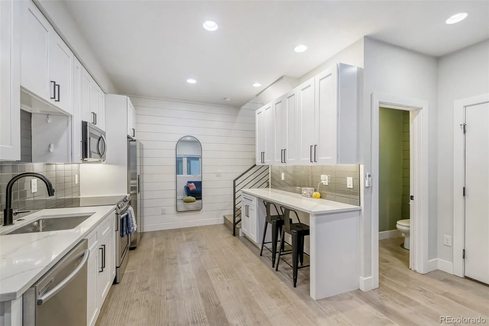 You must see this lovely modern townhome in hot Overland. Located just blocks from the Evans Light Rail Station and within walking distance of so many great restaurants and shops on Broadway, this home cannot be beat. The kitchen is well appointed with quartz counters and 42″ cabinets that offer plenty of storage. There is even a handy work space/desk area. The bedroom is spacious with vaulted ceilings and enough space for a king sized bed. The 4 piece ensuite is well appointed with a double vanity and lovely walk in shower. The walk in closet has a built in closet system to maximize your storage and make it easy to find what you need. This is such a great townhome that really does offer city living at its best. Could be a great Denver crash pad. Come see it today.