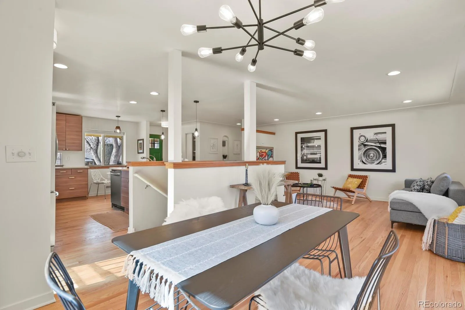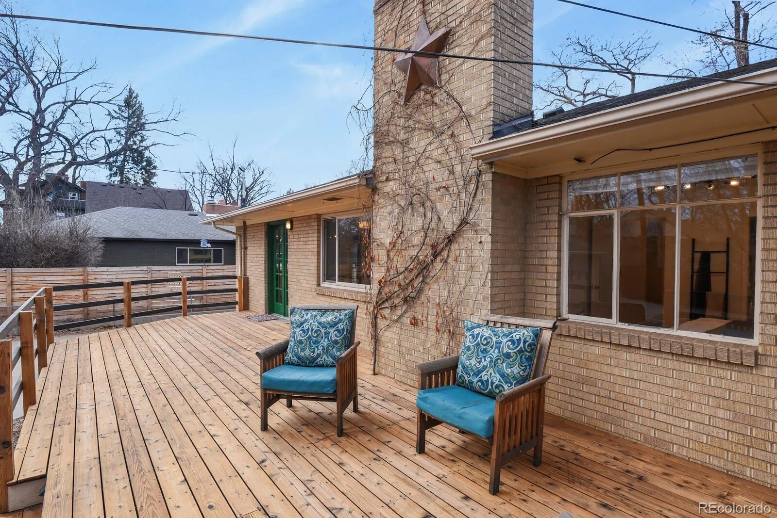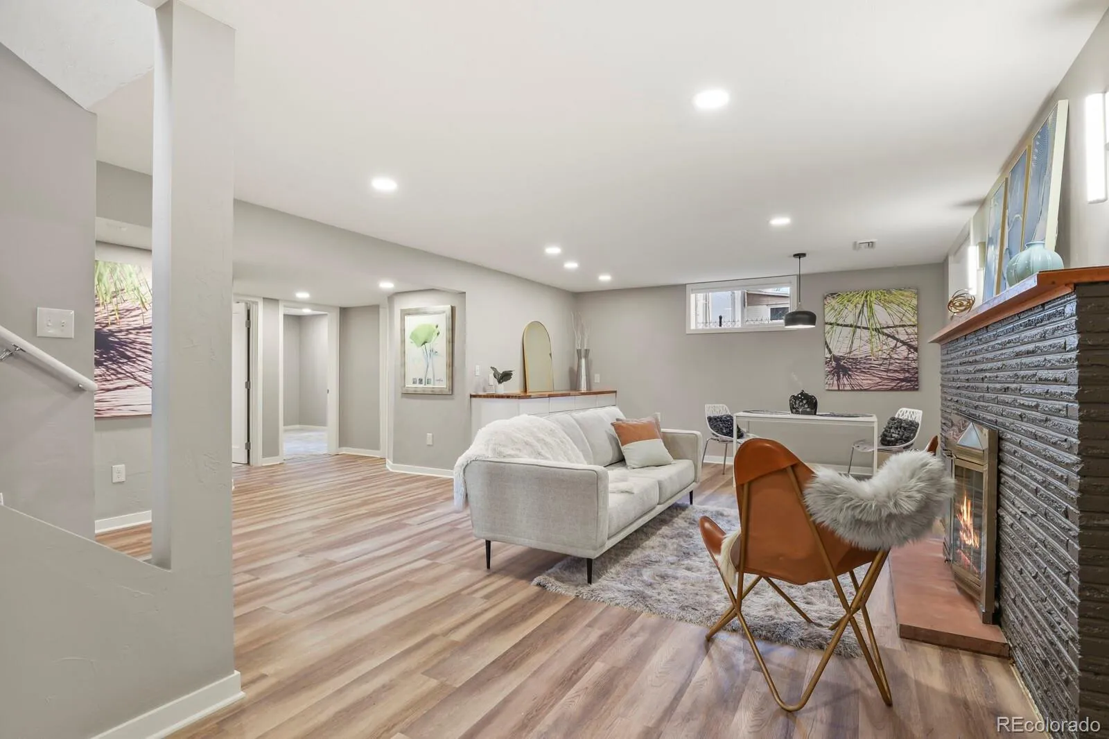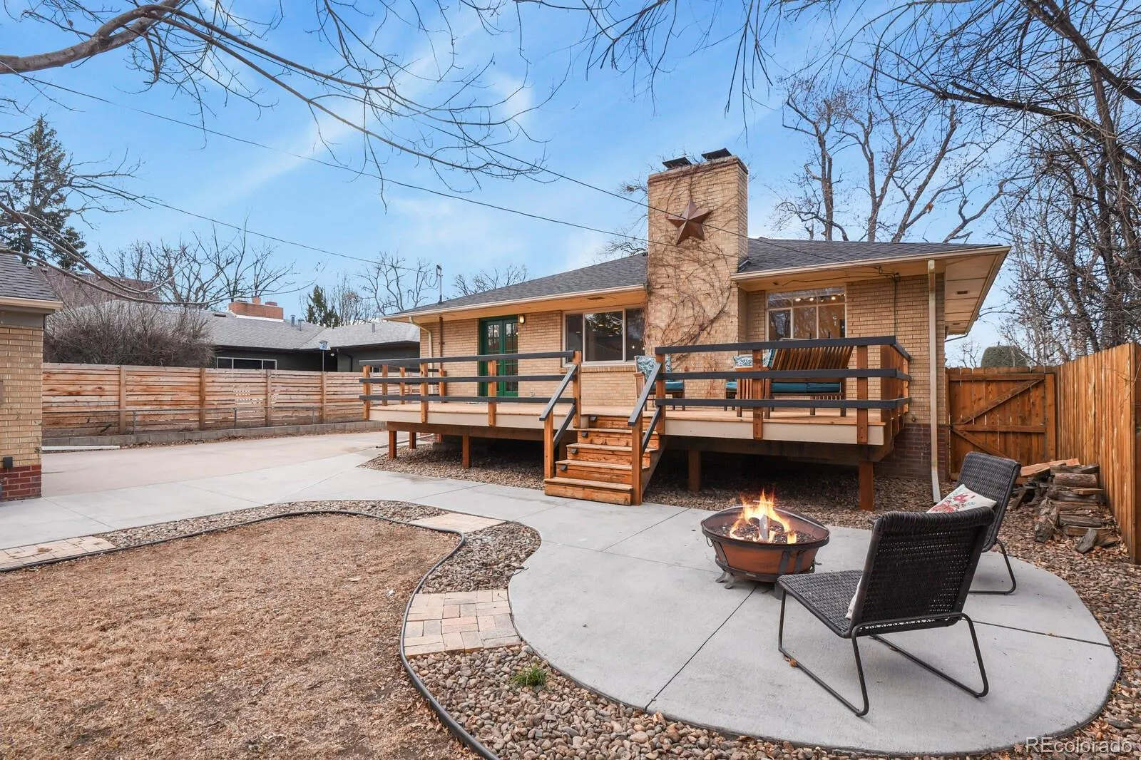Welcome to 1340 Olive Street, a beautifully updated raised ranch in coveted Montclair—just moments from the iconic Richthofen Castle and a short stroll to Montclair Park. This classic blonde brick home offers 5beds+office/2baths across 2,594 square feet of highly functional living space. Step inside to an open-concept main level filled with natural light. The spacious living room flows seamlessly into a thoughtfully designed kitchen featuring modern cabinetry, period glass block accents, a HUGE center island, sunny south-facing window, and additional eat-in space. Original French doors off the dining area open to an expansive cedar deck, perfect for effortless indoor-outdoor living. The main floor includes a generous primary bedroom, two additional bedrooms with ample closets, and a full bath conveniently positioned near two hallway linen closets. Downstairs, you’ll find a massive family room anchored by a brick-surround wood-burning fireplace. A dedicated bar area—already plumbed for a future wet bar—makes this the ultimate entertaining level. Two conforming basement bedrooms, an updated ¾ bath, and a bright flex room (ideal for an office, gym, or media room) add incredible versatility. The oversized laundry area offers abundant storage, utility sink, and bonus space perfect for a workshop or wine cellar. Situated on a generous 7,800 sq ft lot, the outdoor spaces truly shine. Enjoy the raised covered front porch, host unforgettable gatherings on the HUGE back deck, and unwind around the natural gas firepit. The oversized two-car garage includes a “secret” bonus room for creative space or retreat, plus a long driveway and additional parking pad provide exceptional off-street parking—ideal for guests or recreational vehicles. Fresh interior paint, newly refinished hardwood floors, easy access to I-70, and a central location just minutes from downtown, Central Park, and Lowry complete the package. Classic charm. Modern updates. Prime location.