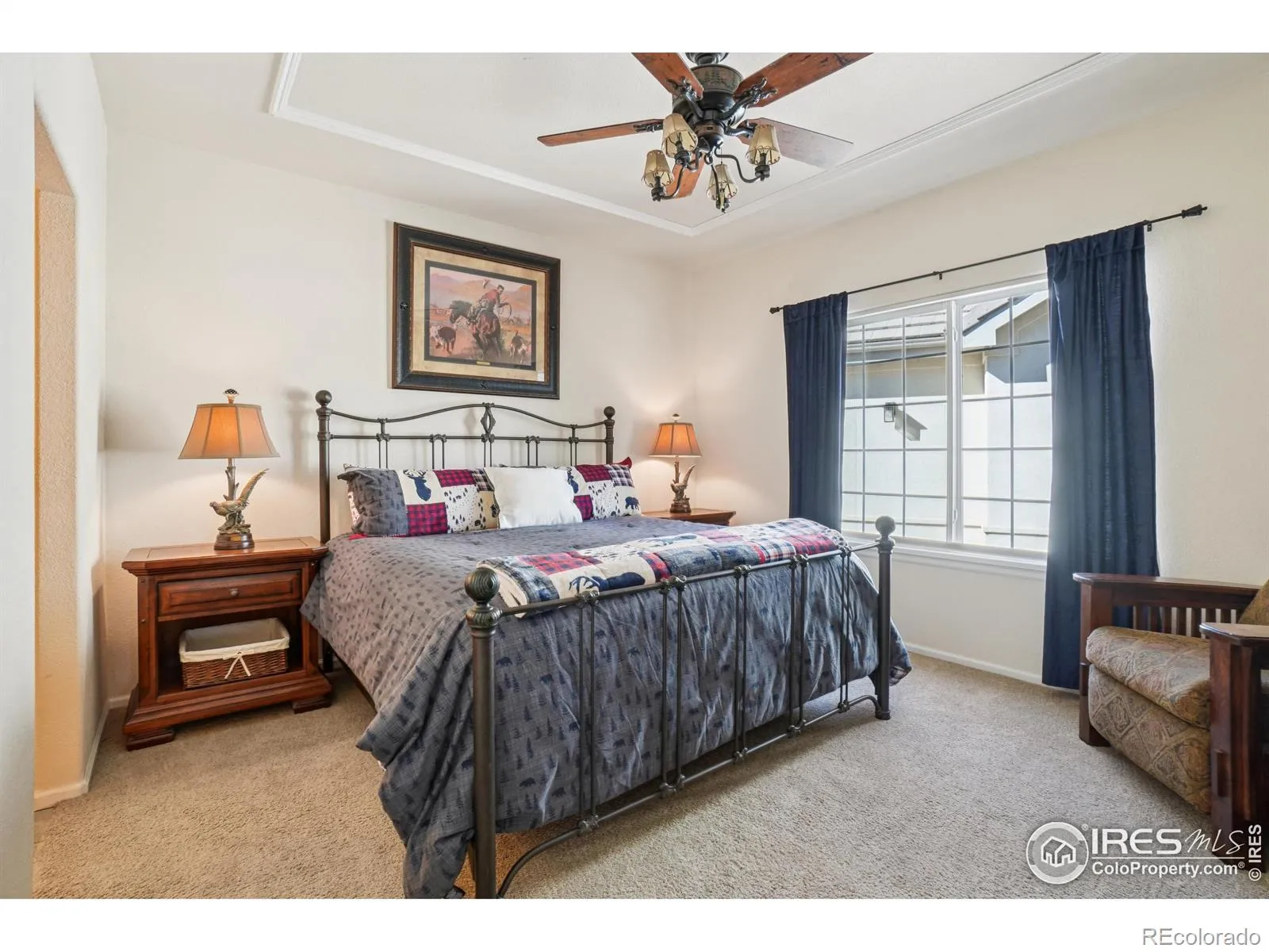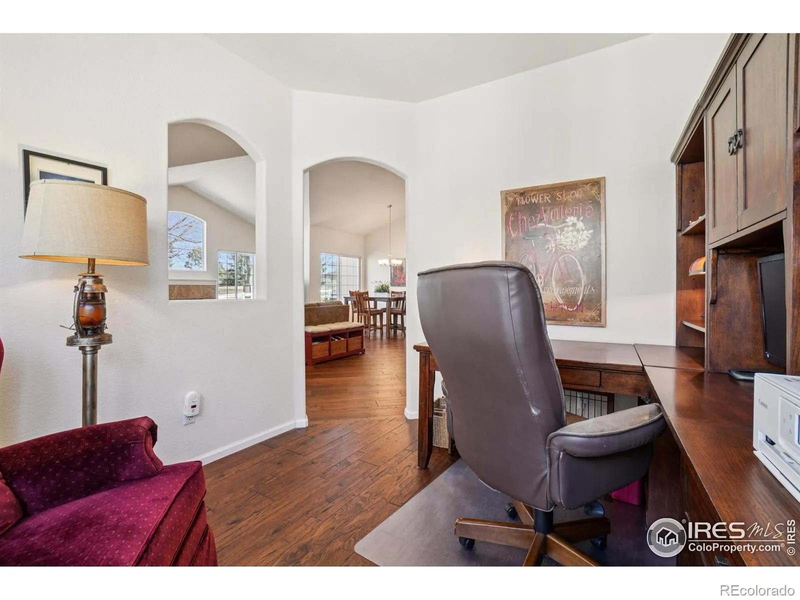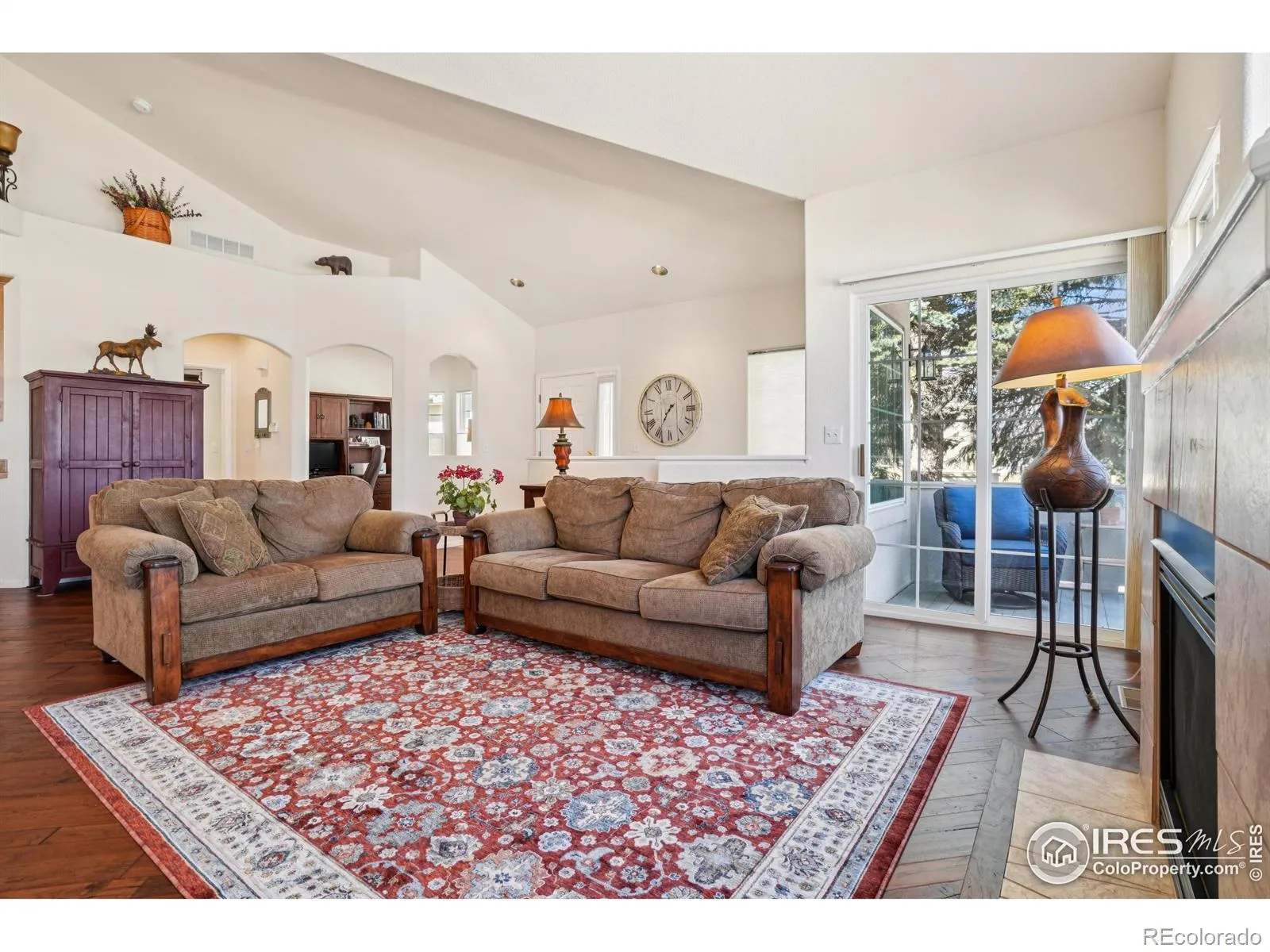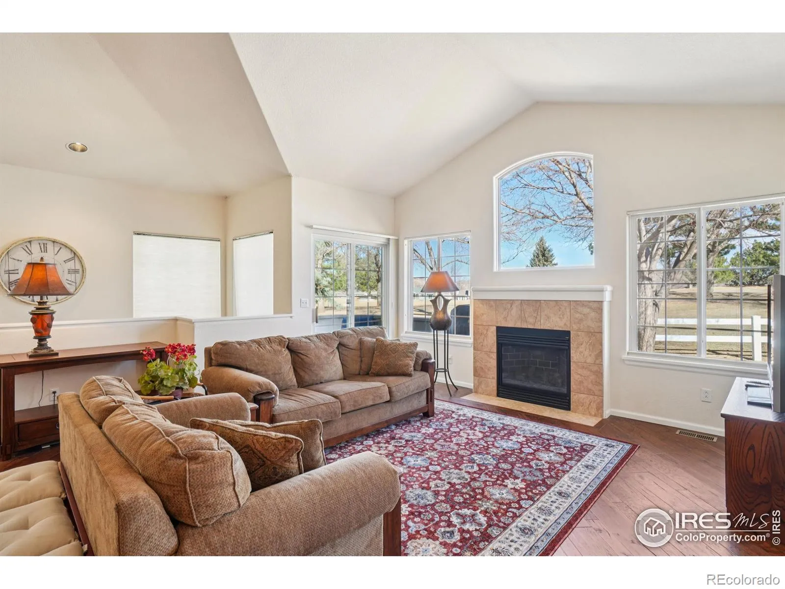 Welcome home to effortless Colorado living. Nestled in the sought-after Fairway Ridge at Mariana Butte community, this pristine patio home backs to the Mariana Butte Golf Course with sweeping foothill views that make every season feel like a retreat. Whether sipping morning coffee on the private deck, curling up by the gas fireplace on a crisp evening, or simply taking in the scenery through the main level’s expansive windows, this home delivers the serene backdrop you’ve been searching for. Inside, the open floor plan flows beautifully – wood floors, vaulted ceilings, arched doorways, and an abundance of natural light give the home an airy, welcoming feel. The kitchen is as functional as it is charming, with ample counter space, plenty of storage, glass-front cabinetry with a built-in wine rack, bar top seating, and all appliances included. The main-level primary suite is a true sanctuary with high ceilings, a ceiling fan, a spacious walk-in closet, and a spa-like 5-piece bath with double sinks, soaking tub, walk-in shower, and separate water closet. Also on the main level, you’ll find a versatile office with wood floors and bay windows, a convenient half bath, and a laundry room with included washer and dryer and cabinet storage. Everything you need, all on one level. The finished basement expands your living options considerably. A large family room with recessed lighting and deep egress windows offers flexible space for a recreation room, hobby area, or comfortable guest suite – complete with a spacious closet that makes it an easy third bedroom. A well-appointed second bedroom with its own walk-in closet and a three-quarter bath with a large walk-in shower rounds out the lower level, giving guests or family members a comfortable, private space to call their own. The HOA handles landscaping, snow removal, and exterior maintenance – leaving you free to travel, explore, or simply enjoy the home without the upkeep. This is the lock-and-leave lifestyle done right.