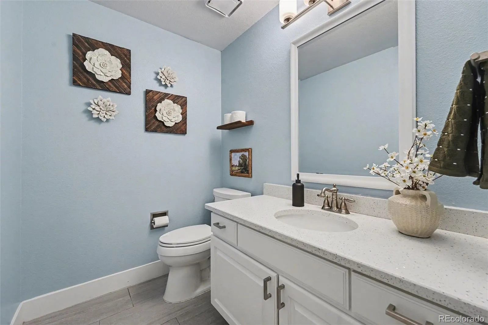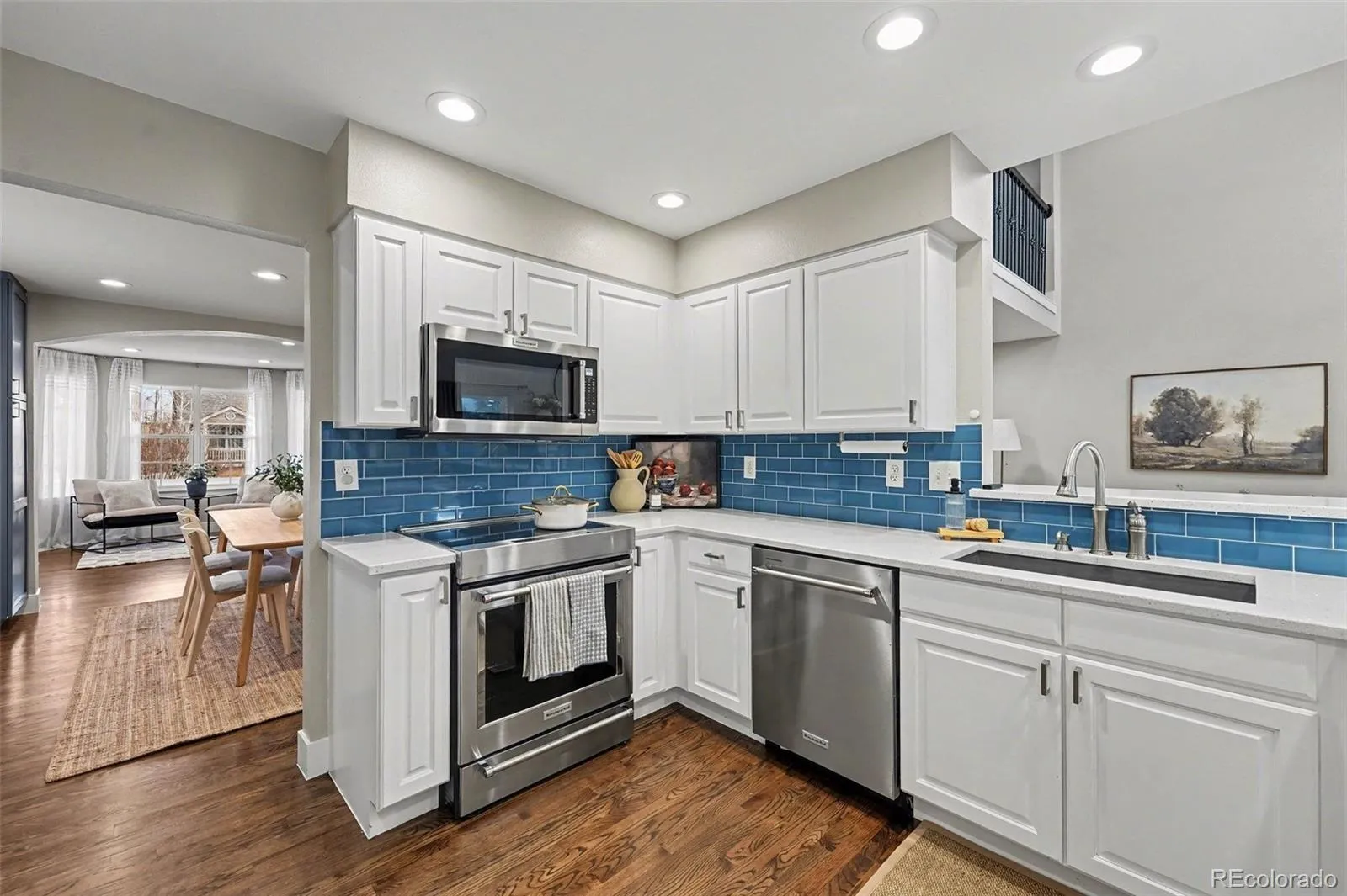 Updated Westridge Two-Story w/ Rare Main Floor Primary Bedroom & Stunning Mountain Views! This Beautifully Maintained Highlands Ranch Home Features Dark Stained Hardwood Floors, a Wrought Iron Banister, Vaulted Ceilings in the Family Room, and a Modern Updated Mantle Creating a Bright and Inviting Living Space. The Updated Kitchen Showcases White Cabinetry w/ Brushed Nickel Pulls, Quartz Slab Countertops, a Subway Tile Backsplash, and KitchenAid Stainless Steel Appliances including an Induction Range. Enjoy the Convenience of a Main Floor Primary Bedroom, w/ Two Bedrooms Upstairs and Two Additional Bedrooms in the Finished Basement. The Basement Offers a Wide Open Recreation and Entertainment Space, Perfect For Movie Nights, Games, or Guests. Additional Upgrades Include New 5-Inch Baseboards & Modern Lighting. New Carpet Throughout. New Countertops, Faucets and Toilets in the Bathrooms. New Paint in the Basement and on the Main Floor. New Paint on the Kitchen and Bathroom Cabinets. New Furnace that was Replaced in December of 2025, Newer Central AC that was Replaced in 2019. Permanent Gemstone Exterior Lighting that can Change Color for the Holidays and is a Great Security Feature. Great Location that is Walking Distance from Redstone Park, the Dog Park, and the Westridge Recreation Center. Plus Access to Highlands Ranch Amenities Including Four Recreation Centers, 26 Parks, and 70 Miles of Interconnected Trails. Just Minutes To Town Center Shopping and Dining and Central Park Eateries. This Home Offers The Perfect Blend of Comfort, Style, and Location!