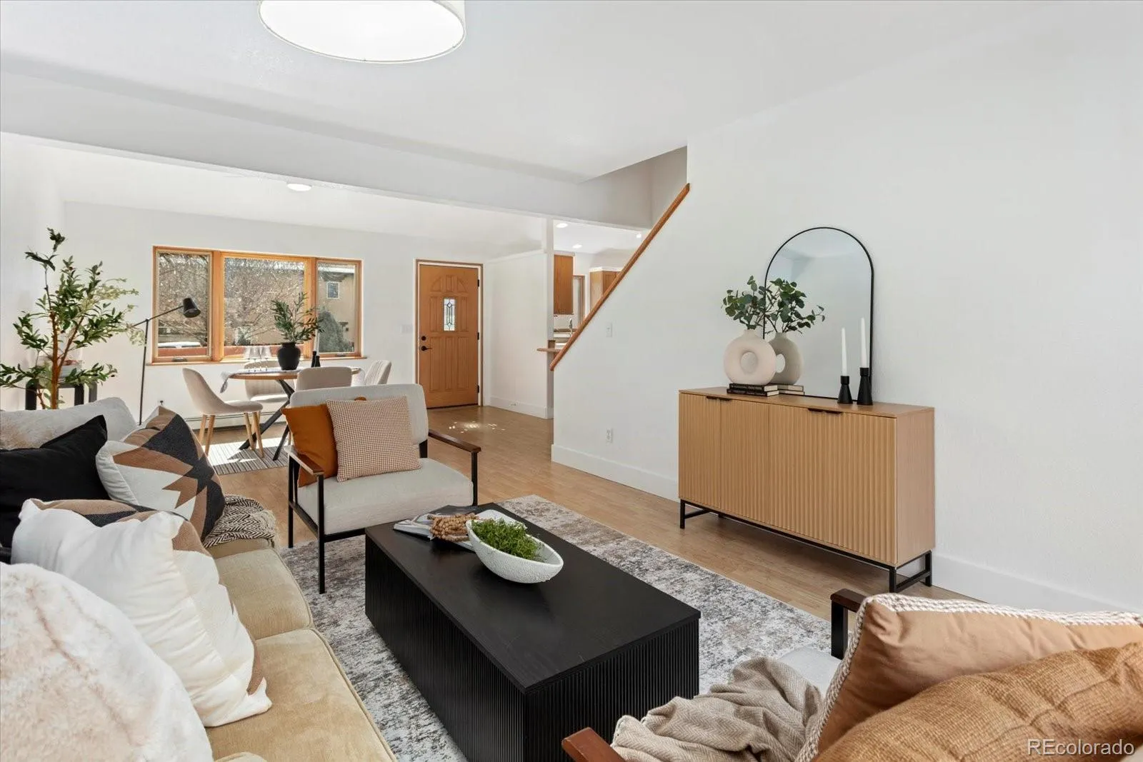 Well appointed end unit is move-in ready! Come look at this beautiful townhome: freshly painted white with lot of natural light pouring in compliments the wood accents throughout this space giving it a modern, yet homey appeal. Private yard with pergola, patio, flagstone, maple, evergreen, Poplar, Elm and Russian Olive trees. You will love this open kitchen, dining, living area with sliding glass doors to private backyard. New Windows were just installed in Nov 2025! Unit has radiant baseboard heat on 4 zones to allow for heating different rooms at various preferred temperatures. (There is also a kick fan heater under sink in kitchen). Furnace was just inspected last fall and hot water heater has recently been serviced as well. Kitchen has laminate counter tops, wood cabinets, a space for a hutch or panty. Bedroom with bathroom located on first floor for one floor living. Upstairs are two more large bedrooms and laundry area. Gorgeous wood vinyl pergo flooring throughout the downstairs and new laminate wood like flooring installed in July of 2025 upstairs. Unit cooled with ceiling fans. Enjoy mountain views and the convenience of living in downtown Salida: easy walking and biking distance to the river, music venues, restaurants, single track trails, stores, parks, schools and more! Quiet neighborhood. And don’t miss the garage: two car attached garage with extra workspace. This well-loved gem is waiting for you!