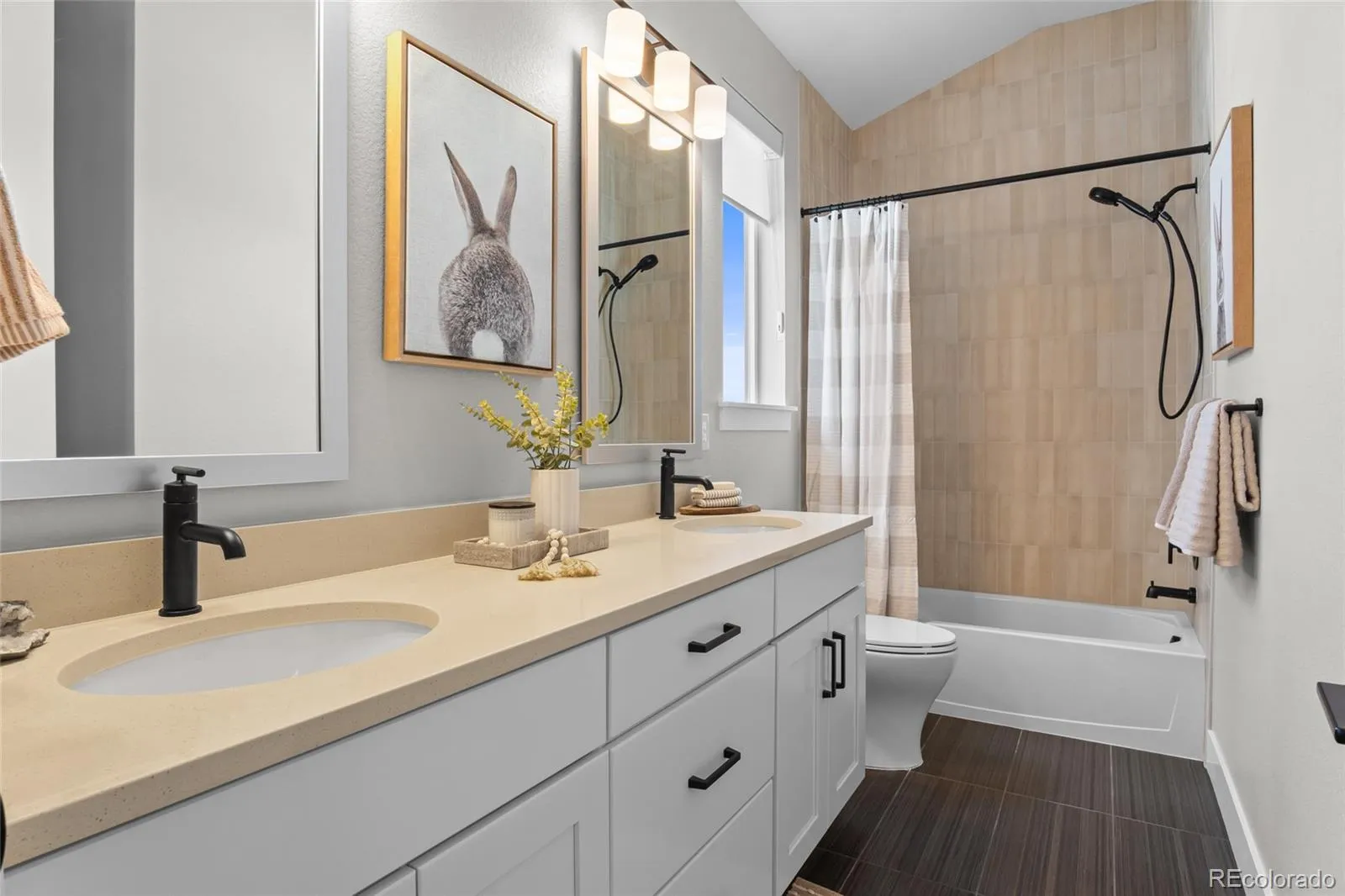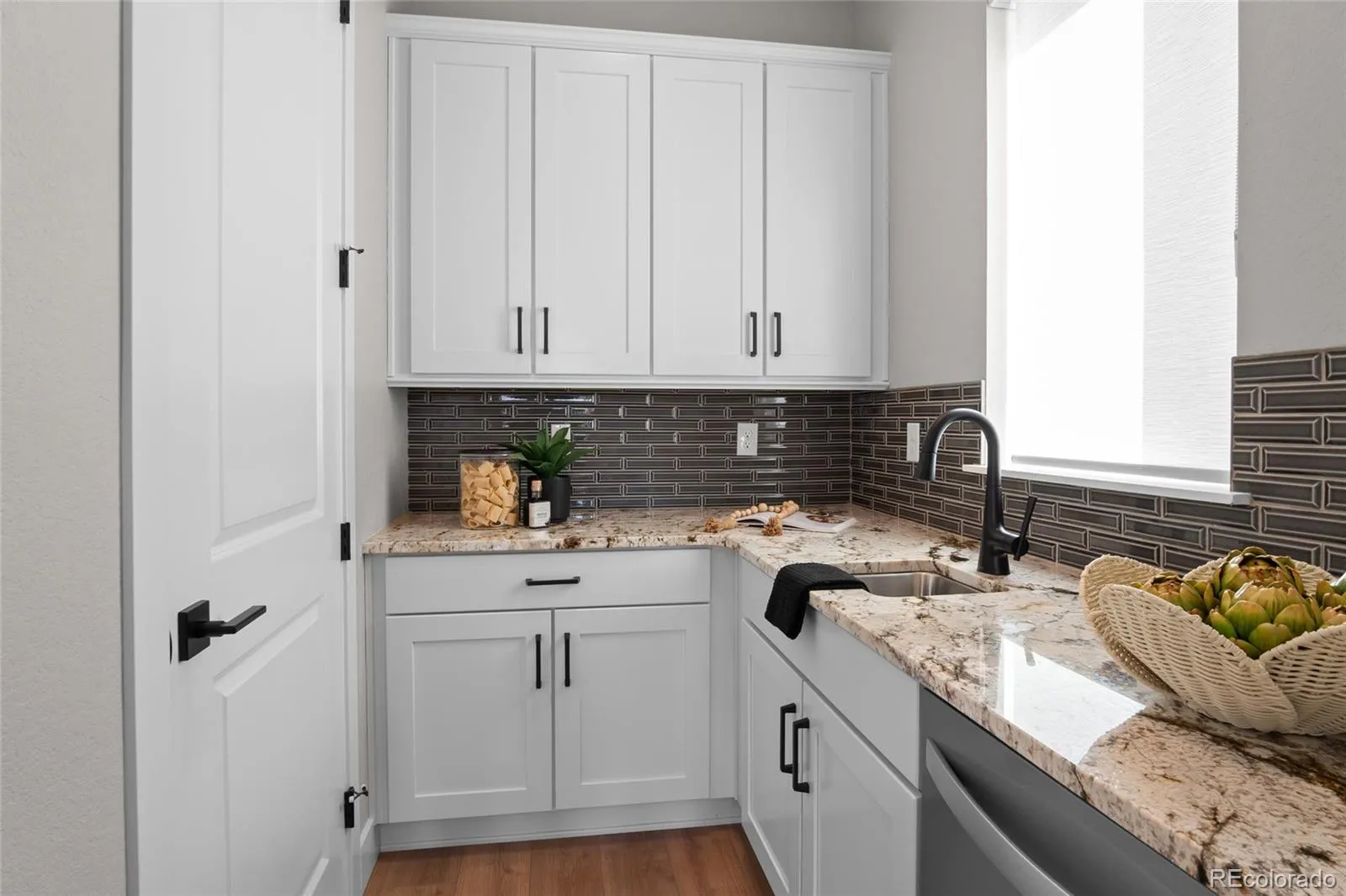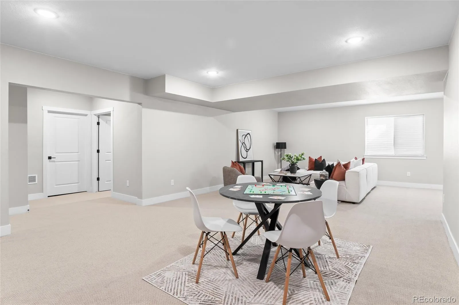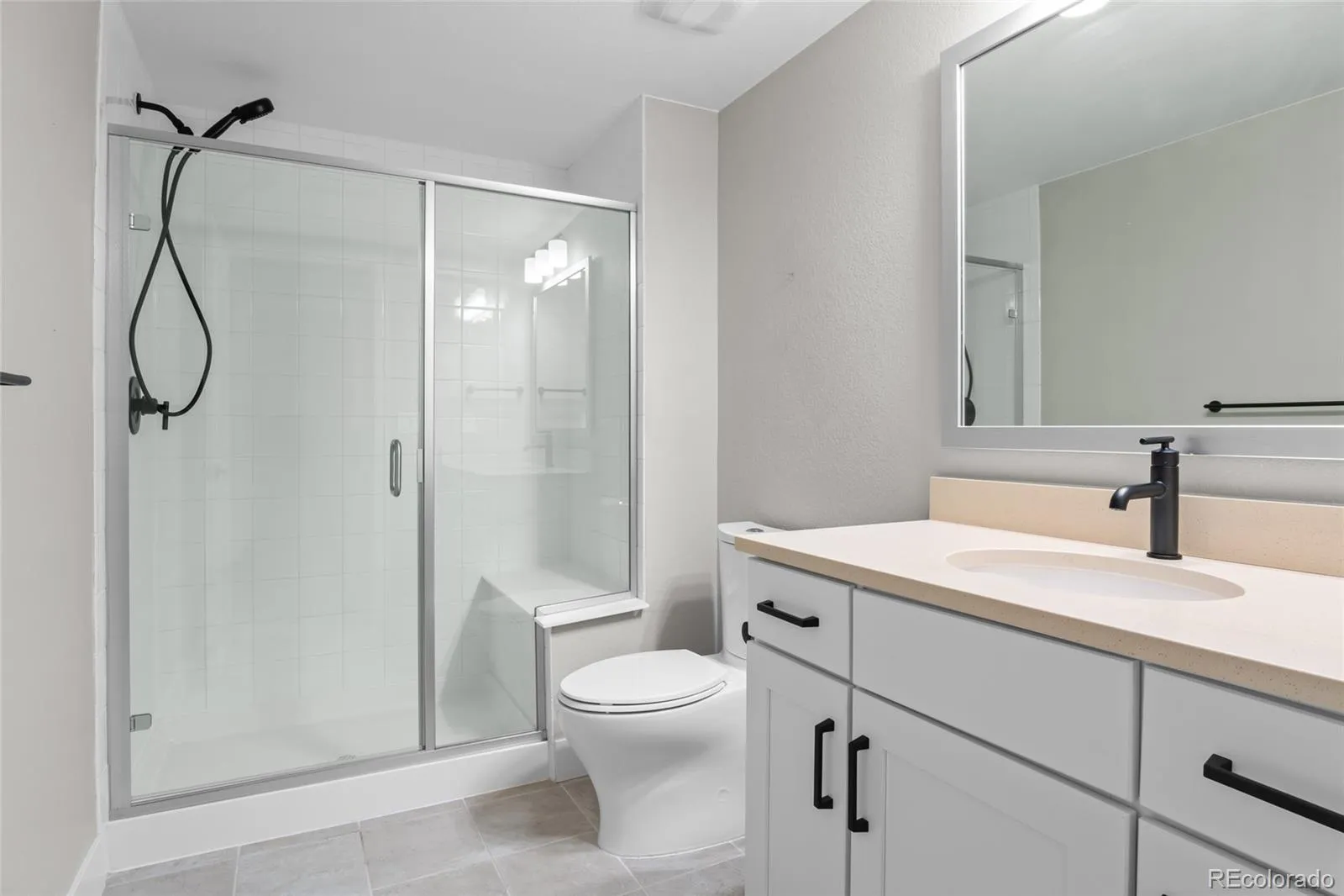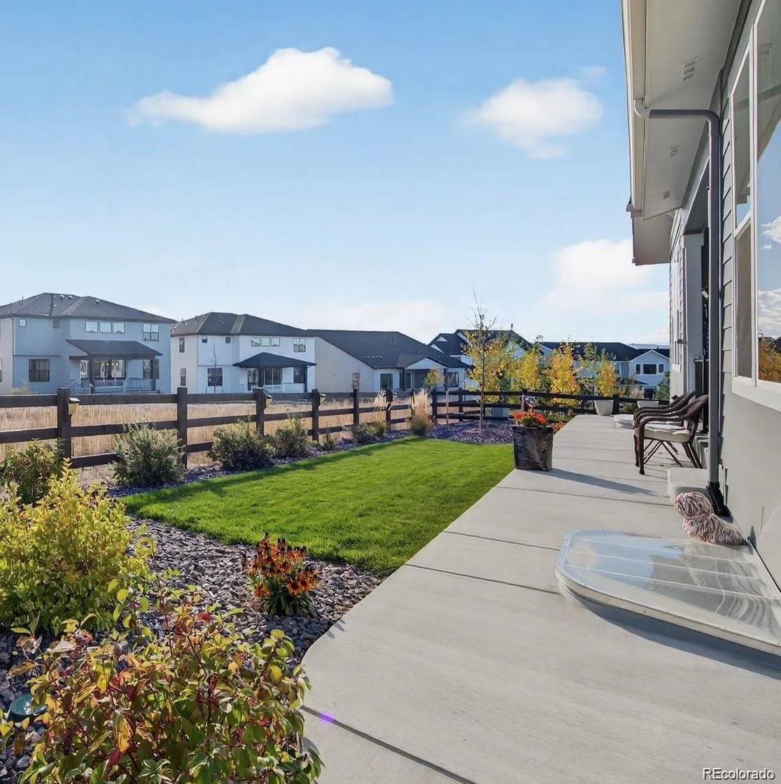 Nestled in the picturesque bluffs of Castle Rock’s Montaine community, this impeccably maintained and light-filled ranch home is just steps away from the communal amenities, and minutes from Colorado’s finest hiking/biking trails and the quaint shops and restaurants of historic downtown Castle Rock! Offering multiple areas for gathering and entertaining, this elevated Brightland home built in 2023 has been upgraded far beyond the competition, featuring a well appointed luxury kitchen with a sizable quartz island that seats 6, 42” cabinetry with crown molding and soft-close doors, pull out drawers, and a separate prep kitchen area with a large pantry, prep sink, and second dishwasher. The Primary suite is light, bright, and spacious, and the enormous closet, which connects directly to the laundry room (washer, dryer, and cabinetry included!) has room for an accessory island or ottoman. The Primary bath has a step in shower, and is equipped with grab bars. The secondary bedrooms are connected with a Jack and Jill full bath, and a separate powder room upon entry completes the main floor living space. The finished basement features 9 foot ceilings and a huge family room (plumbed for a wet bar), another spacious bedroom with walk-in closet, 3/4 bath, an additional fully shelved walk-in closet, and tons of unfinished square footage to re-imagine as your own unique space! Recent upgrades include several custom Hunter Douglas remote blinds (operational from your phone!), designer lighting, fully finished garages with painted drywall and epoxy floors, custom window well covers, and a fresh exterior paint job. The home backs to a green belt, with the front yard featuring gorgeous xeriscaping with irrigated plantings, showcasing the curb appeal of this one of a kind, low maintenance home. The covered back porch includes a ceiling fan and mount for an outside TV, and flows into a lush sprinkler-equipped back yard. Why buy new when you can have all of these next-level extras?!