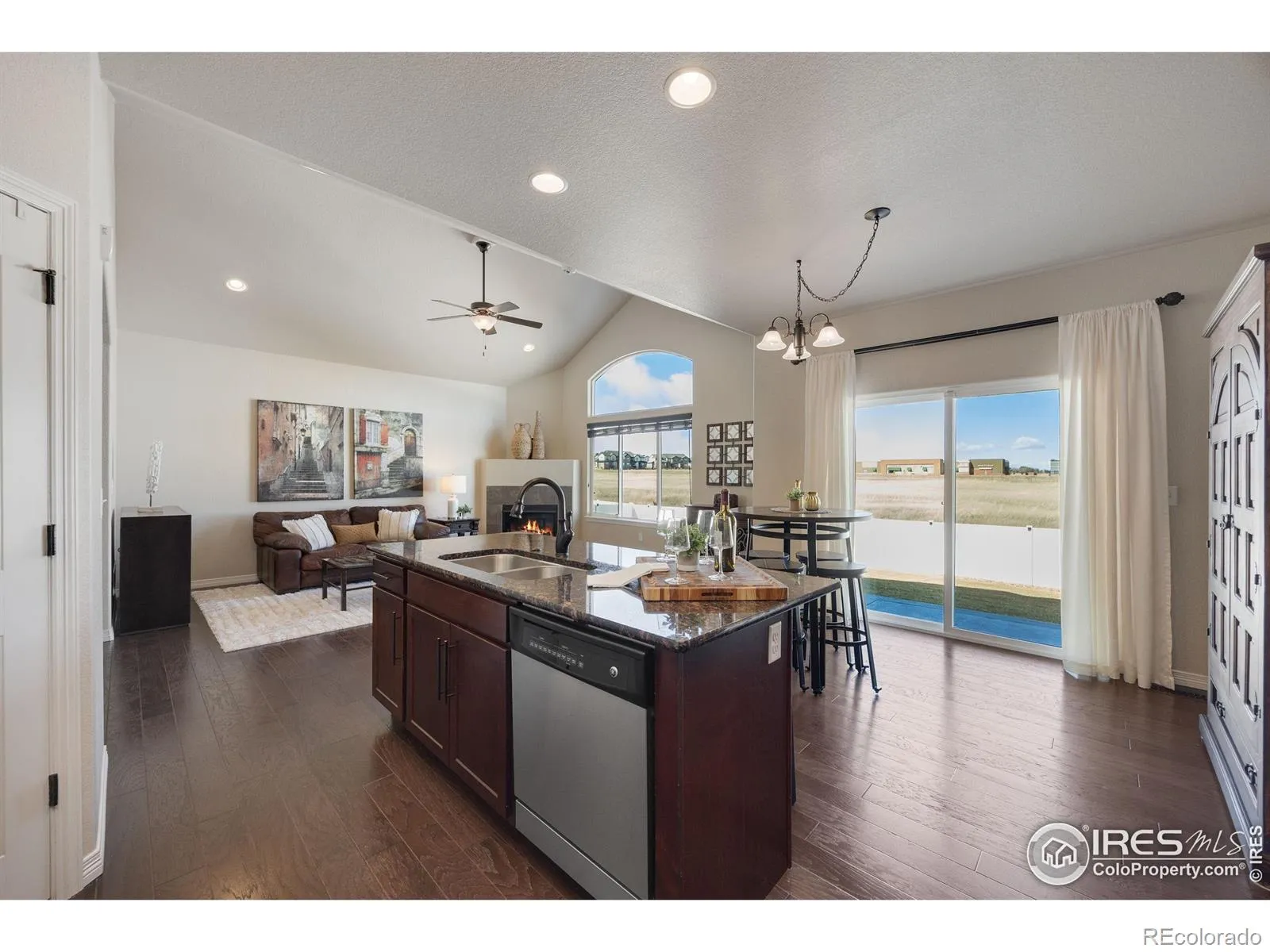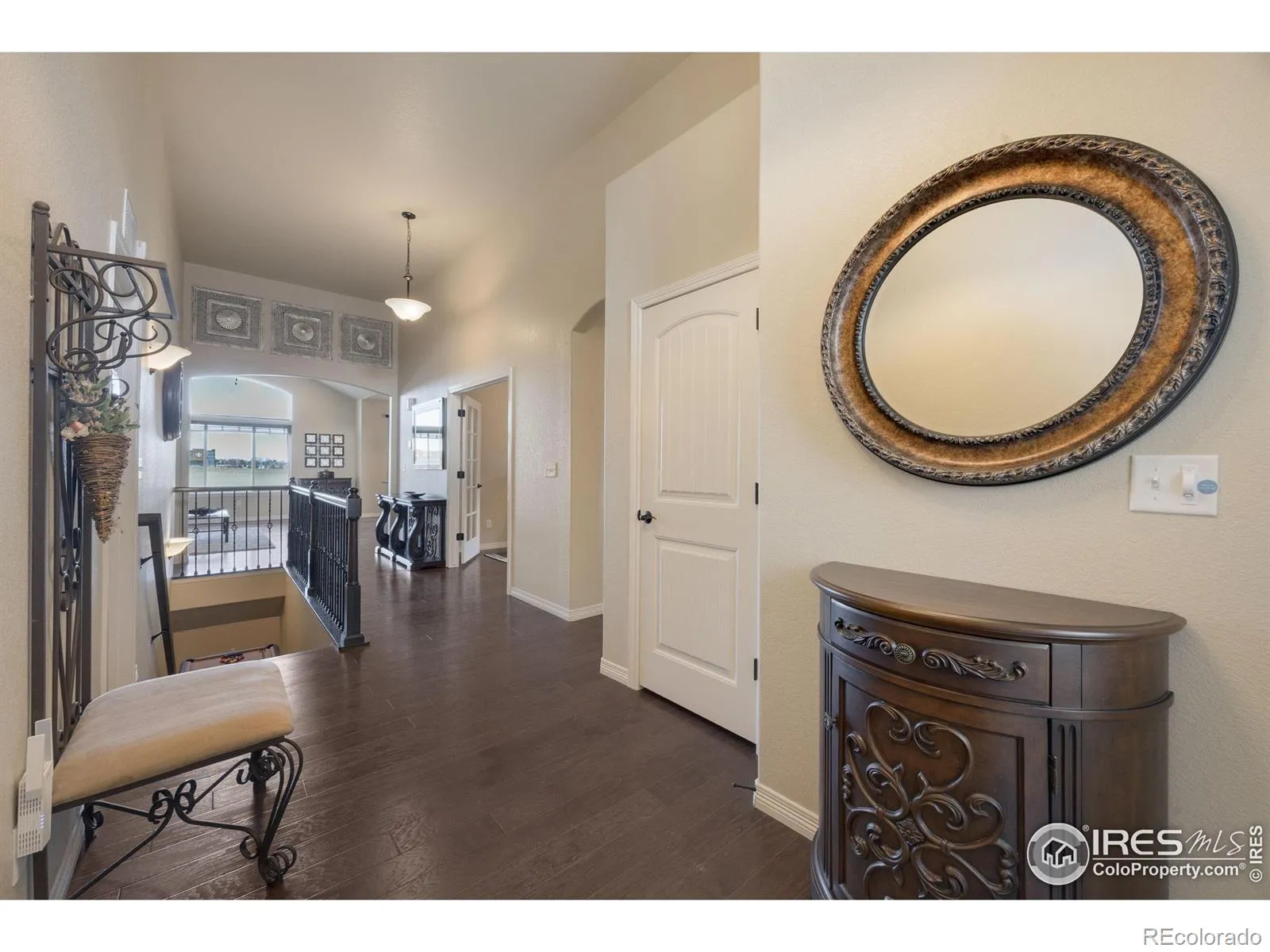 Welcome to 1324 Means Ln. in beautiful Berthoud, where mountain views meet the charm of small-town living. Pride of ownership is immediately evident, from the new Class 4 impact-resistant roof, to the fresh exterior paint and extensive flatwork along the south-facing driveway and side yard. A dramatic, soaring entryway sets the tone as you step inside, leading to a grand hallway accented by rich hardwood floors. Elegant French doors open to a flexible office or formal dining space. The main living area features vaulted ceilings, abundant natural light from oversized windows, and a cozy gas fireplace that anchors the space-perfect for gatherings and everyday living. The kitchen shines with gleaming new appliances, generous cabinetry, and granite countertops. Through graceful architectural arches, the primary suite becomes a true retreat, highlighted by vaulted ceilings and a stunning double-sided fireplace. At the foot of the fireplace, a soaking tub invites relaxation, while the spa-like bath impresses with a large walk-in shower featuring a river rock floor, and walk-in closet. The expansive finished basement offers incredible versatility with 9′ ceilings that enhance the sense of space. Whether you envision a media room, pool table, home gym, or entertaining area, the possibilities are endless-complete with plumbing already in place for a wet bar. Two additional bedrooms, a full bathroom, and a large storage area complete the lower level. The oversized rear patio sits on the shaded north side of the home, making it ideal for enjoying Colorado’s sunny days and unforgettable sunsets. Garage has a 25′ bay. Just minutes from Berthoud’s charming downtown, recreation center, TPC Colorado Golf Course, and Berthoud and Carter Lake Reservoir, 1324 Means Ln. offers the perfect home base for all your favorite Colorado fun.