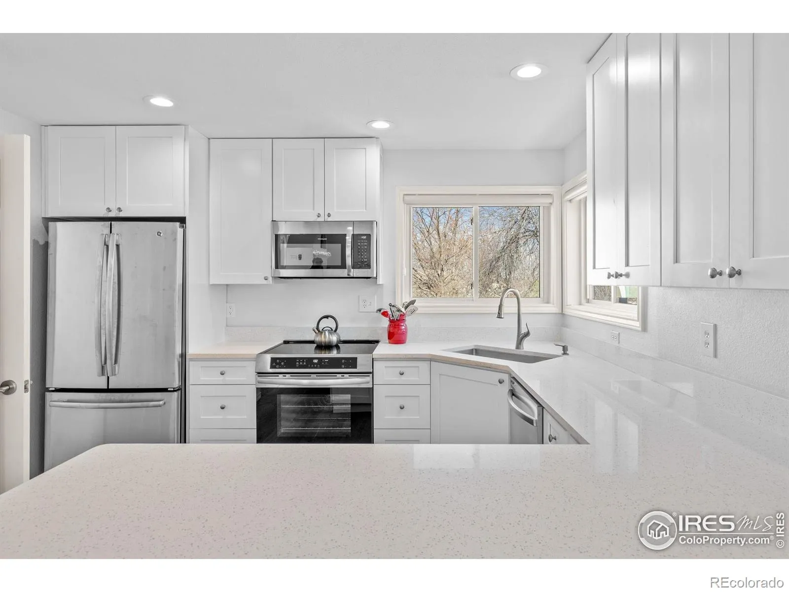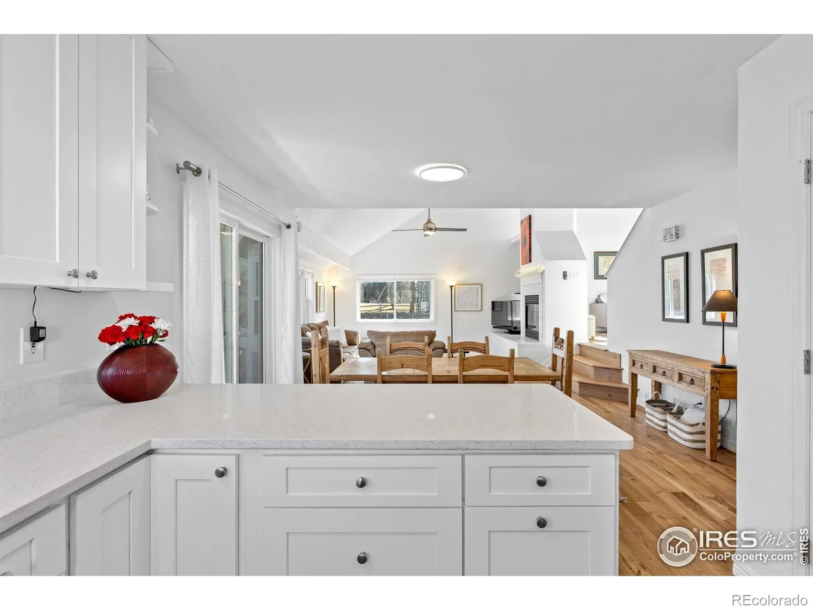 Experience the effortless sophistication of this beautifully reimagined Gunbarrel residence, where modern design meets turnkey ease. From the moment you arrive, impeccable curb appeal sets the stage – fresh exterior paint, a new roof, and sealed driveway offer a crisp, confident welcome. Inside, natural light pours into a dramatic vaulted great room, where soaring ceilings and refinished hardwood floors create warmth and scale. A striking gas fireplace anchors the space, adding both architectural presence and everyday comfort. The fully remodeled kitchen is a true centerpiece, appointed with sleek custom cabinetry, quartz countertops, and premium Samsung appliances – including a high-performance induction range with integrated air-fryer functionality – blending innovation with clean, contemporary style. A thoughtfully designed layout places all three bedrooms on one level, creating seamless livability. The primary suite is a serene retreat, defined by vaulted ceilings, natural light, and an updated ensuite featuring dual vanities and a spa-inspired rainfall shower. Beyond the visible finishes, the home reflects meticulous stewardship. A new Class 4 impact-resistant roof, fresh interior paint, designer window coverings, updated LED lighting, smart-home integration, serviced HVAC, and a professionally sealed garage floor ensure both beauty and peace of mind. Just steps from the community park, playground, and scenic LOBO Trail and ideally situated between Boulder and Longmont, this residence offers the rare opportunity to enjoy a truly “like-new” home in an established neighborhood – where every detail has been thoughtfully elevated and expertly handled.