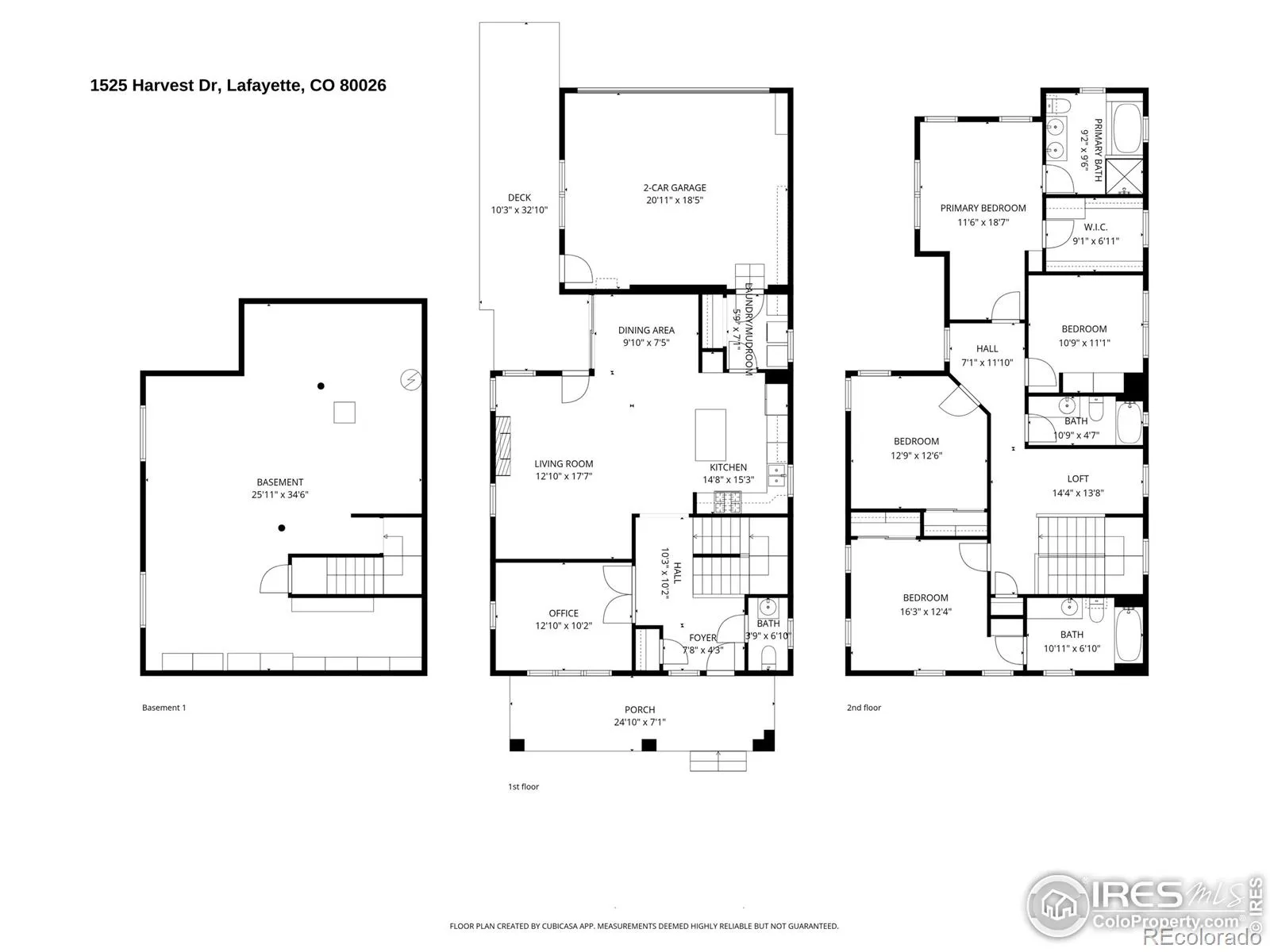 Mountain views and a rare 4-bed-up, 4-bath layout define this Lafayette home in the desirable Anna’s Farm neighborhood, designed for spacious living and low-maintenance outdoor enjoyment. Welcoming curb appeal and a full-length covered front porch lead you inside to newly refinished hardwood floors throughout the main floor. Just off the entry is a dedicated office and a convenient half bath. From there, the space opens to a spacious living room, dining area, and open kitchen. The dining room offers direct access to the rear deck, extending the living space outdoors and framing mountain views. Main-floor laundry and a functional mudroom with access to the newly refinished two-car, alley-load garage add everyday convenience. Upstairs, the vaulted primary suite features a 5-piece bath, walk-in closet, and mountain views. Two additional bedrooms share a full bath, while a 4th bedroom includes its own full ensuite. A versatile loft provides additional living space. The large, unfinished basement with a rough-in for a bathroom offers room for future expansion. Enjoy trails out your front door, nearby parks, shopping, Waneka Lake, Isabelle Farm, and Old Town Lafayette, all with easy access to Louisville, Boulder, and Denver.