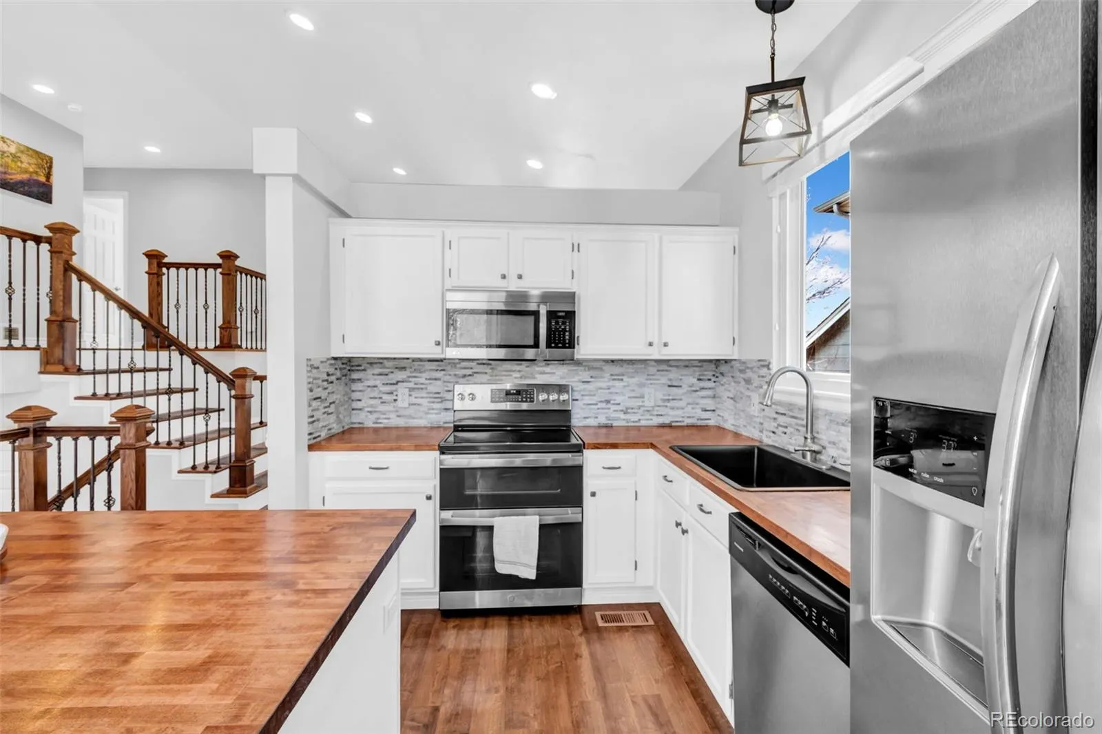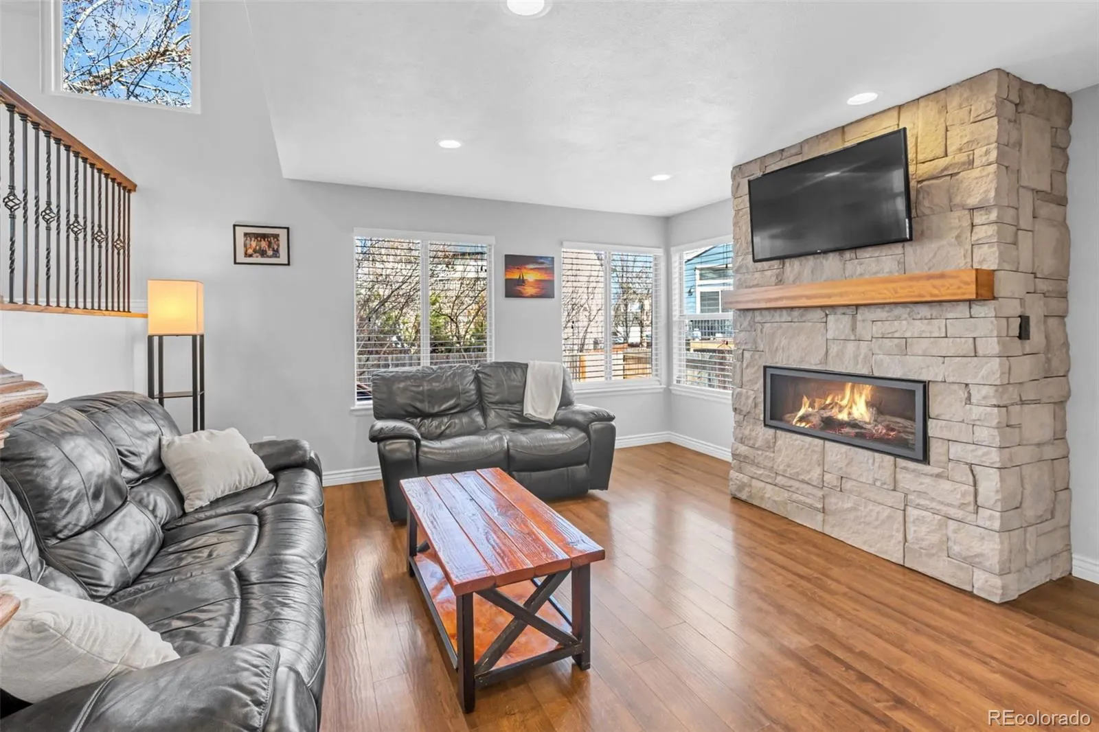Welcome home to this beautifully updated Parker gem—where the upgrades are done, the layout is functional, and the home feels warm, inviting, and truly move-in ready. The main level feels bright and open thanks to the high ceilings, creating that airy, spacious look buyers love. At the heart of the home is the updated kitchen, featuring a newer island with butcher block countertops—perfect for meal prep, entertaining, or gathering with friends while dinner’s cooking. It’s the kind of kitchen that actually works for real life, with plenty of space to spread out. The main living area is equally inviting, centered around a cozy stone fireplace, making it the perfect spot for relaxing evenings, holiday mornings, and Colorado winters.