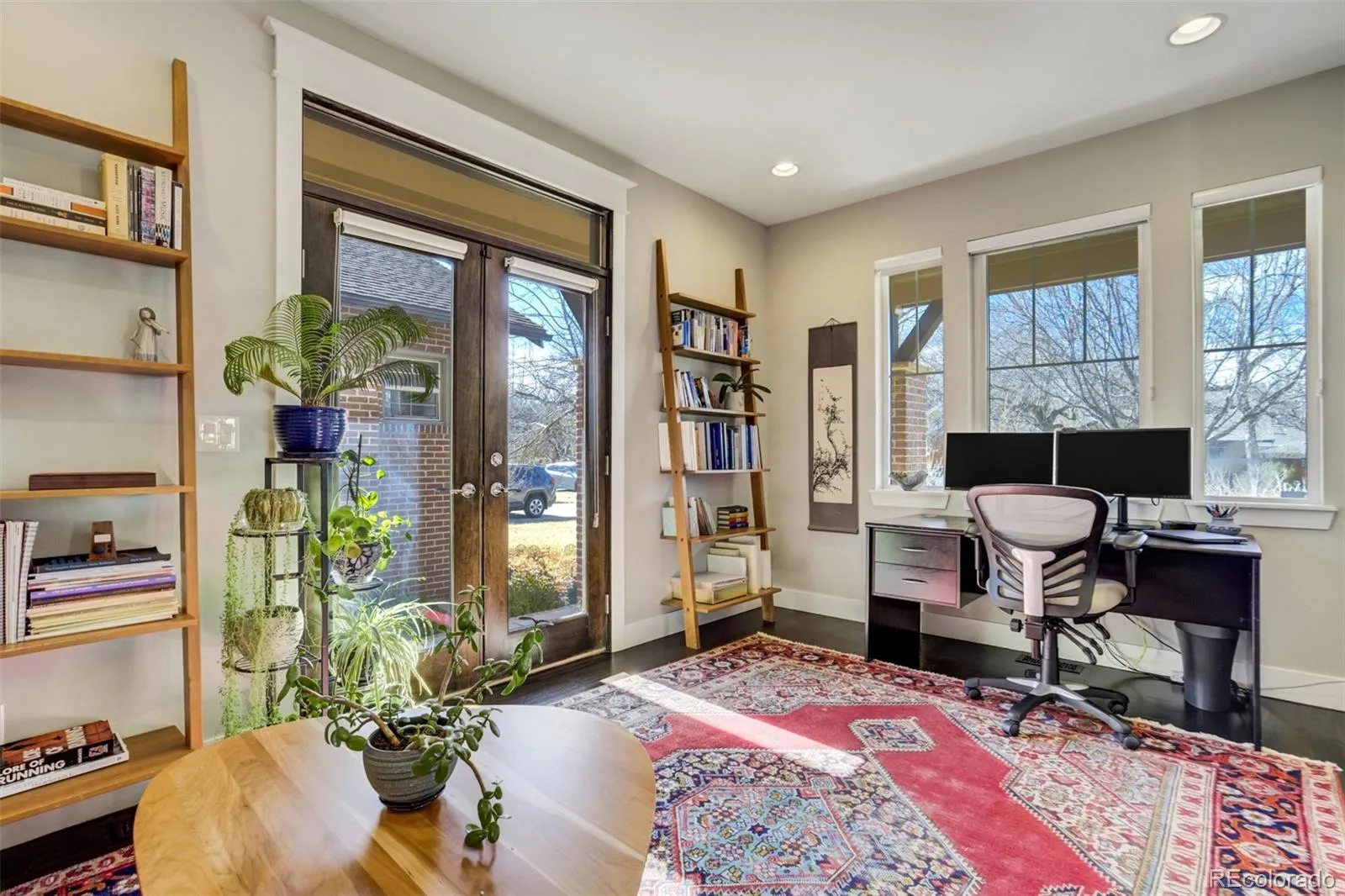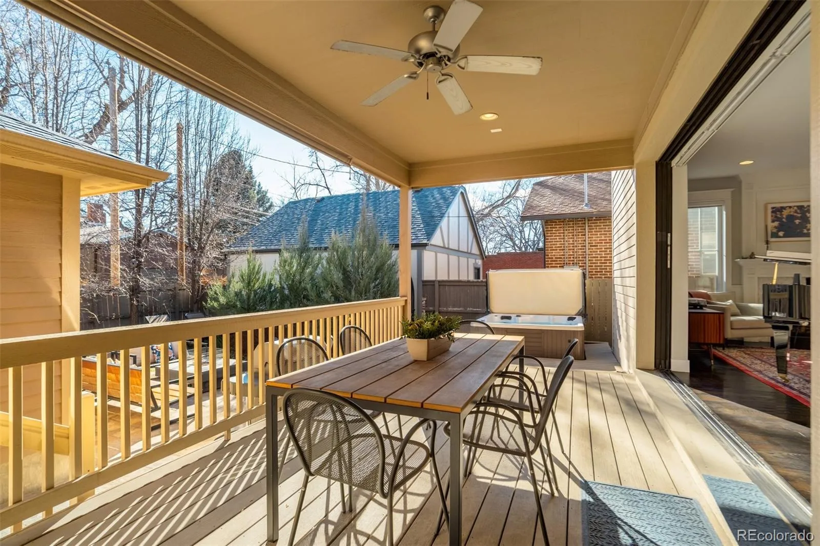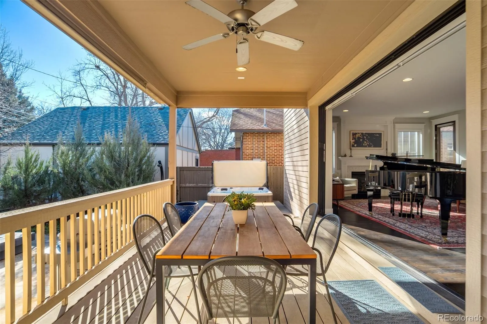 Located on a quiet block in Park Hill, this elegant five-bedroom, four-bath brick two-story blends classic charm with modern livability. The open kitchen anchors the main level with a large Quartz island, bar seating, six-burner gas range, and a well-appointed butler’s pantry. The kitchen flows seamlessly into the great room which features a gas fireplace and fully retractable glass wall system that leads to the fully fenced backyard. Colorado outdoor living is enhanced by the covered deck, hot tub, outdoor shower, paver patio, and gas firepit, while mature perennial landscaping and garden planters create a private oasis. Complementing the main floor, a formal dining room and main-floor study with French doors add flexibility. Everyday function is elevated by the generous mudroom leading to the attached, two-car garage—complete with built-ins and access to a dog run. Upstairs, the spacious primary suite features a five-piece bath and dual walk-in closets. Across the hall are two additional bedrooms with a jack-and-jill bathroom, and a convenient laundry room. The finished basement offers a large recreation room, wet bar, two conforming bedrooms, a functional space for work or crafts, and a spacious storage and mechanical room. Thoughtful upgrades like remote-controlled window coverings, radon mitigation, a new 2024 furnace, plus easy access to neighborhood dining, shopping, and parks, complete this exceptional home.