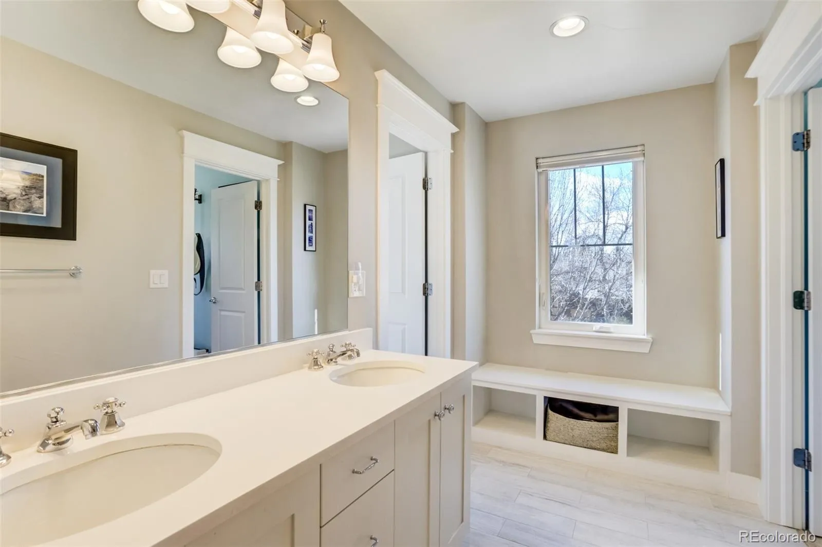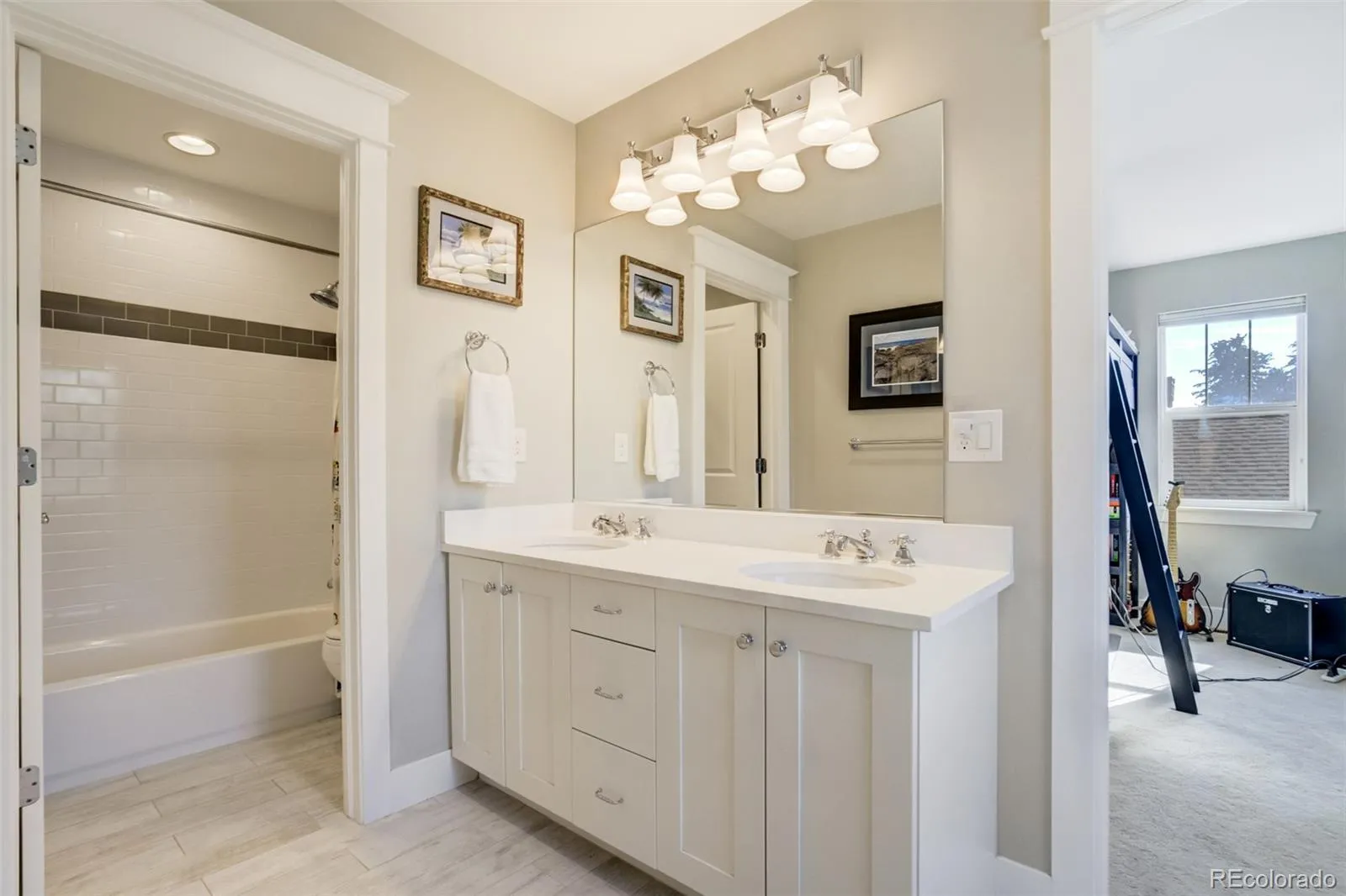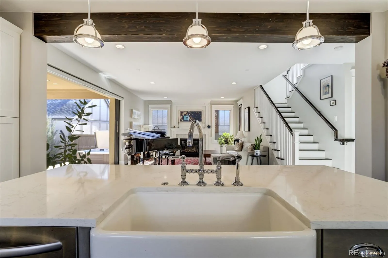 Located on a quiet block in Park Hill, this elegant five-bedroom, four-bath brick two-story blends classic charm with modern livability. The open kitchen anchors the main level with a large Quartz island, bar seating, six-burner gas range, and a well-appointed butler’s pantry. The kitchen flows seamlessly into the great room which features a gas fireplace and fully retractable glass wall system that leads to the fully fenced backyard. Colorado outdoor living is enhanced by the covered deck, hot tub, outdoor shower, paver patio, and gas firepit, while mature perennial landscaping and garden planters create a private oasis. Complementing the main floor, a formal dining room and main-floor study with French doors add flexibility. Everyday function is elevated by the generous mudroom leading to the attached, two-car garage—complete with built-ins and access to a dog run. Upstairs, the spacious primary suite features a five-piece bath and dual walk-in closets. Across the hall are two additional bedrooms with a jack-and-jill bathroom, and a convenient laundry room. The finished basement offers a large recreation room, wet bar, two conforming bedrooms, a functional space for work or crafts, and a spacious storage and mechanical room. Thoughtful upgrades like remote-controlled window coverings, radon mitigation, a new 2024 furnace, plus easy access to neighborhood dining, shopping, and parks, complete this exceptional home.