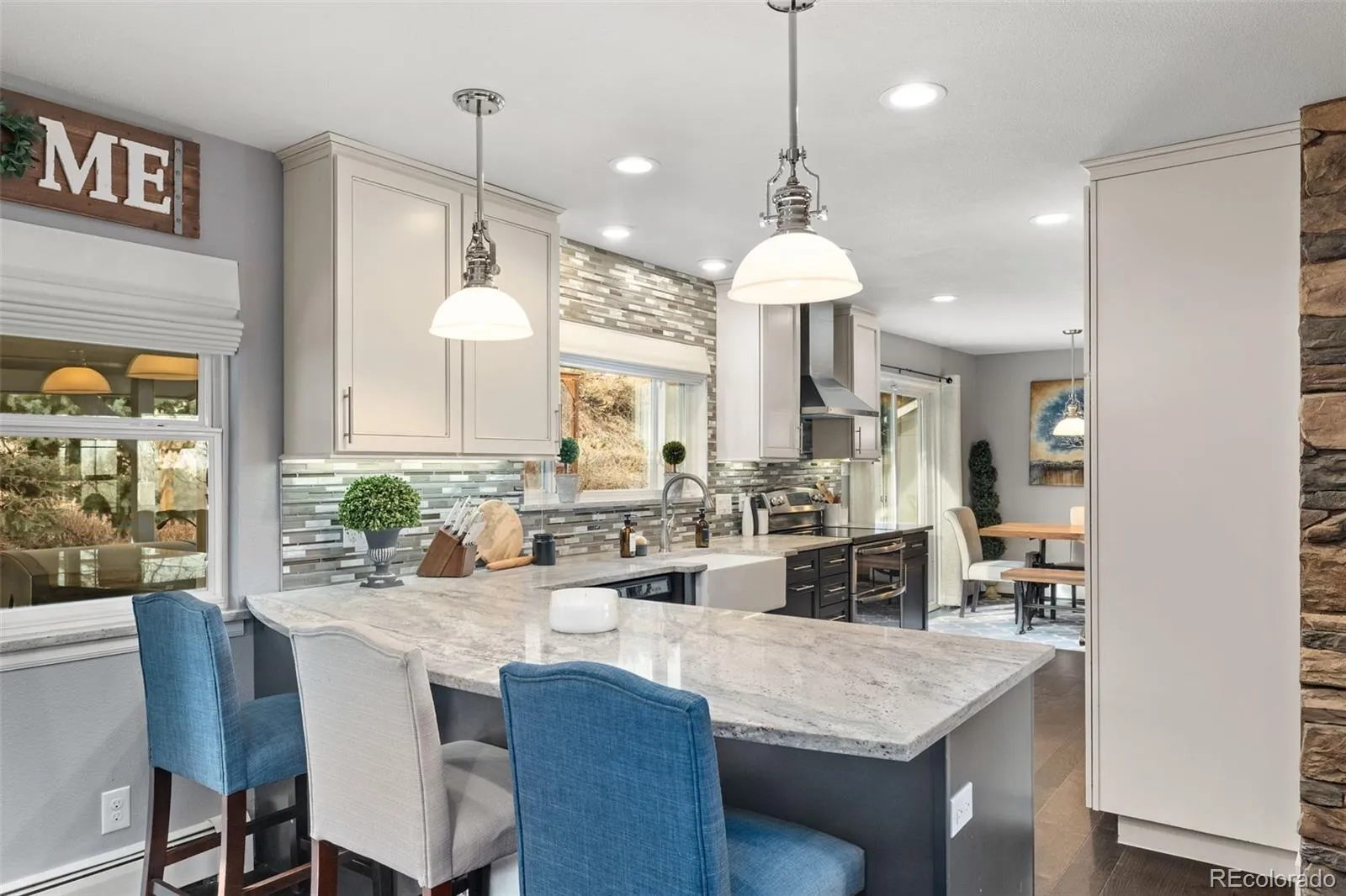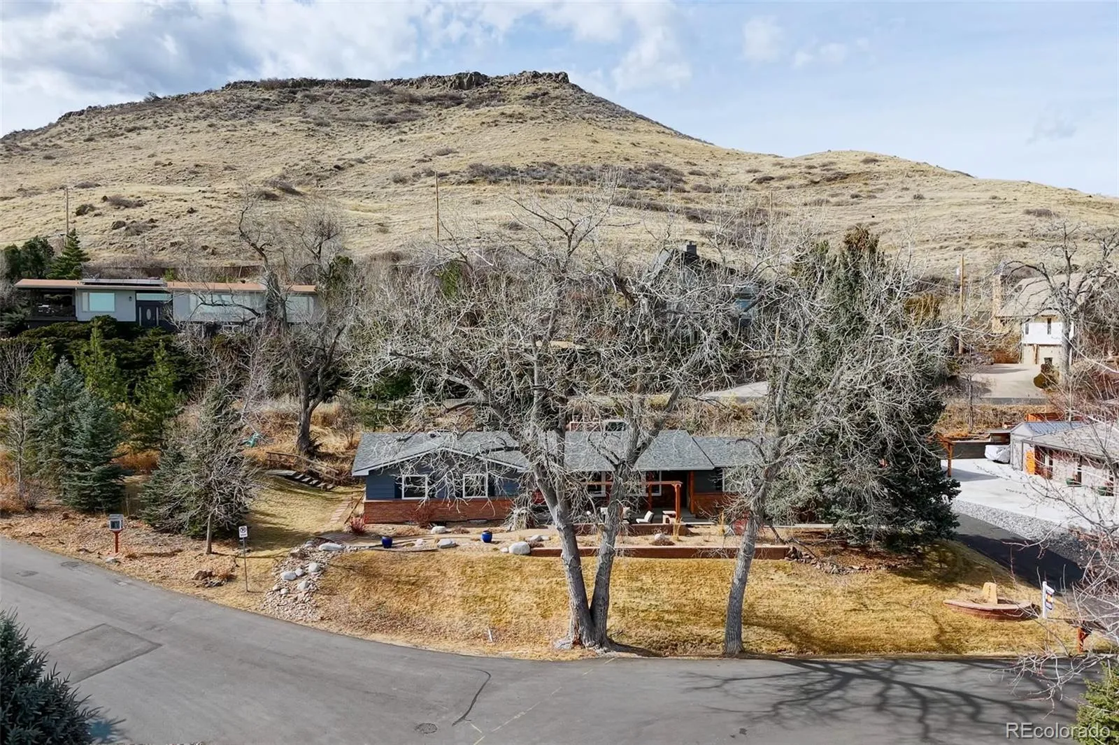 Nestled next to South Table Mountain, this beautiful 4 bed, 3 bath ranch home in the charming Applewood Mesa neighborhood is one you will not want to miss! This is your chance to own a fully updated home just minutes from outdoor recreation. This home has been meticulously maintained and feels like walking into a designer magazine! Stepping inside you’ll notice the large open floor plan with expansive family room, gas fireplace with floor to ceiling stone surround, alder wood accents and gorgeous wall of windows. The kitchen features stainless-steel appliances, high end cabinets with great storage pull outs, granite countertops, farmhouse sink, plus plenty of sitting area at the large peninsula and bonus coffee bar area! The kitchen opens to the large dinning room with high-end lighting and sliding glass door to your backyard. Heading down the hall you’ll find a primary suite with a custom walk-in closet, ensuite bathroom boasting a new tiled shower, designer lighting and stylish floating vanity. Rounding out the main level are two ample sized bedrooms, a luxurious bathroom with twin vanities, and a full size bathtub. Head down the open stairs to the stylishly updated basement. New carpet, fresh paint, new high efficiency windows, and gas fireplace with brick surround and floating mantel in the big bonus room. Double doors open to an additional large bedroom with sitting area and office space that feels like a primary bedroom. Impressive ensuite spa-like bathroom includes dual vanity, large soaker tub, and separate shower. Additional game room, laundry, and storage area complete the basement. Enjoy the large lot that feels like your own park, with a covered garden area, or take in the breathtaking South Table Mountain view from your patio. Schedule to see today so you can live in this beautiful home and experience the wonderful lifestyle offered here!