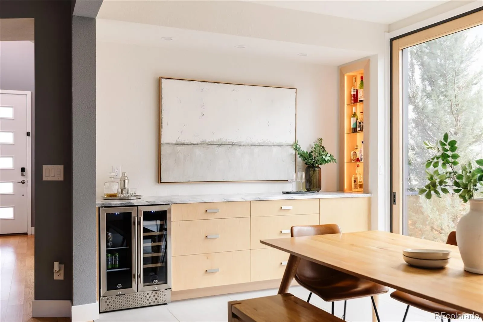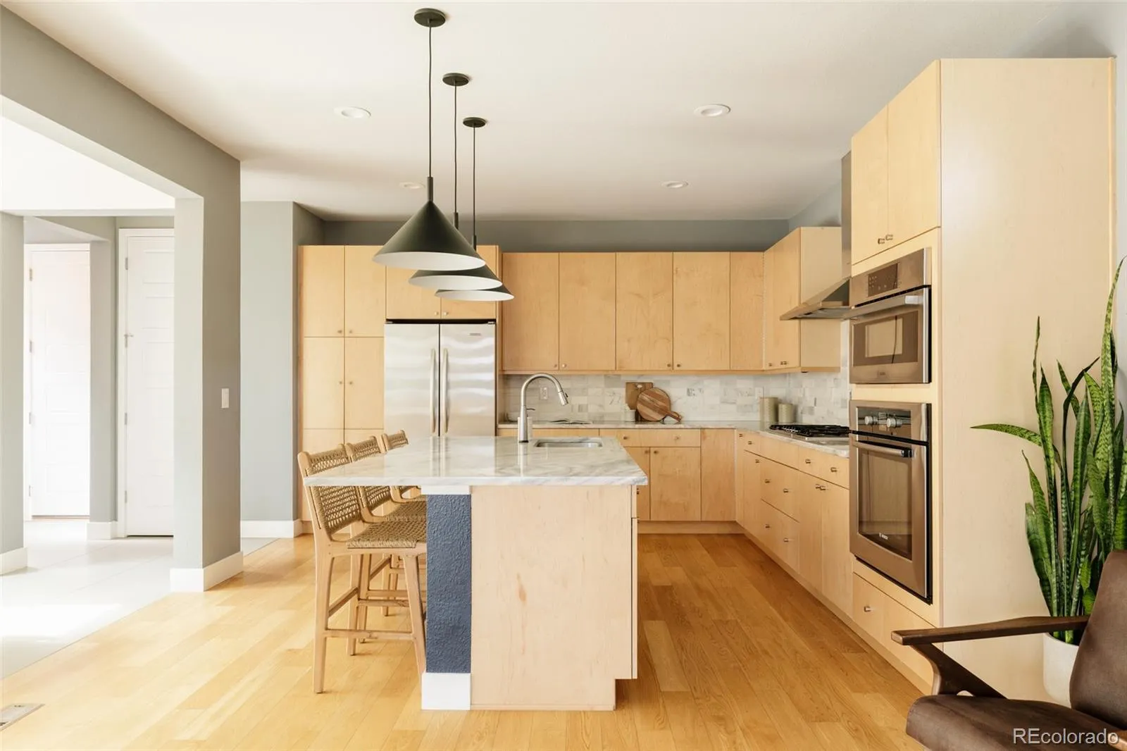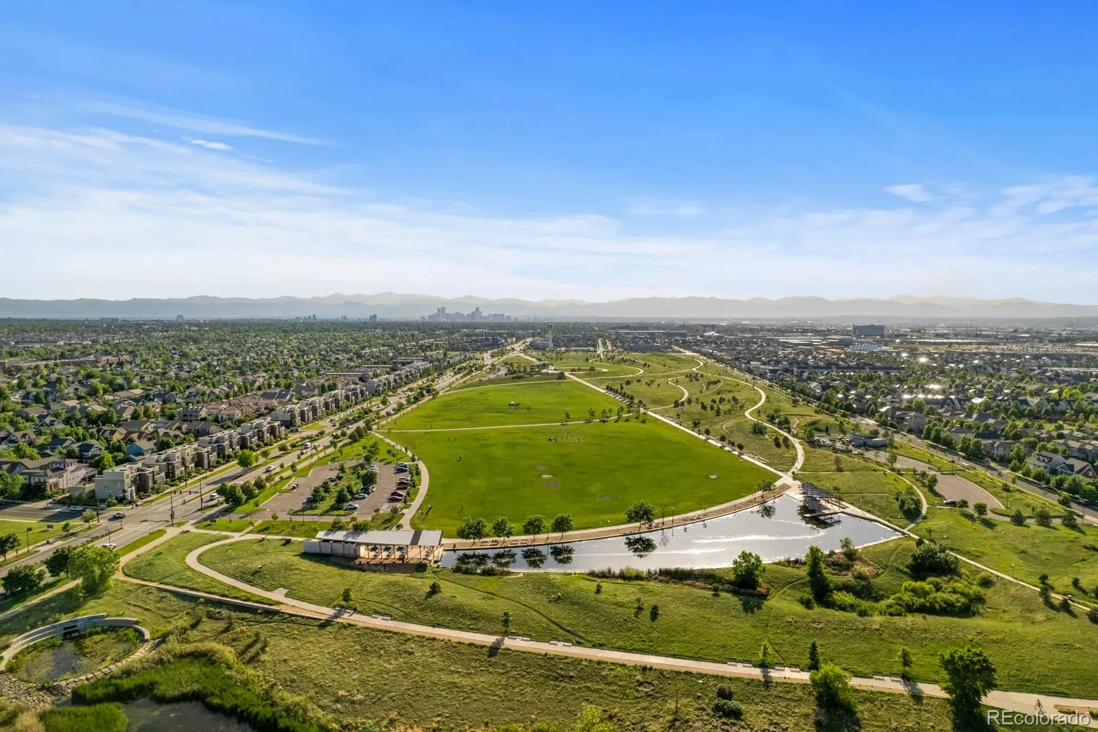 On Rumble Park with front-row views & access to Stanley Marketplace, Eastbridge, Bluff Lake Nature Center, Children’s Hospital & the Fitzsimmons Medical Campus, this Infinity Lime residence blends thoughtful design, elevated finishes & an unbeatable Central Park lifestyle. The moment you arrive, the home’s uniquely designed front porch with cantilevered patio creates striking curb appeal. Inside, wide plank oak flooring flows throughout the main level, setting a warm, modern tone that’s both timeless & refined. The living room is anchored by a gas fireplace with white stone stacked to the ceiling, softened by custom Silhouette blinds. The kitchen features new quartzite countertops, custom cabinetry, decorative backsplash & upgraded appliances including double ovens & a gas range. The kitchen opens seamlessly to the extended dining area, where a stacked slider creates true indoor–outdoor living & leads directly to the backyard – enjoying radiant heat floors for year round comfort. A built-in dry bar complete with matching quartzite counters & beverage fridge. A functional mudroom with built-in bench & hooks keeps daily life organized. Upstairs you’ll find a spacious primary suite with room for a sitting area, a luxurious bath with dual quartz vanities & a walk-in closet. Two additional bedrooms, a full bath, a versatile loft & a conveniently located laundry room complete the upper level. The finished basement expands the living space even further, featuring a large secondary living area, an additional bedroom & a full bathroom—perfect for guests, a home gym, or movie nights. Outside, enjoy an extended patio, mature landscaping & a large garden box, all while overlooking Rumble Park—your own private green space just beyond the front door. A new roof & oversized two-car garage add peace of mind & everyday convenience. All this just minutes from walking trails, parks, top-rated schools & the vibrant energy of Eastbridge & Stanley Marketplace.