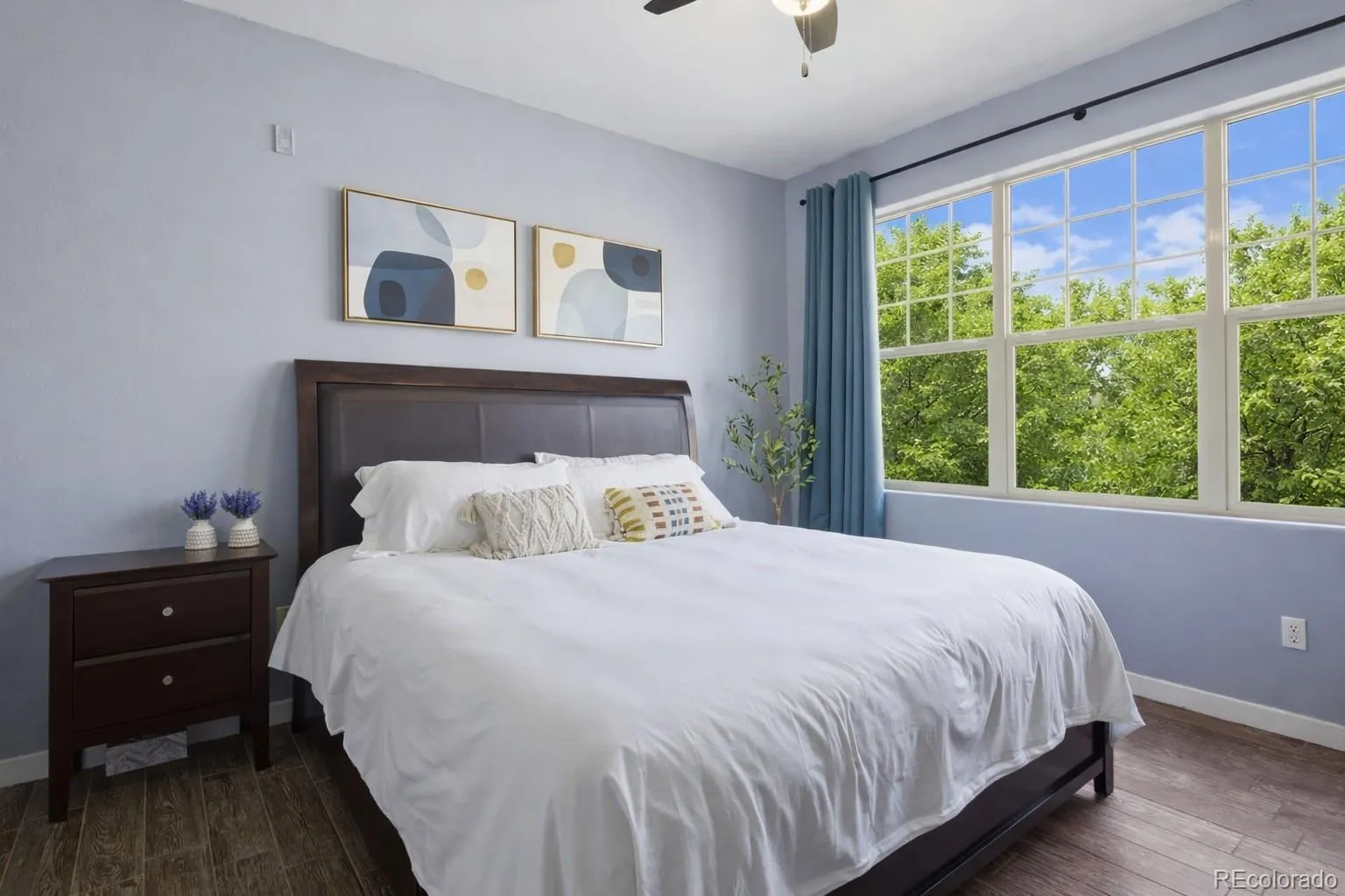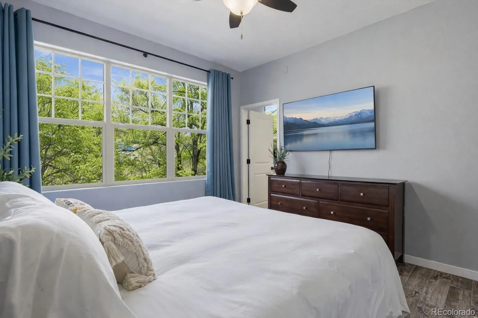 Inside, soaring ceilings and expansive windows fill the open-concept living space with natural light, creating an airy, welcoming feel. Just off the spacious living room, a private balcony offers the perfect spot to enjoy glowing sunsets and fresh mountain air. Recent upgrades — including fresh paint, new faucets, updated hardware, and stylish window treatments — give the home a crisp, modern finish that feels both comfortable and refined.