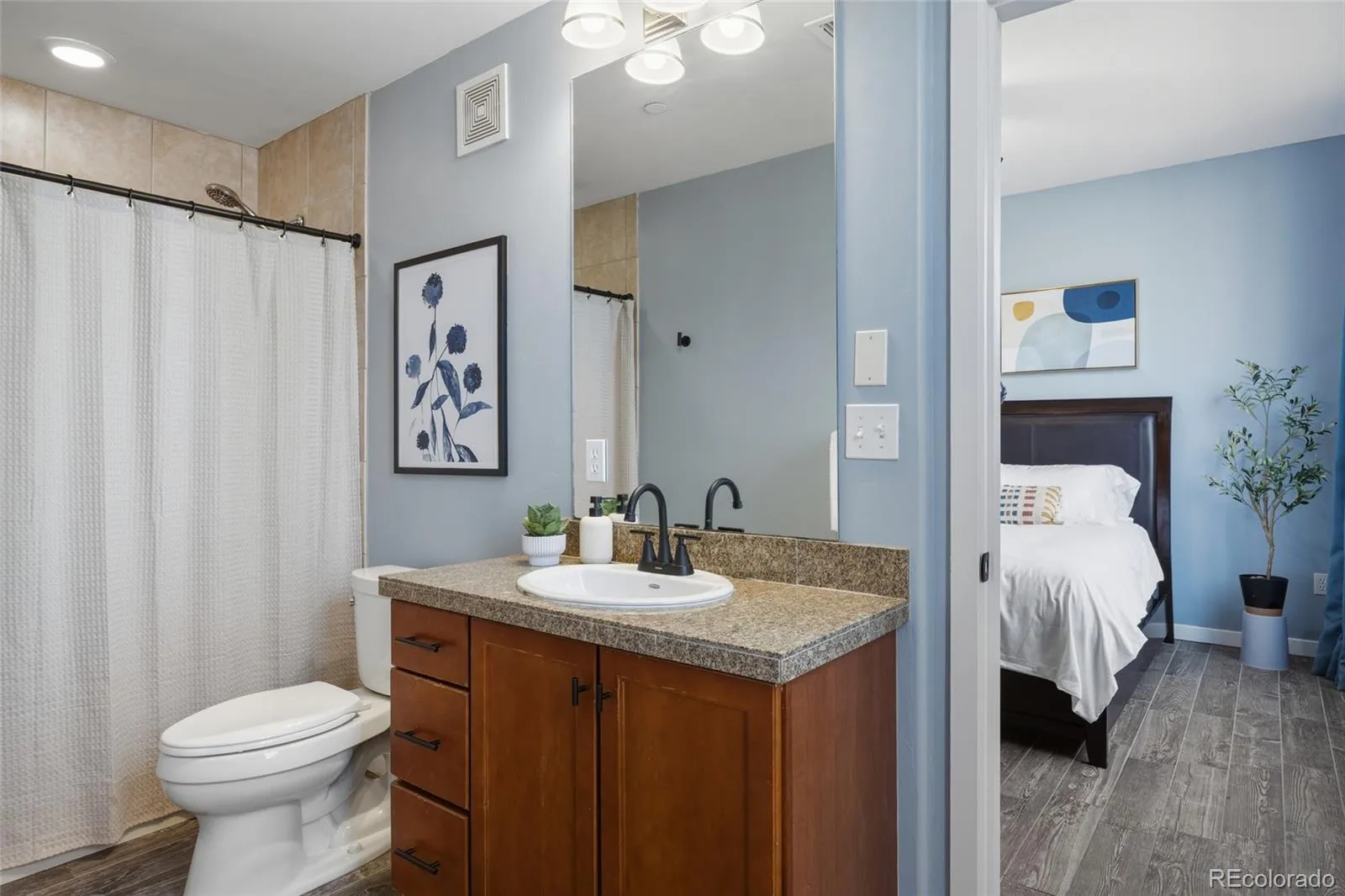 Wake up to peaceful views of North and South Table Mountains from both bedrooms, each featuring generous walk-in closets. The spacious primary suite includes a private en suite bath, and the full bath off the hallway adds flexibility for guests or a home office.