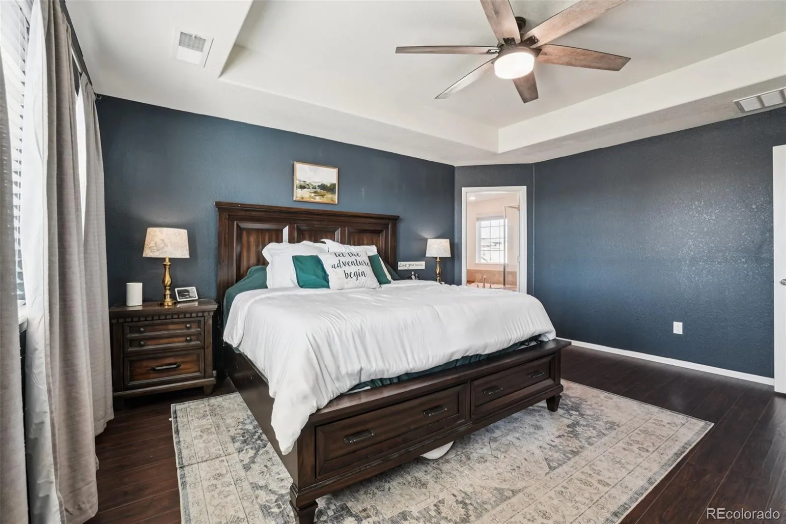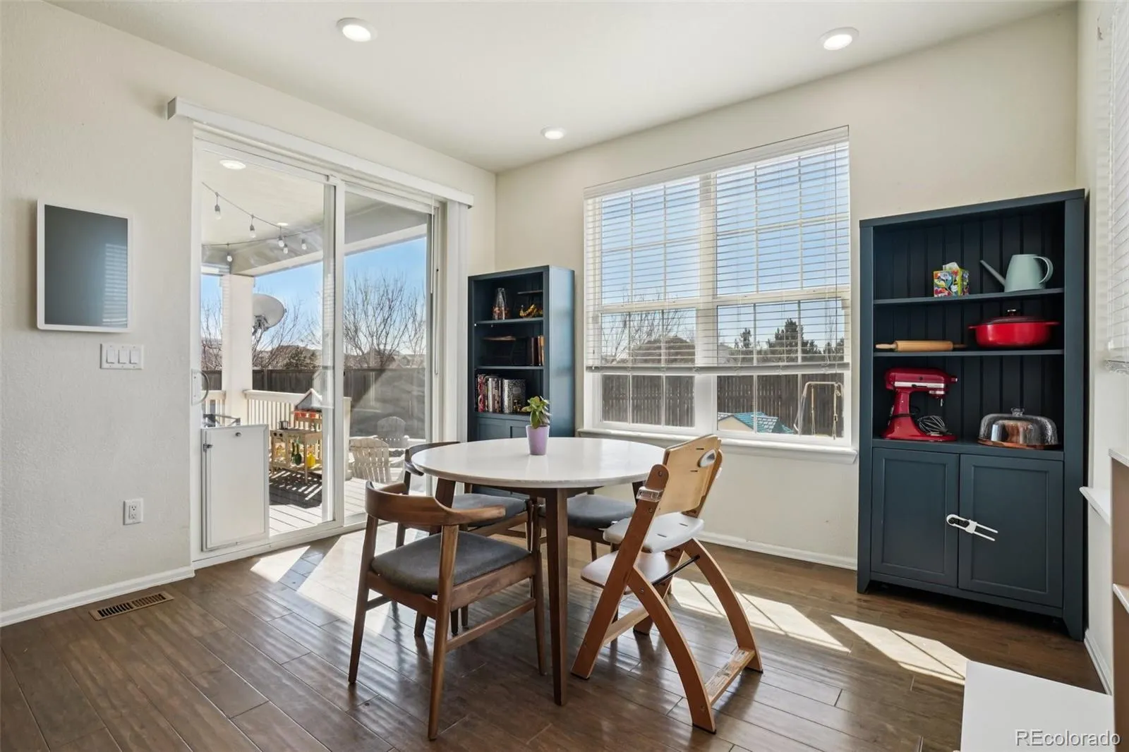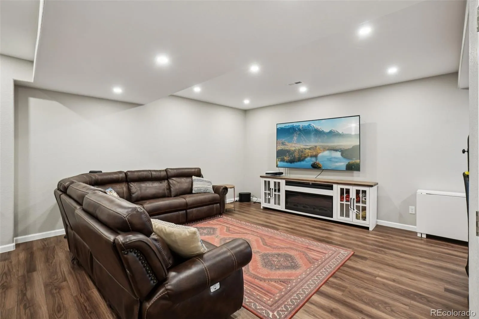 Situated on a premium cul-de-sac lot without backing neighbors, this meticulously maintained 2-story home in Thornton’s Orchard Farms perfectly blends sophisticated living and timeless design. Beautiful, engineered hardwood floors welcome you upon entry and seamlessly connect to the main living spaces. Cozy up by the gas fireplace with a custom surround in the inviting great room. The heart of this home is the gourmet kitchen featuring an oversized center island, granite countertops, stainless steel appliances, a walk-in pantry, and a conveniently located pocket office. Seamless flow from the 3-car tandem garage through the mudroom/pocket office creates functional living and a private owner’s entry. Step out the large glass slider to a covered composite deck, ready for summer entertaining and family BBQs. The lower expansive patio offers extended living space with a gas firepit, overlooking low-maintenance landscaping and mature trees behind the fenceline for added privacy in the summer months. Upstairs, the private living quarters include three generously sized secondary bedrooms (two share a Jack-and-Jill bath, while the 3rd has a private ensuite bath), laundry, and the primary suite. This serene retreat is complete with an ensuite 5-piece bath and a walk-in closet with a custom closet system. Descend to the entertainer’s basement. The finished basement (completed in 2023) features a spacious den with a wet bar, while a private 5th bedroom, a bath, and a bonus home gym round out the lower level. Orchard Farms is an established family-friendly community with many neighborhood events throughout the year (food trucks, dumpster days, Easter Egg hunt, movies in the park!) while being only minutes from neighborhood schools, shopping, dining, and major roadways. This home is ready for its next chapter; all it needs is you!