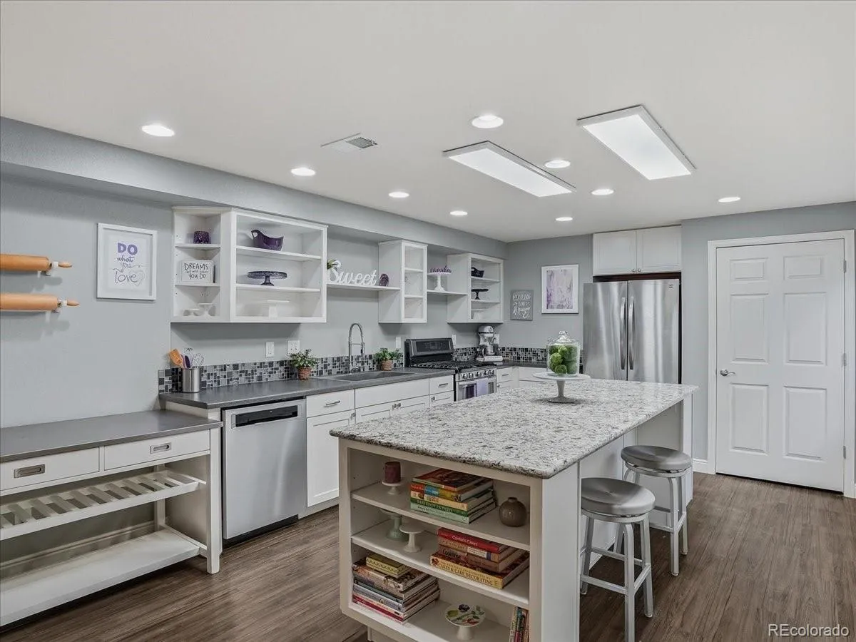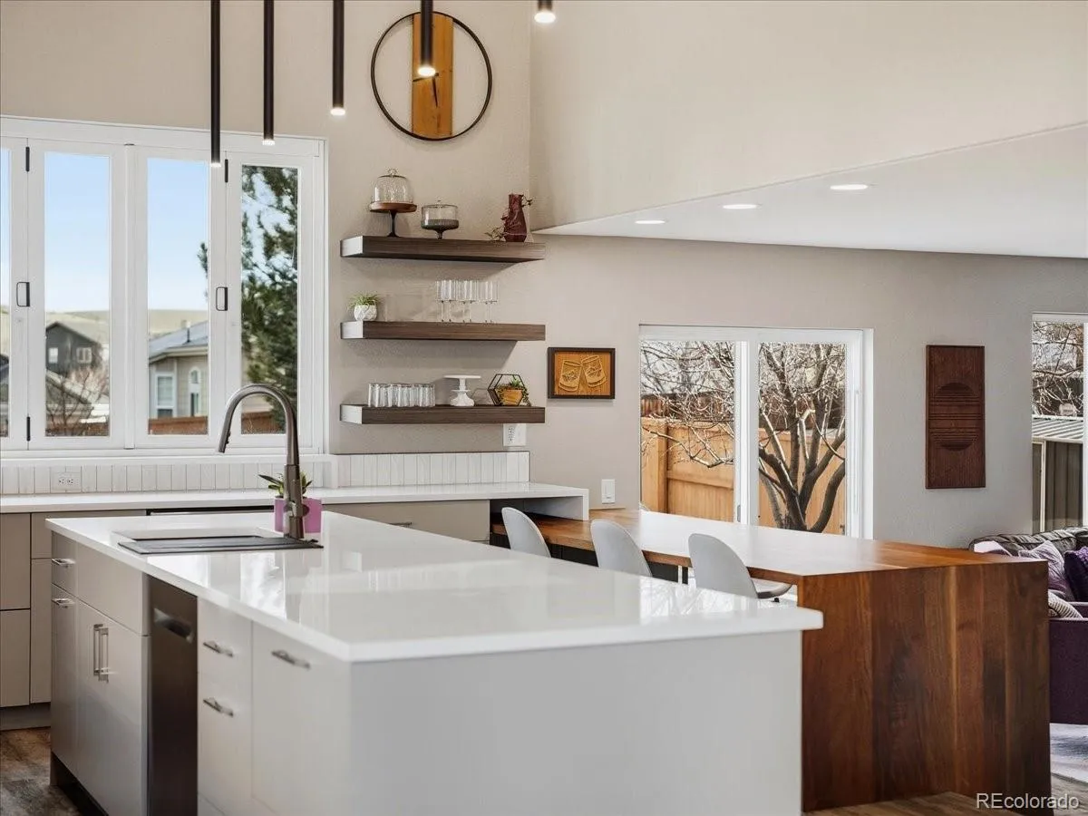 Set within the Vista Ridge community in Weld County, 2099 Mountain Iris Dr offers over 2,650 finished square feet of thoughtfully upgraded living space designed for flexibility and comfort. The reimagined main level features an expanded kitchen with quartz countertops, a large island with seating, Bosch appliances, induction cooktop, custom walnut waterfall dining feature and a bifold serving window that enhances indoor-outdoor flow. The open layout connects seamlessly to the living and dining areas, creating a bright and functional main floor ideal for everyday living and entertaining. Upstairs, the primary suite includes a spa-inspired bath with a zero-entry shower, heated floors and dual vanity, while laundry has been relocated to the primary closet for added convenience. Auxiliary bedrooms on the second level capture mountain views, adding to the elevated feel of the home. The finished basement delivers true multigenerational flexibility with a secondary kitchen, large island, additional living area and dedicated storage space, offering options for extended stays, guest quarters or workspace separation. Major systems have been updated and an EV charger is already installed. Outdoors, the 7,000 sq ft lot includes a stamped concrete patio, included hot tub, fenced backyard and refreshed landscaping, creating a welcoming and usable outdoor setting. Residents of Vista Ridge enjoy a clubhouse, two pools, tennis and pickleball courts, parks and extensive walking trails. Colorado National Golf Course, a public course located within the community and home course for the University of Colorado men’s and women’s golf programs, offers collegiate-level play nearby. Convenient access to Highway 7 connects quickly to Highway 287 and Interstate 25, with approximate drive times of 20 to 25 minutes to Boulder and 30 to 35 minutes to Denver. Grocery, retail and dining are located within Vista Ridge Marketplace.