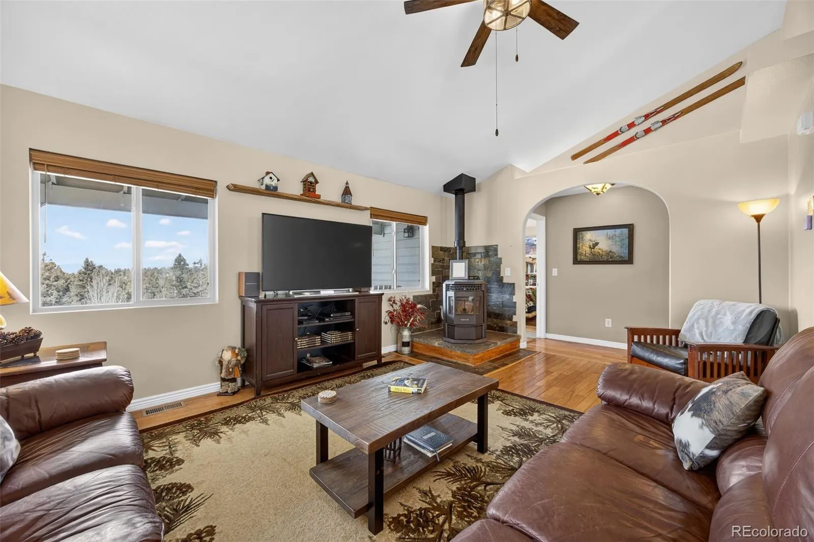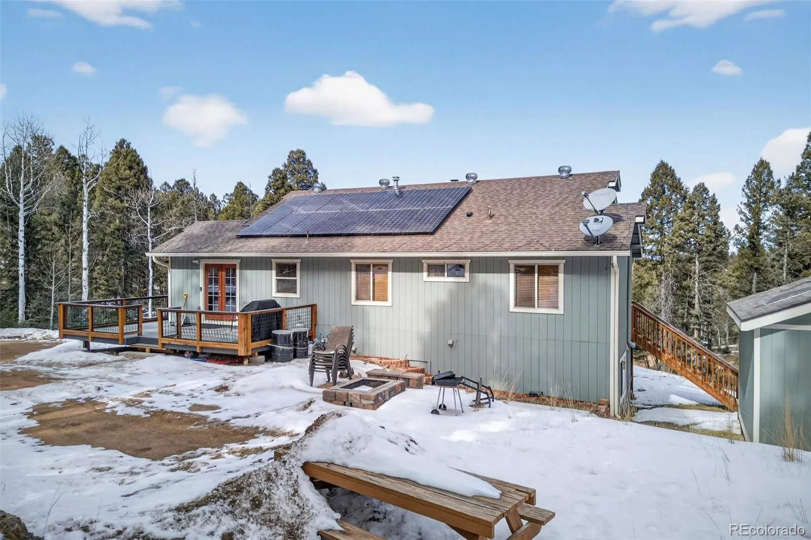 Welcome to 68 Nevada Ln in Florissant, a true Colorado mountain retreat where rustic charm, comfort, and space come together on a beautiful wooded setting. This furnished home is ready for you to start enjoying from day one, whether you’re looking for a full-time escape, a weekend getaway, or a place to gather and unwind in the mountains. Inside, warm wood flooring, vaulted ceilings, and an open layout create an inviting atmosphere the moment you walk in. The kitchen offers ample cabinet space, stainless appliances, and butcher-block style counters with a large breakfast bar. The dining area sits beneath a striking chandelier and is surrounded by natural light, while oversized windows throughout the home frame stunning mountain views from nearly every room. The living room is spacious and comfortable, perfectly positioned to take in the scenery outside. Upstairs, the primary bedroom retreat offers privacy and elevated views, along with a well-appointed en-suite bath that feels peaceful and secluded from the rest of the home. Downstairs, the lower level is designed for entertaining with a large recreation area featuring a pool table, bar space, and plenty of room for game nights or relaxing after a day outdoors. Step outside onto the expansive covered deck, where you can sit, relax, and soak in the panoramic views of tall pines, rolling terrain, and Colorado skies. Whether enjoying quiet mornings or evenings under the stars, this outdoor space truly extends the living area into nature. Just minutes from Florissant Fossil Beds and a short drive to Eleven Mile Canyon and Spinney Mountain Reservoir, you’ll have hiking, fishing, and boating close by. As an added bonus, this sale includes two additional land parcels, each 0.54 acres: 46 Nevada Ln (PIN: R0005311) and 1851 N Mountain Estates Rd (PIN: R0005306), offering additional space, privacy, and opportunity. Come see it in person and fall in love with mountain living.