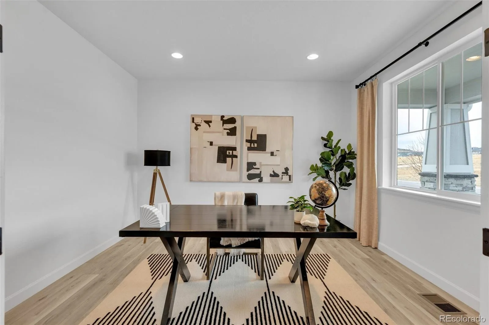 The large gourmet kitchen features generous prep space, abundant cabinetry, and a large eat in dining area, with open flow into the main living spaces suited for daily living and entertaining. Luxury vinyl plank flooring adds durability and style across the primary areas. A dedicated office with French doors provides a quiet, enclosed workspace ideal for remote work or study.