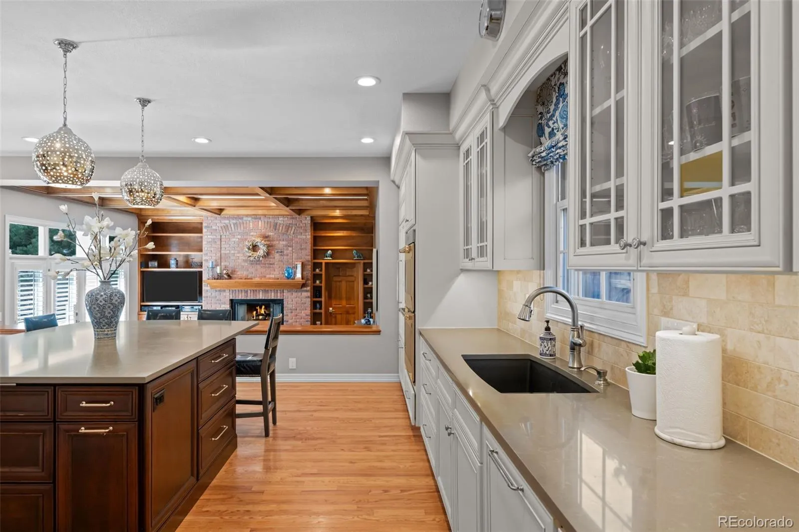 Washington Park East | Elevated Living Just Steps from It All! Perfectly positioned just around the corner from Gaylord Street & only four blocks to Washington Park, this exceptional 5-bedroom, 4-bath residence offers the best of Denver living. Built in 1994 & thoughtfully renovated in 2017, this home blends timeless craftsmanship with modern luxury in one of the city’s most sought-after neighborhoods. Tall ceilings & exquisite architectural details set the tone throughout, including custom built-ins and decorative coffered ceilings rarely found in newer construction. Hardwood floors extend across the main level and stairways, and dual HVAC systems ensure year-round comfort. The gourmet kitchen is designed to impress and perform, featuring a Sub-Zero refrigerator, Wolf range & double ovens, beverage & wine fridge, and microwave drawer. Abundant cabinetry with pull-outs, a butler’s pantry, generous counter space, and a large island make this space as functional as it is beautiful. Enjoy casual dining at the island or breakfast nook, and host memorable gatherings in the formal dining room. The main-floor office offers privacy with pocket doors and convenient access to the backyard patio—ideal for work-from-home flexibility. A marble gas fireplace anchors the elegant formal living room, creating a warm and inviting focal point. The primary suite is a true retreat, complete with a private south-facing balcony overlooking the maturely landscaped backyard. The spa-inspired bathroom features heated floors, a freestanding soaking tub, and dual custom closets. A convenient laundry chute connects directly to the main-floor laundry room. Three additional upper-level bedrooms are generously sized, each with vaulted ceilings and spacious closets. The recreation room is built for entertaining, offering custom built-ins, a wet bar, and flexible space that can easily be expanded by opening the room divider. This home is designed for effortless hosting & comfortable everyday living.