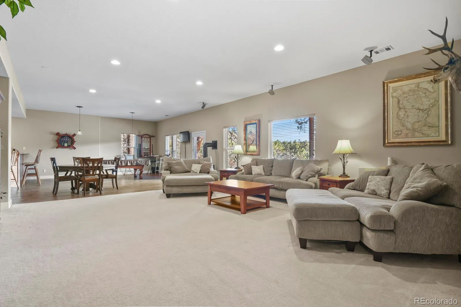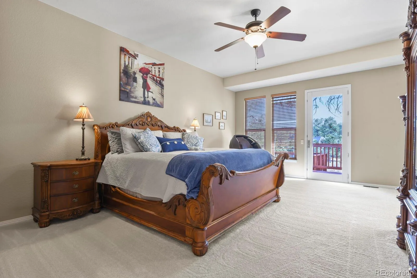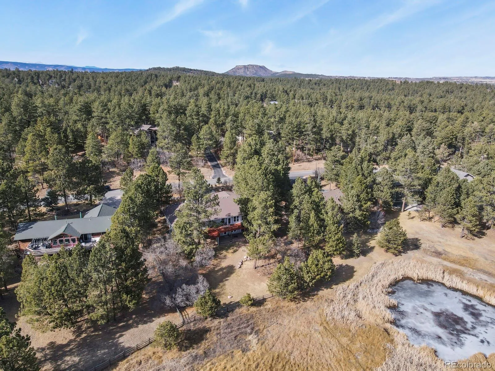 Welcome home to this stunning 5-bedroom, 4-bath ranch-style retreat, backing to open space! Thoughtfully designed to blend comfort, functionality, and the beauty of its natural surroundings. This brilliantly designed floor plan offers effortless main-level living while perfectly framing serene views of the surrounding landscape. This functional floorpan is exactly what you’ve been looking for! Main floor boasts 3 bedrooms and 3 baths for convenience. Large eat-in kitchen with granite counters and updated high quality appliances. Laundry room with cabinetry includes a convenient scrub sink! The oversized main level primary suite features its own walk-out to the rear deck with Sunbrella canopy where you can take in the abundant local wildlife or add a spa to soak your cares away after a long day. Primary also offers a luxurious spacious 5 piece bath and custom walk-in closet! The light and airy main floor flows seamlessly into an equally light and bright finished walk-out basement. This abundant space allows for entertaining large crowds, relaxing, or hosting guests in the secondary primary suites with attached 5 piece bath. Basement also features a cozy wood stove, separate home gym, and several storage areas to hide away clutter. This home could work very well for multigenerational living. Major systems have been updated within the past 3 years. This home is move-in ready! Whether you’re into enjoying quiet mornings or lively gatherings, this home truly has it all! Backing to open space, the property offers exceptional privacy and a true connection to nature with no rear neighbors, just beautiful scenery. With no HOA, you’ll also enjoy the freedom to park your RV or trailers. A rare combination of space, privacy, and thoughtful design, this home is a true sanctuary! Only 2 miles to Larkspur Elementary and 2 miles to Bear Dance Golf Club! Only 8 Miles to Safeway and even closer to the new proposed Castle Rock Costco location.