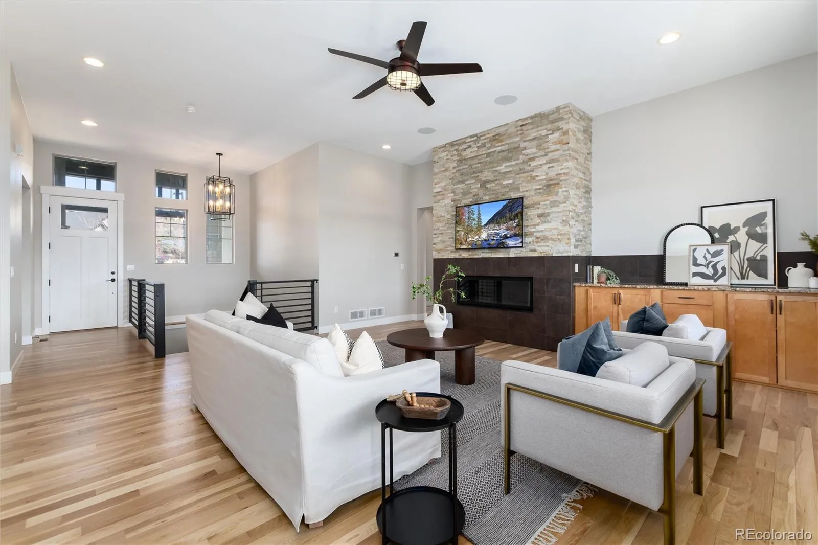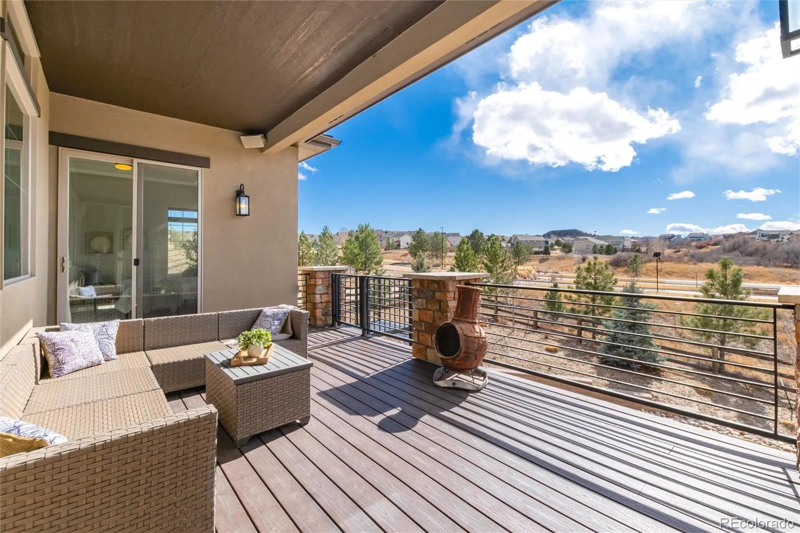 Welcome to Plum Creek in Castle Rock, where Colorado beauty meets elevated living. Perfectly situated on nearly a half acre at the end of a private cul de sac, this custom-built home has sweeping views of Devil’s Head and Quarry Mesa – a breathtaking backdrop from sunrise to sunset. With a brand new Class-4 roof and fresh exterior and interior paint, this home is move-in ready! Upon entry, you’ll appreciate the refinished hardwood floors, soaring 10’ ceilings, 8’ doors, and an open floorplan designed for both everyday living and entertaining. Expansive windows in the living room frame the views, while a welcoming fireplace and modern stair railing add clean architectural detail. The functional kitchen features upgraded Bosch appliances, ample prep space, a walk-in pantry and seamless flow to the covered Trex deck for a la cart dining or into the dining and living areas. You’ll love the private primary suite with access to the upper deck – the perfect place to enjoy morning coffee or unwind in the evening while taking in the views. Your sanctuary extends into the primary bath with an upgraded freestanding tub to soak your cares away. With six bedrooms and four bathrooms, there’s flexibility for guests, work-from-home needs, or multigenerational living. The expansive finished walk-out basement adds versatility, featuring two additional bedrooms, a huge rec room, dedicated game area, theater or exercise room, and an entertainer’s wet bar with new appliances – ideal for hosting or fun family nights. Step outside to professional landscaping and enjoy the views from your newer hot tub (negotiable). An oversized 3-car garage offers plenty of room for vehicles and gear, and with NO HOA, you’ll appreciate the money saved! Located minutes from outdoor recreation and activities including Plum Creek Golf Club, Rhyolite Bike Park, Quarry Mesa Open Space trails, Philip S. Miller Park and amphitheater, outlet shopping, and the charming Historic Downtown Castle Rock!