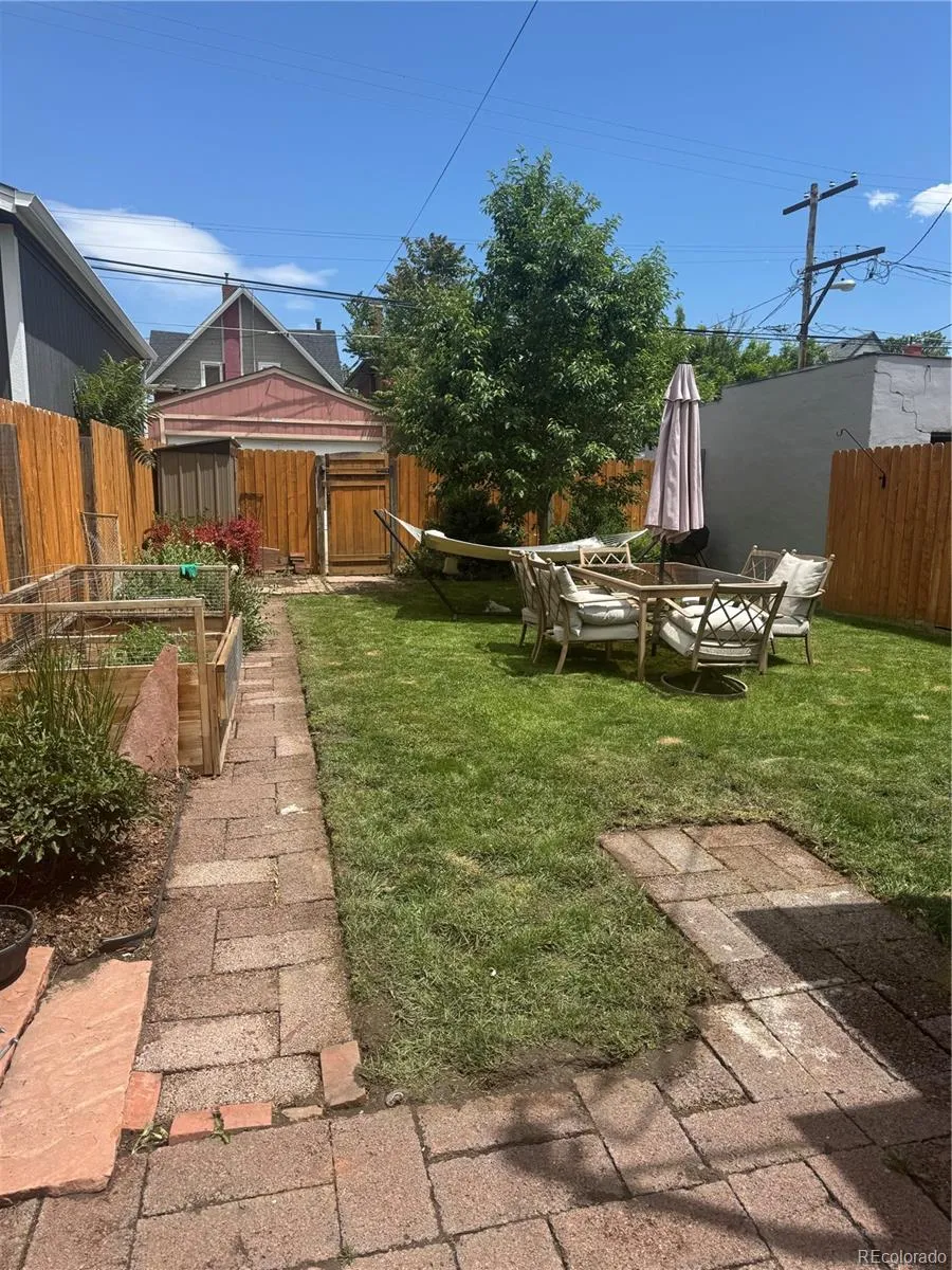 Outside, the property is beautifully landscaped. The backyard features garden beds with water lines and plenty of space to create your ideal outdoor oasis—or even add the garage of your dreams. A large, covered front porch facing west is the perfect spot to unwind with evening sunsets, enjoy a glass of wine, or greet neighbors as the day winds down. Just blocks from Wash Park and moments from South Broadway and Alameda favorites like Levin Deli and Lucile’s, this location offers the best of Denver living—close to all the action, yet tucked away on a quiet block.