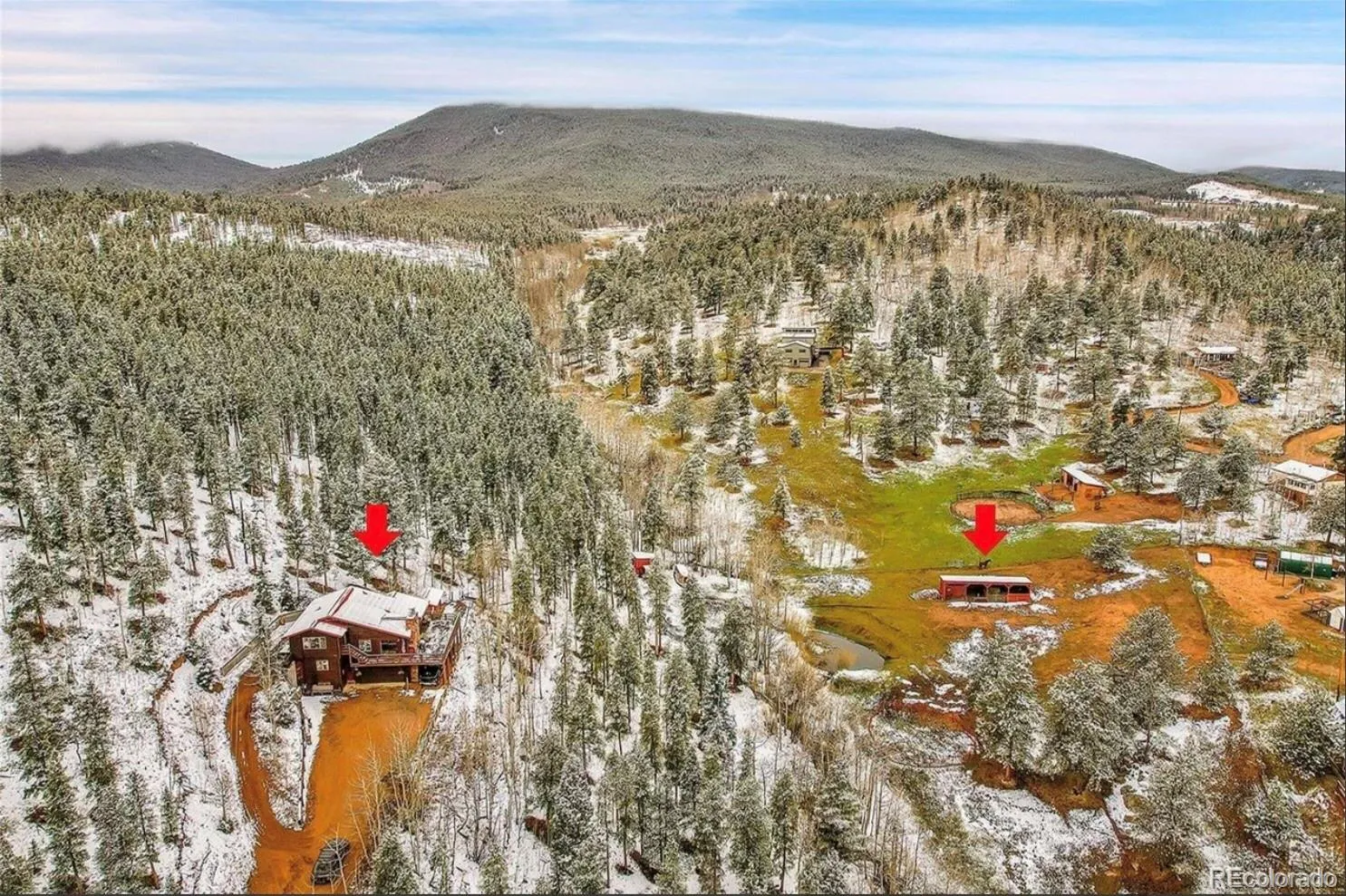 Panoramic mountain views, a year-round creek, private pond, and direct access to National Forest land define this rare mountain retreat. Set on over 9 acres, this private 3-bedroom home offers immediate access to endless hunting, hiking, horseback riding, ATV adventures, and outdoor exploration—right from your doorstep. The property has been recently fire mitigated, offering added peace of mind while preserving the natural beauty of the land. Designed with both recreation and functionality in mind, the property also features a well suitable for watering horses or livestock, making it ideal for equestrian or agricultural use. Tucked at the back of a quiet, equine-friendly subdivision, this updated home combines exceptional privacy with sweeping, unobstructed vistas in every direction. Inside, you’ll find a beautifully appointed kitchen with custom cabinetry and granite countertops, blending rustic charm with modern comfort. Equestrian enthusiasts will appreciate the fully fenced pasture and turnkey infrastructure, including a large loafing shed, round pen, tack room, hay storage, chicken coop, and ample space for tools and equipment. The versatile outbuildings also offer endless potential for a workshop, hobby space, or creative studio. Ride your horse or ATV directly from the property through the neighborhood to the renowned Slaughterhouse Road, opening up miles of trails into Pike National Forest. Year-round recreation awaits just outside your door, from jeep trails and hiking to horseback riding and camping. Enjoy the charm of nearby Bailey with local favorites like Aspen Peak Cellars, while remaining conveniently located—just 30 minutes to Red Rocks Amphitheatre, about 35 minutes to Littleton, a little over an hour to Denver International Airport, and just over an hour to world-class skiing in Breckenridge. This is Colorado mountain living at its finest—where privacy, recreation, and natural beauty come together in one extraordinary property.
