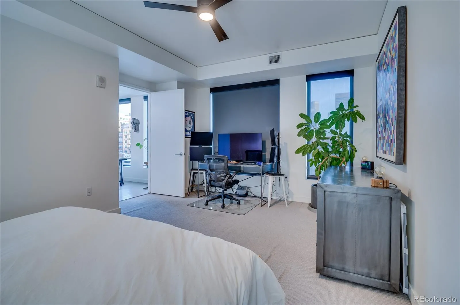 This amazing residence is THE, I repeat, THE largest 1BR unit in the entire building and one of the few oriented towards the southwest, where all the sun is. It’s even larger than most of the 2 bedroom units and features a rare primary suite with windows. Every room is flooded with natural light highlighting a fully open floor plan and a vibrant view of downtown. However, there are fully automated blinds on every window for times when you prefer privacy. The ample primary suite includes a five piece luxury bath with views of Union Station from even the bathtub, a dream closet and built in stackable washer & dryer.