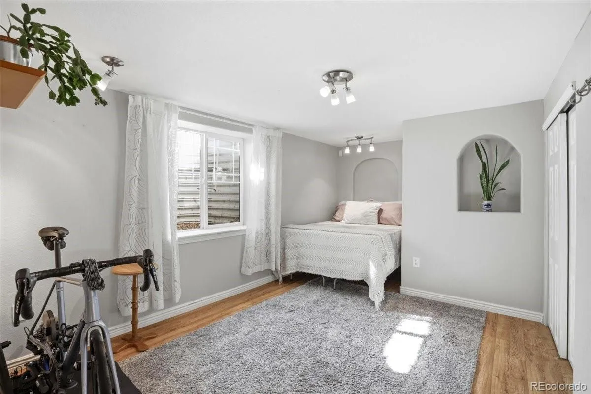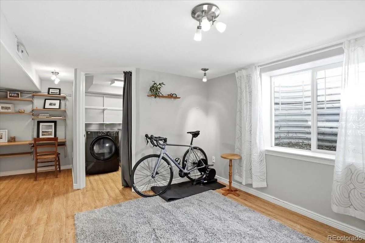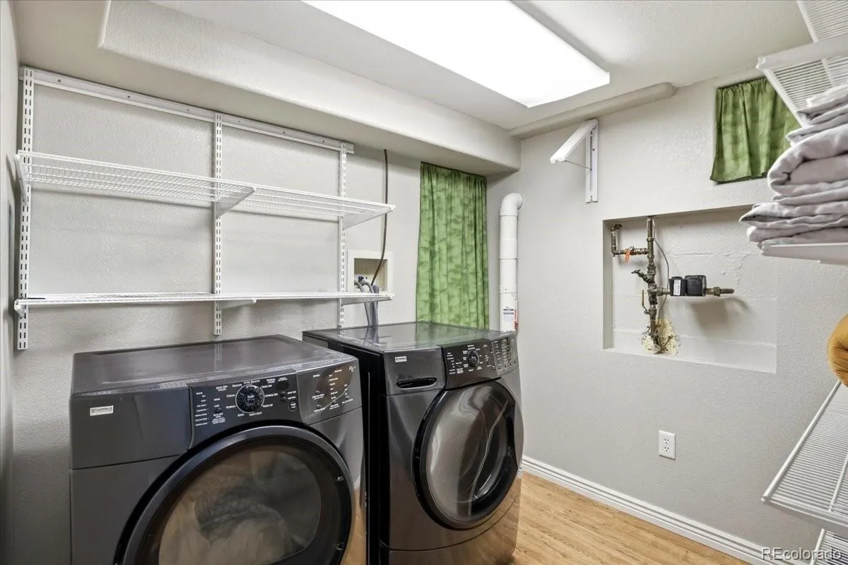 Two bedrooms and two bathrooms are conveniently located on the main level, including a spacious primary suite with a private ensuite bath. The basement adds even more versatility with a large third bedroom, office nook, and a laundry room complete with additional shelving and storage.