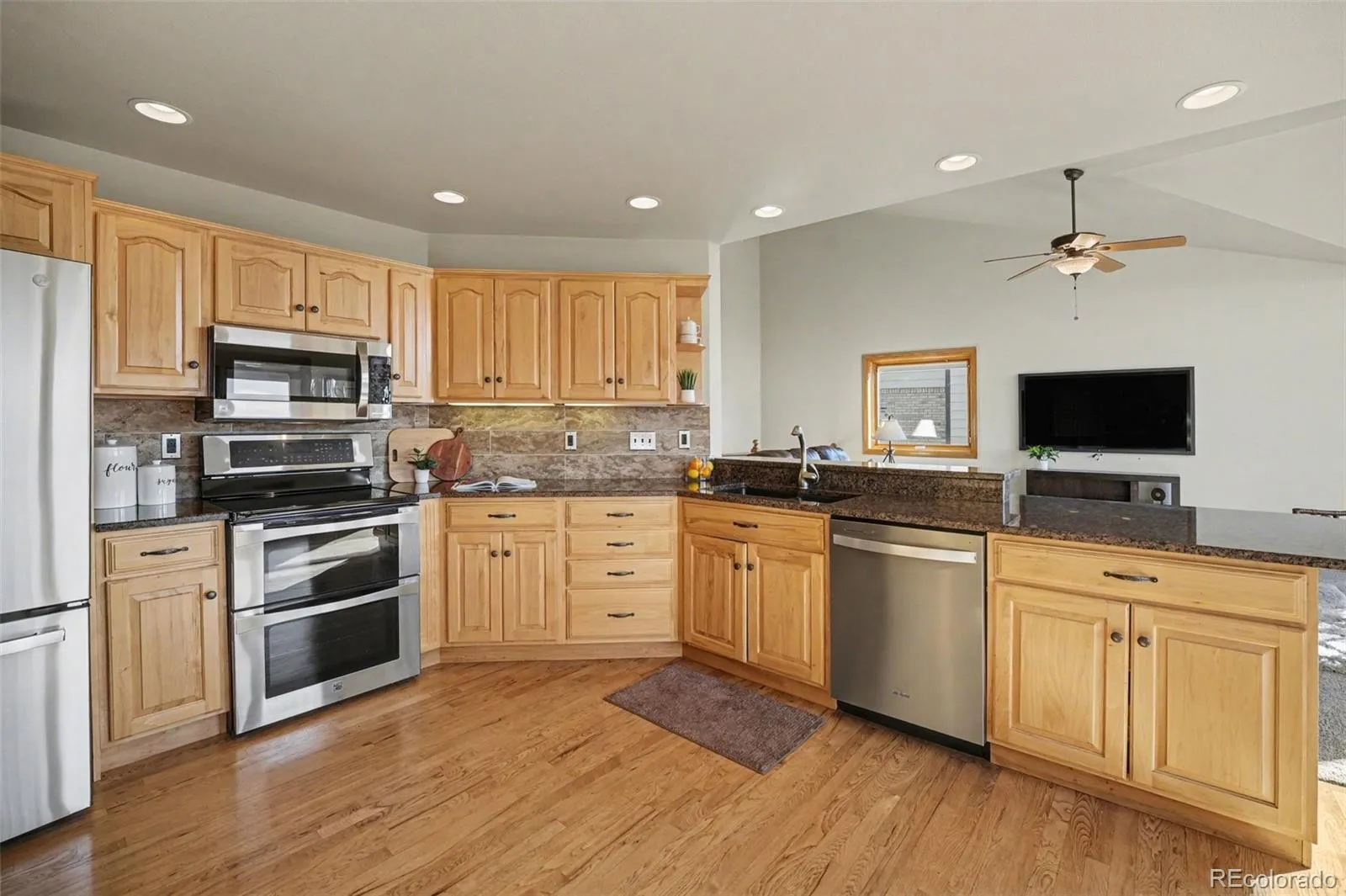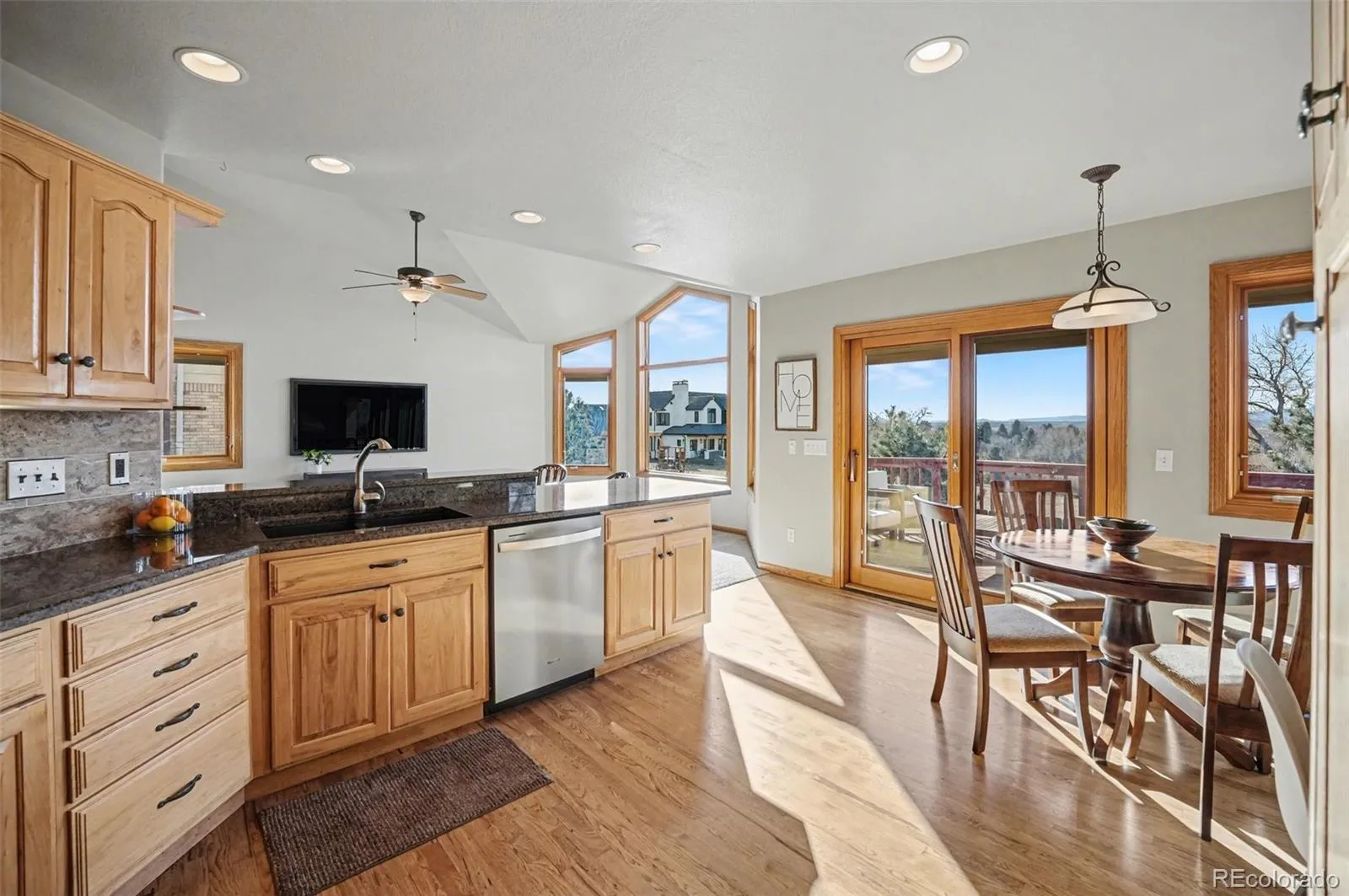 Beautiful brick custom ranch offering true main level living & breathtaking mountain views in the highly sought after Stoneview neighborhood. Perfectly positioned on a premium lot, this one owner home showcases some of the best mountain views in the community. Step inside to a light filled, open layout designed for both everyday living & entertaining. The kitchen features ample cabinetry, stainless steel appliances, a tile backsplash, & a cozy eat in dining space, all flowing seamlessly into the main living areas. Large windows frame the mountain views throughout the kitchen, dining, family room, & primary suite, bringing Colorado’s beauty right into your home. The main level offers two spacious living areas, creating flexibility for gathering or relaxing. The primary suite is a true retreat, where you can wake up to mountain views & step directly onto the expansive deck. Two additional bedrooms provide ideal space for guests, kids, or a home office, along with the convenience of main floor laundry complete with washer & dryer. The finished basement expands your living space with a generous rec area, wet bar, 3/4 bath, bedroom setup, workshop, & storage, making it perfect for entertaining, hobbies, or multi generational living. Outdoor living shines here. Enjoy your morning coffee at sunrise or unwind in the evening as you take in the sweeping mountain views from the large deck. The private backyard offers space to garden, entertain, or simply enjoy Colorado living. Additional highlights include no HOA, low taxes, a spacious two car attached garage, storage shed, & garden beds. Furnace & AC replaced in 2023. Located within walking distance to Sierra Elementary & feeding into Jefferson County’s top schools, with easy access to open space, miles of trails, & convenient commutes to both Denver & Boulder. A rare opportunity to own a home with incredible views, a functional floorplan, & the ability to make it your own in one of Arvada’s most desirable communities.