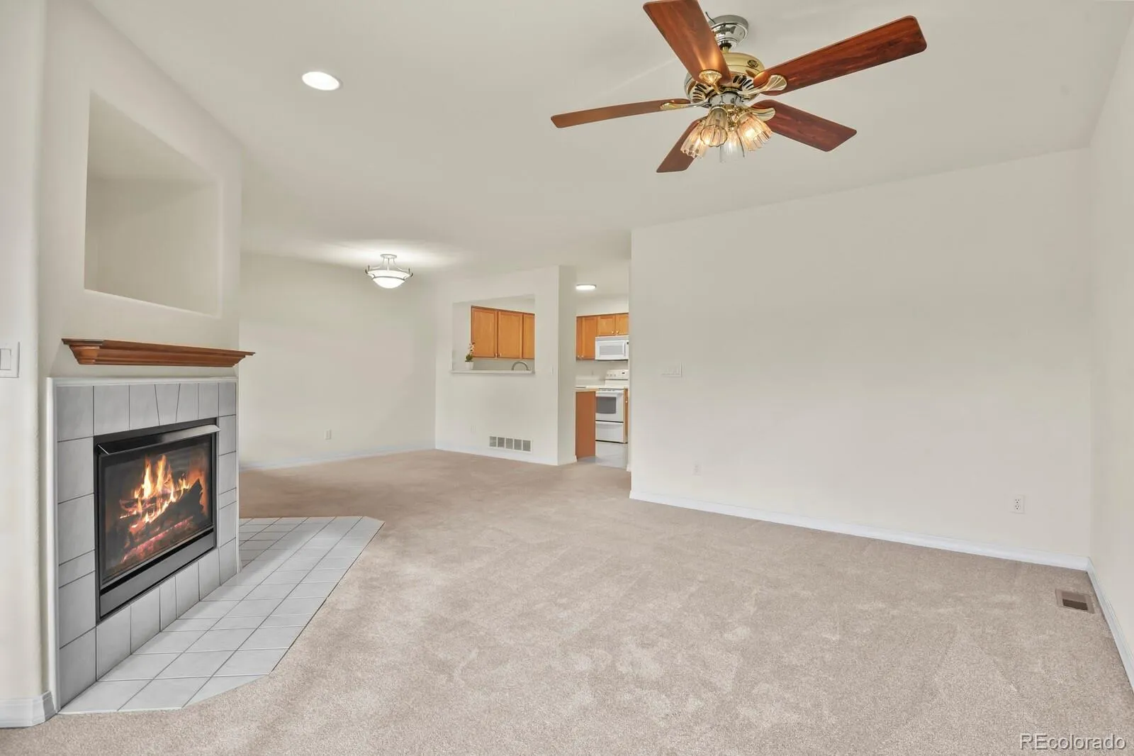 Built in 2000, this 3-bedroom, 2.5-bath townhome includes a main level living area with gas fireplace and vaulted ceiling in primary bed. Kitchen includes all appliances and sits adjacent to dining space. Upper level includes two bedrooms, each with an ensuite full bath and the primary includes a walk-in closet. The unfinished basement includes an egress window, vinyl plank flooring and fabric covered walls creating a nonconforming bedroom or flex space, a laundry room and storage area. Enclosed front porch with a privacy gate and storm door provides outdoor space. Recent updates include a brand-new roof (2023) and fresh exterior paint (Jul. 2025) and new carpet (Sep. 2025). Located in Challenger Park community in Parker with direct proximity to parks, trails, shopping, and commuter routes. Approximately 0.1 mi to Challenger Regional Park with fitness center, multi-use fields, playgrounds, and trail connections, plus nearby access to the Cherry Creek Regional Trail. King Soopers at Stonegate Village is approx. 0.3 mi, along with additional dining and retail options. Convenient access to E-470 and Lincoln Ave for regional travel. Park-n-Ride and Kunjani World Coffeehouse approx. 0.3 mi. Detached garage #81 includes built-in storage and attic storage. HOA covers water, sewer, trash and more. See floorplans in photos.