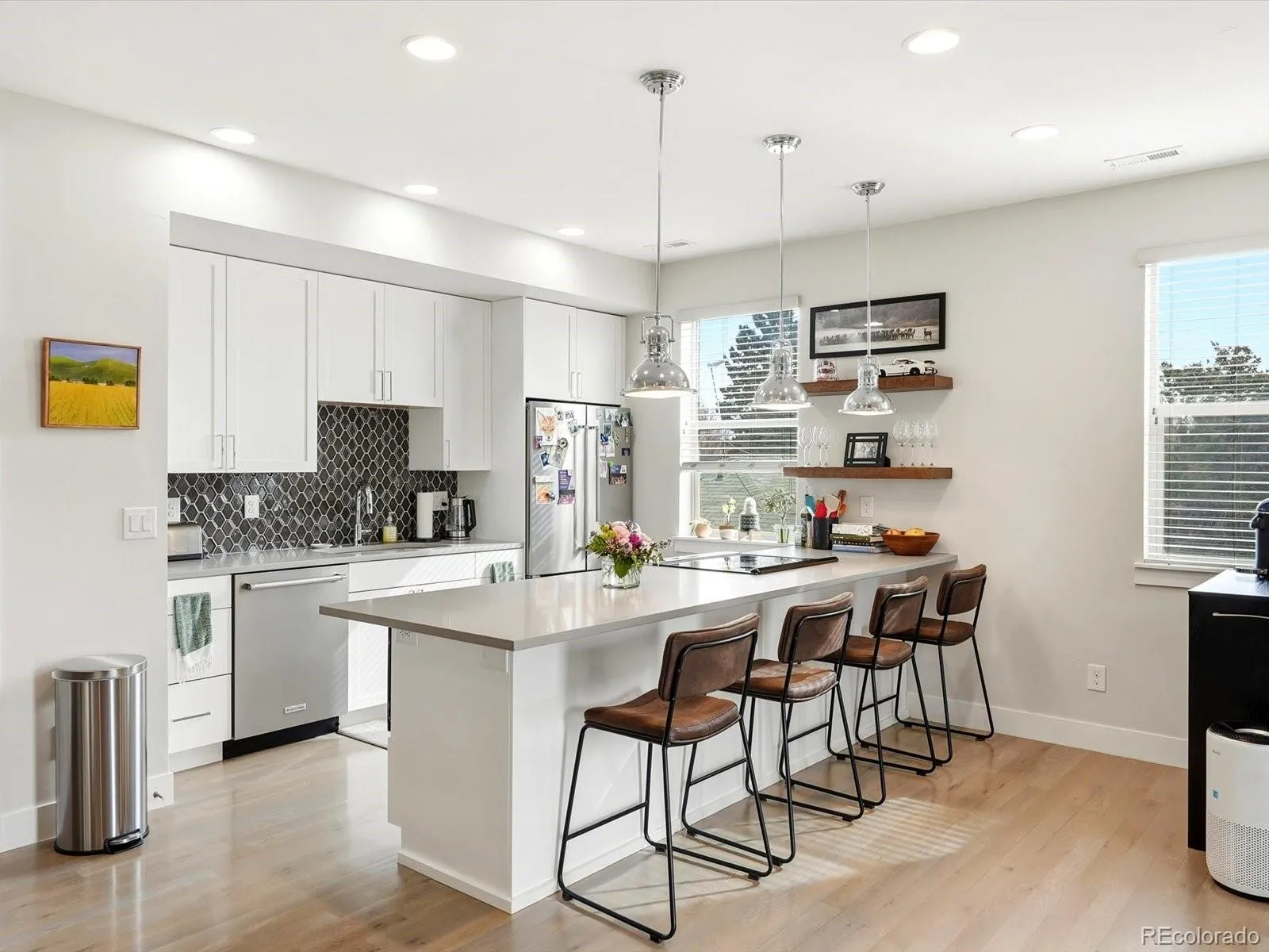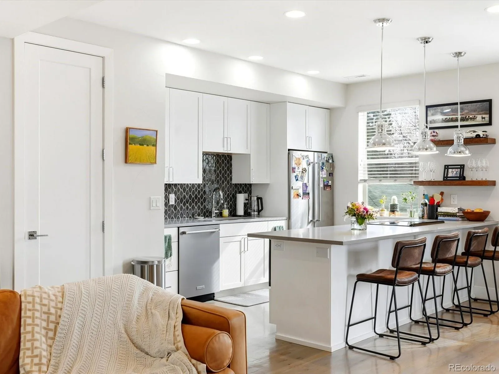 Step into modern living with this exceptional end-unit townhome at 2190 S Birch, an entertainer’s dream in the heart of University Hills. Boasting nearly 1,300 square feet, it features one of the largest floorplans in the community, complete with a private-use additional parking spot and an oversized one-car garage. The custom-designed open-concept main floor is a showcase of contemporary style, with sleek stainless steel appliances anchoring the chef’s kitchen and a seamless flow between living and dining spaces perfect for hosting or relaxing. Upstairs, the third-floor bedroom level offers a luxurious retreat, including an oversized primary suite with a spa-like en suite featuring a walk-in shower, double vanity, and spacious walk-in closet, alongside a second bedroom with its own en suite full bath for ultimate comfort and privacy. The crown jewel is the expansive fourth-floor rooftop deck, offering breathtaking west-facing mountain views and ample space to entertain or unwind under Colorado’s stunning skies. This 2-bedroom, 2.5-bath home also includes plumbing for an additional half bath on the entry level, adding to its flexibility. The property has NO HOA! Situated just moments from University Hills’ shops, dining, and amenities, this stylish, move-in-ready home blends privacy, convenience, and unmatched charm. Don’t miss the chance to make it yours—schedule your showing today!