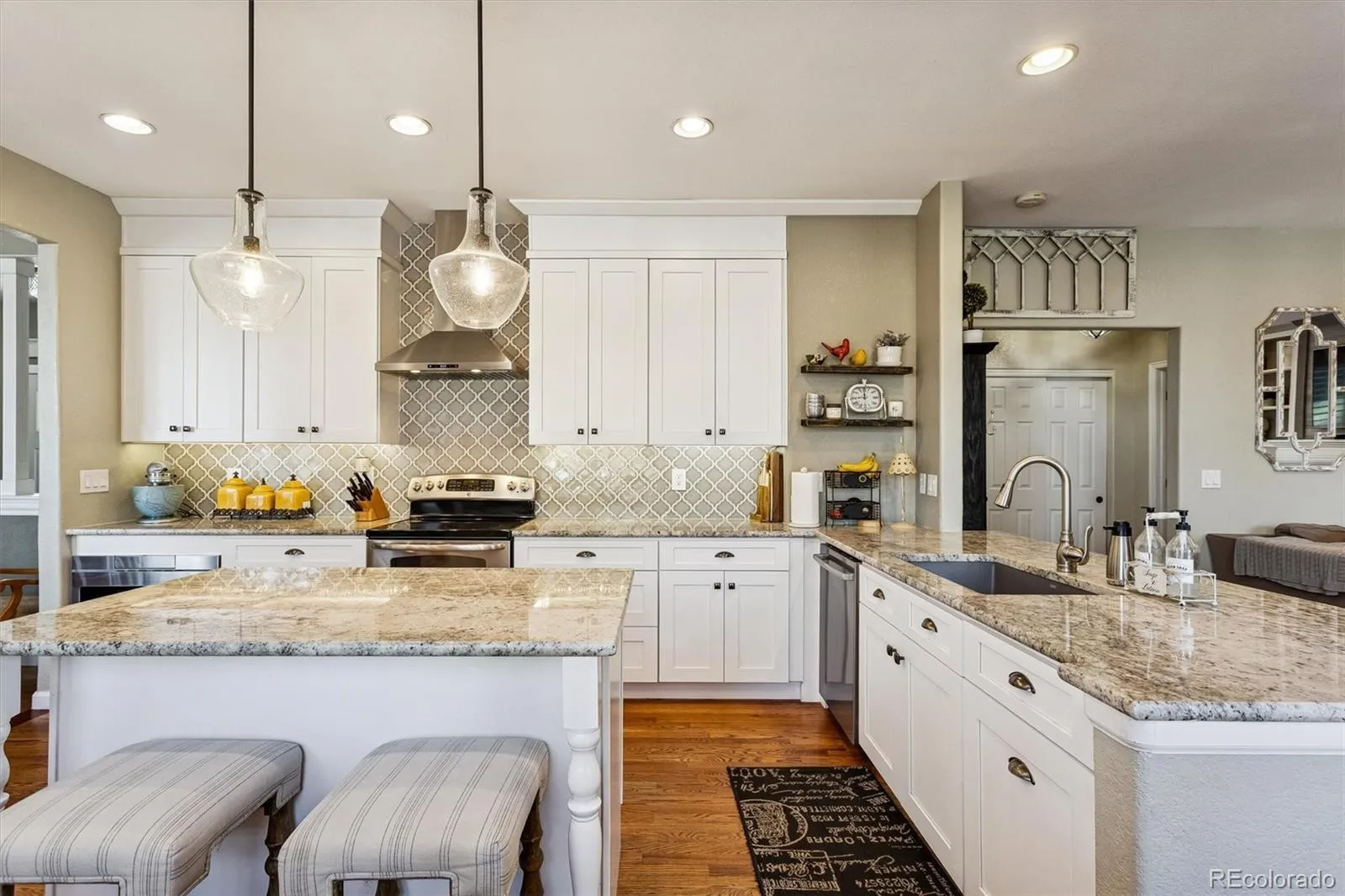 Stunningly remodeled and perfectly positioned in one of Littleton’s most coveted pocket neighborhoods, this show-stopping 4-bedroom, 4-bath home delivers over 3,500 square feet of elevated living with sweeping mountain views and radiant natural light in every room. From the moment you step inside, refinished floors, fresh designer paint, and sun-drenched formal living and dining spaces create an unforgettable first impression. The beautifully remodeled kitchen is the heart of the home, featuring granite countertops, stainless-steel appliances, new cabinetry, and a layout designed for seamless entertaining and effortless everyday living. The main level also offers a private office, stylish half bath, functional mudroom, and access to the oversized 3-car garage. Upstairs, the vaulted primary suite feels like a luxury retreat with a spa-inspired 5-piece bath and expansive walk-in closet, while three additional bedrooms, a versatile loft. On the main level and a convenient laundry room with utility sink provide comfort and flexibility for any lifestyle. The finished basement is built for entertaining and relaxation alike, complete with a spacious recreation area, abundant storage, a sleek bar with beverage fridge, and a ¾ bath. Outdoors, enjoy a generous patio with pergola ideal for summer gatherings, and a newer hot tub that stays. All appliances—including washer and dryer—are included. Just minutes from scenic trails, top-rated Jefferson County schools, shopping, recreation, and the iconic Red Rocks Amphitheatre, this meticulously upgraded home captures the very best of refined foothills living.