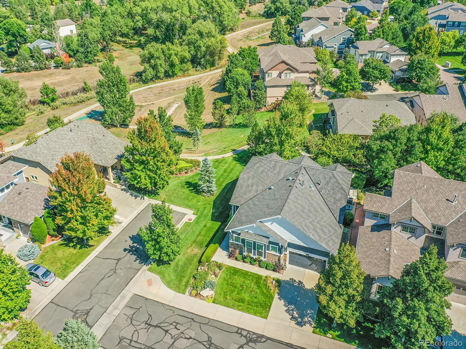 OPEN HOUSE Saturday 2/21 10-12*Perfectly positioned ranch-style home made for main-level entertaining on a sunny corner lot in Vintage Reserve, directly backing Coal Mine Trail! Enter this 3-bed, 3-bath gem from a tranquil covered patio into the light-filled main level, where soaring ceilings and warm hardwood floors create an inviting atmosphere. Make casual meals or dinner for a crowd in the open eat-in kitchen, featuring stainless steel appliances, a dedicated pantry, and a generous center island, while the breakfast nook opens to the patio for sipping coffee with a trail view. The connected living room, framed by a dramatic wall of windows overlooking open space, brings a gas fireplace, built-in shelving, and integrated sound for cozy movie nights or lively game days. Just steps away, the formal dining room shines with tray ceilings and a dramatic light fixture. Privately tucked at the back of the home, the primary suite offers a spacious retreat with wall-to-wall windows with greenspace views, direct patio access, and a five-piece en suite featuring a deep soaking tub, oversized shower, and a massive walk-in closet. Two additional bedrooms share a full bath, while a flexible office and finished laundry room complete the main level. Downstairs, the unfinished basement is primed for storage or expansion, including a ¾ bath and dedicated workroom. Outside, enjoy sunny weekends on the covered balcony or al fresco dining on the spacious patio framed by mature greenery, all backing to beautiful Coal Mine Trail, just a short stroll to Weaver Park. Centrally located only minutes from Clement Park, Raccoon Creek Golf Course, Southwest Plaza, and Aspen Grove shopping, and only 30 minutes from Downtown Denver or mountain adventure – this is turn-key Colorado living, right at your doorstep.