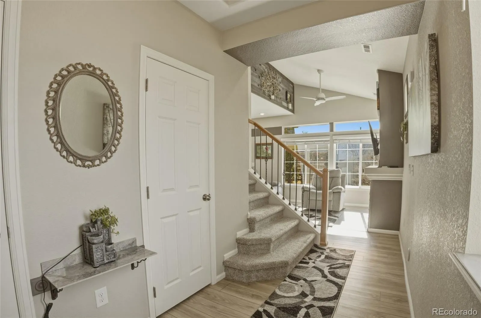Beautifully landscaped home with covered patio, artificial turf, and owned solar panels for added efficiency. The interior features a vaulted living room ceiling, fireplace, stacked stone and barnwood accents, and custom interior paint throughout with numerous thoughtful upgrades.