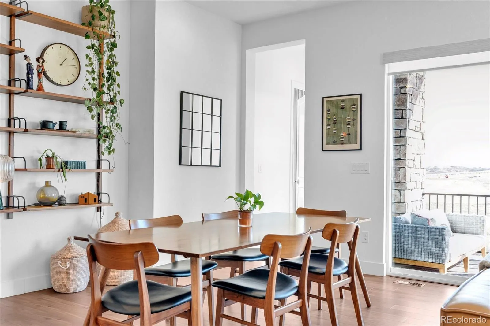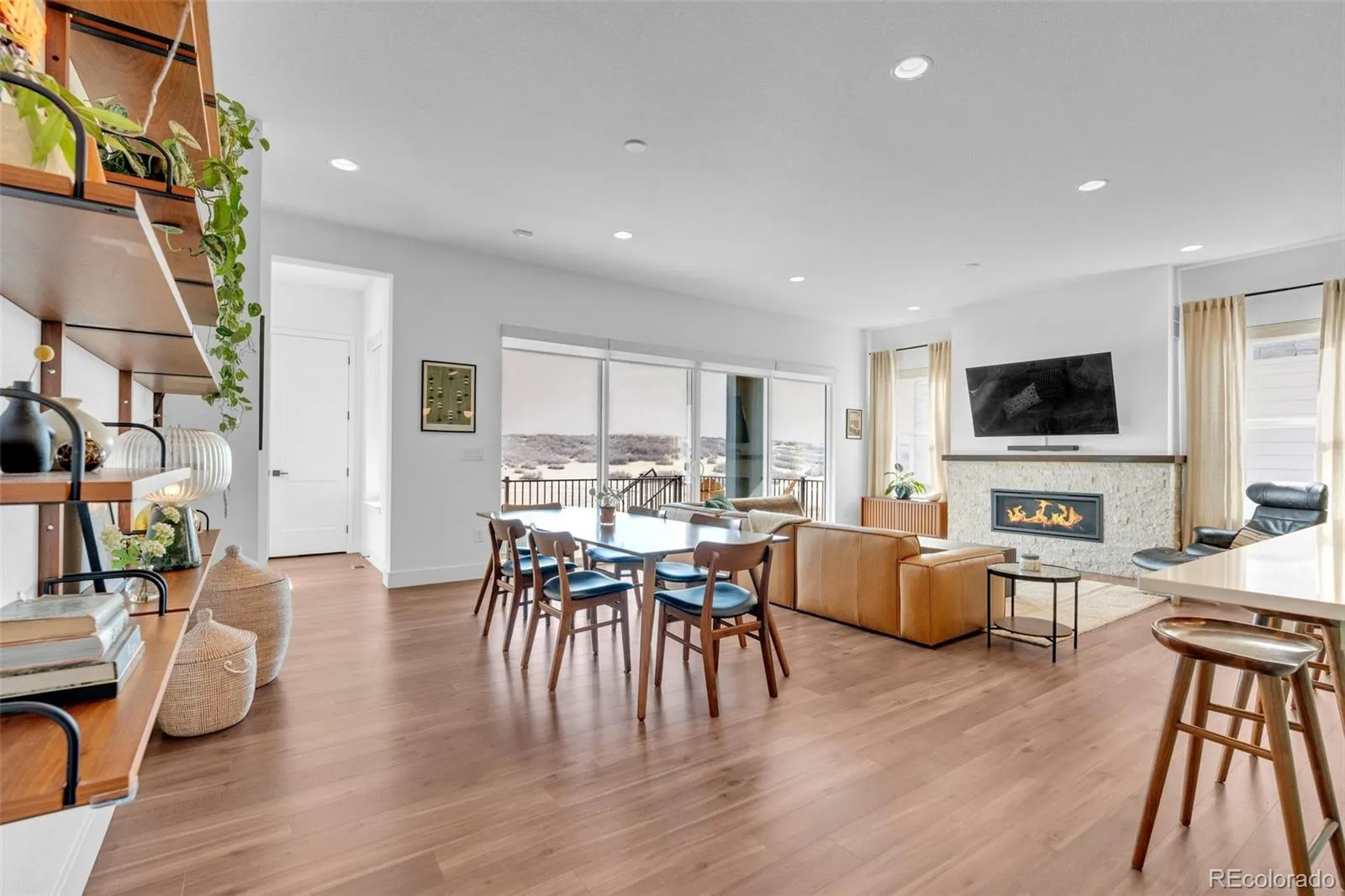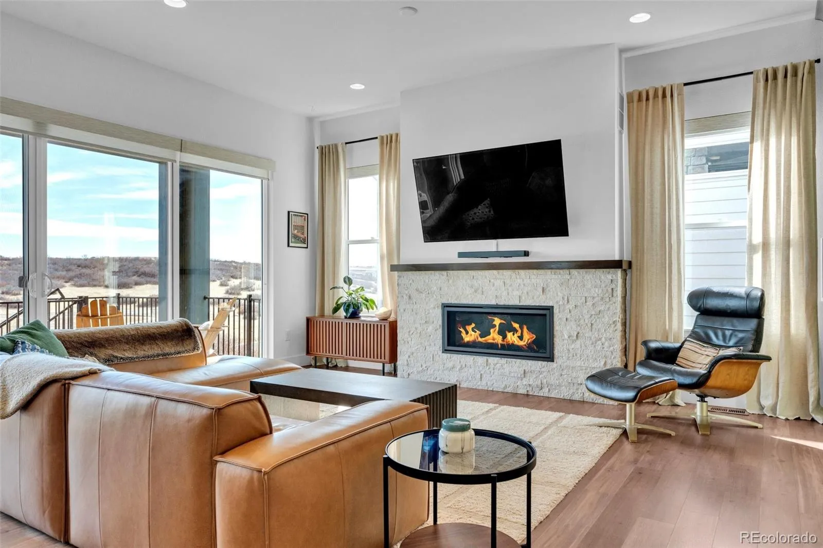 One of the best locations in The Canyons—backing to open space with peaceful views—this 4-bedroom, 4-bath home offers the space and flexibility you’ve been looking for. Step inside the foyer that leads to an open living and dining area with luxury vinyl flooring, a gas fireplace with stone-tile surround and warm wood accent, and oversized sliding doors that lead to a covered deck—perfect for morning coffee or sunset dinners. The gourmet kitchen is designed for gathering with ceiling-height custom cabinetry and crown molding, tile backsplash, stainless steel appliances, a gas cooktop, and a large center island with seating and a granite sink. A spacious walk-in pantry with built-in wood shelving keeps everything organized. The main-level primary suite is light and private, with custom carpet and serene views. The en-suite bath features tile floors, dual sinks, a large walk-in shower with a bench and privacy window, a separate water closet, and an oversized walk-in closet with built-ins. Also on the main level: a flex room (office/den/playroom), powder bath, and additional bedrooms with a full bath, plus a convenient mudroom/laundry with tile floors, shelving, and cabinetry. Downstairs, the walk-out lower level adds even more options—family room with large windows and a slider to the patio and backyard, an additional bedroom with French doors and room for an office/sitting area, a ¾ bath with a glass-door walk-in shower, plus access to unfinished storage. This incredible home backs to open space, has room to spread out, and a layout that fits real life. The Canyons is a new and highly sought-after neighborhood that offers an array of amenities, including trails, parks, a resort-style community pool and hot tub, and a community coffee house. Just 20 minutes to DTC or 15 minutes to Castle Rock. View more photos and a 3D tour at sites.listvt.com/6984rimridgeway