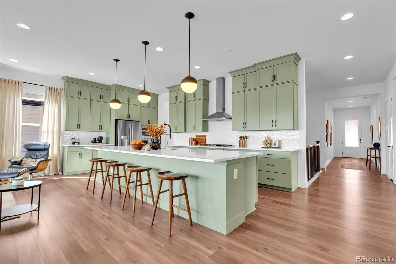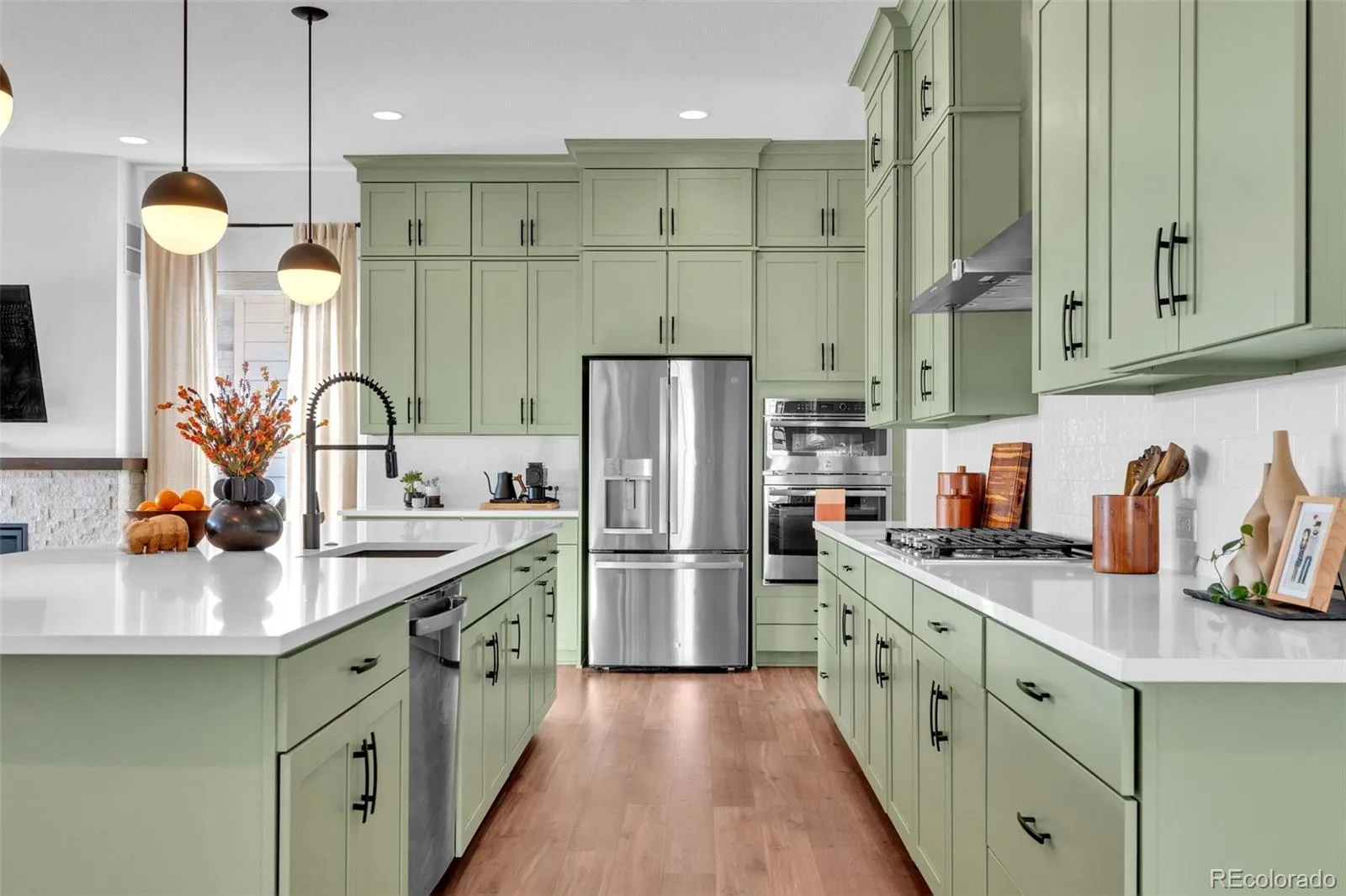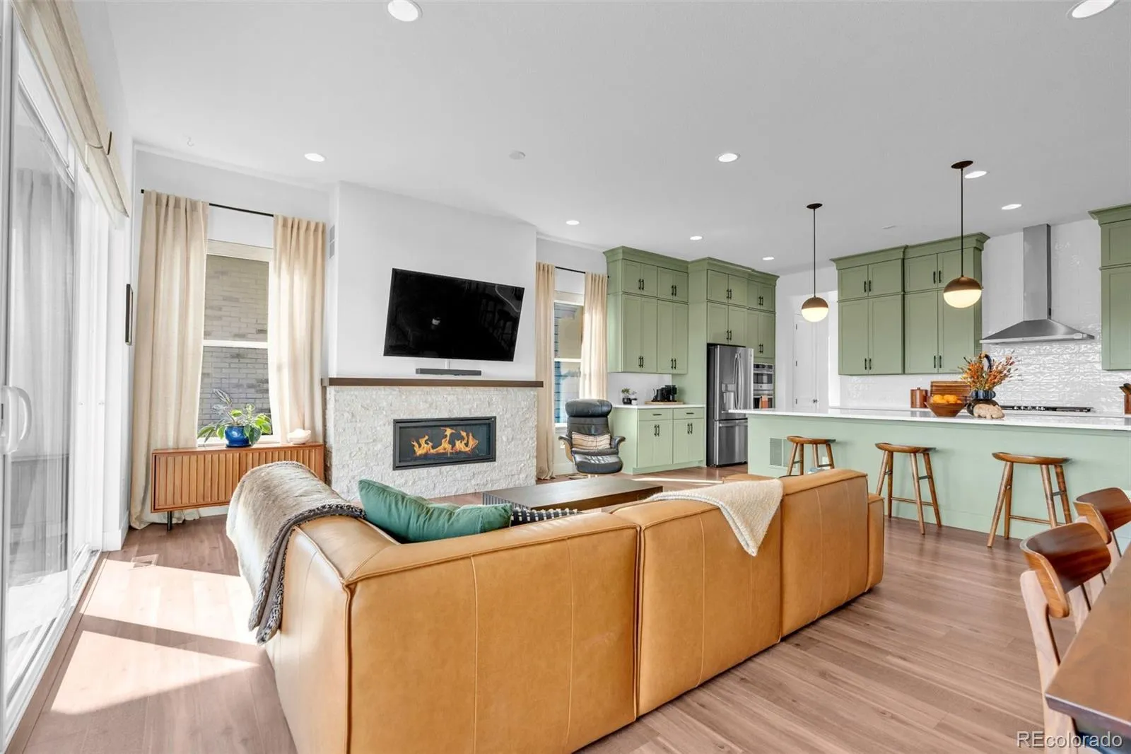 One of the best locations in The Canyons—backing to open space with peaceful views—this 4-bedroom, 4-bath home offers the space and flexibility you’ve been looking for. Step inside the foyer that leads to an open living and dining area with luxury vinyl flooring, a gas fireplace with stone-tile surround and warm wood accent, and oversized sliding doors that lead to a covered deck—perfect for morning coffee or sunset dinners. The gourmet kitchen is designed for gathering with ceiling-height custom cabinetry and crown molding, tile backsplash, stainless steel appliances, a gas cooktop, and a large center island with seating and a granite sink. A spacious walk-in pantry with built-in wood shelving keeps everything organized. The main-level primary suite is light and private, with custom carpet and serene views. The en-suite bath features tile floors, dual sinks, a large walk-in shower with a bench and privacy window, a separate water closet, and an oversized walk-in closet with built-ins. Also on the main level: a flex room (office/den/playroom), powder bath, and additional bedrooms with a full bath, plus a convenient mudroom/laundry with tile floors, shelving, and cabinetry. Downstairs, the walk-out lower level adds even more options—family room with large windows and a slider to the patio and backyard, an additional bedroom with French doors and room for an office/sitting area, a ¾ bath with a glass-door walk-in shower, plus access to unfinished storage. This incredible home backs to open space, has room to spread out, and a layout that fits real life. The Canyons is a new and highly sought-after neighborhood that offers an array of amenities, including trails, parks, a resort-style community pool and hot tub, and a community coffee house. Just 20 minutes to DTC or 15 minutes to Castle Rock. View more photos and a 3D tour at sites.listvt.com/6984rimridgeway