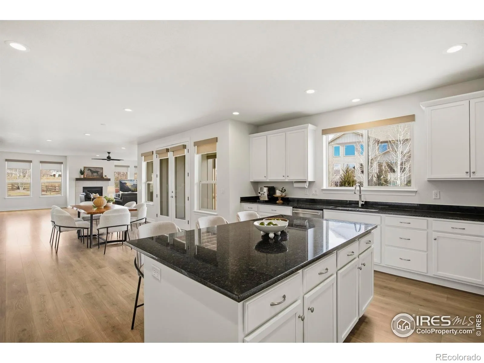 Discover turn-key elegance in this expanded, Toll Brothers-built 6-bedroom estate in Kechter Farm, where high-end sophistication meets family sanctuary. The interior shines with soaring ceilings, a private office, and a gourmet kitchen featuring KitchenAid appliances and a sprawling quartz island that flows seamlessly into the connected main-floor living and dining rooms. Designed for modern living, the home includes a 4-car EV-ready garage and dual laundry suites. The primary retreat is a true sanctuary, boasting a 21×20 sitting room and private covered deck. The upper level is thoughtfully designed with one ensuite bedroom and two additional bedrooms joined by a Jack and Jill bath. Enjoy the finished basement’s spacious rec room, wet bar, and two additional bedrooms. Outside, a private resort awaits with a putting green, basketball court, and expansive patio. Situated in the prestigious Fossil Ridge High district, this haven offers an unmatched Fort Collins lifestyle. Rest at ease knowing both the home and roof are only six years old!