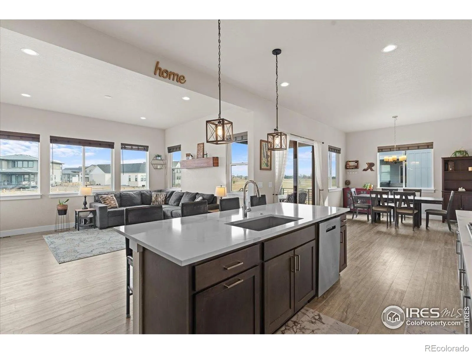 Welcome to your new home in Kitchel Lake! This home backs up to a HUGE open space and is a 5 minute walk to the lake. The grandeur continues as you make your way inside the home with the high ceilings and big windows! The kitchen is the highlight of the main floor with quartz counter tops, gas range/oven, walk in pantry, a coffee bar area, and a massive island that is perfect for hosting. The main level also has a gas fire place in the living room, large dining space, and an office nook or pay area for the kids. You’ll enjoy many dinners outside on the large composite deck. The backyard is fully finished and the irrigation system is on non potable water meaning no increased water bill in the summer time! All bedrooms are upstairs and the primary suite will be your sanctuary – complete with a glass wall shower, double vanity, and a large walk-in closet. If you need storage, this house has plenty between the unfinished basement and the garage. You HAVE to come see this one!