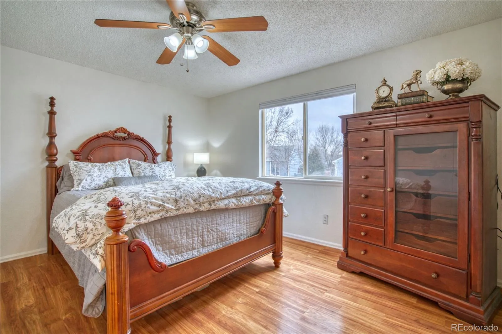 Tucked away in a quiet cul-de-sac, this beautifully maintained tri-level home sits on an expansive ¼-acre lot with stunning mountain views and effortless access to Interstate 25, making daily commutes a breeze. Consistently recognized among Colorado’s best small towns to live in, Frederick offers the perfect blend of small-town charm and modern convenience. Step inside to discover warm bamboo flooring flowing throughout the home, complemented by fresh interior paint that creates a bright, inviting atmosphere. The thoughtfully designed tri-level layout offers both openness and defined spaces, ideal for everyday living and entertaining. The kitchen shines with sleek stainless steel appliances and seamless flow into the main living areas. Upstairs, you’ll appreciate the convenience of having the laundry room on the same level as the bedrooms, making daily routines simple and efficient. The unfinished basement provides excellent potential for future expansion, storage, or customization to suit your needs. Outside, the generous backyard is truly a highlight, as it has been lovingly cultivated with an established garden setup and mature plum, apple, and peach trees. Fragrant roses, lilacs, and lavender add seasonal color and charm. A spacious deck extends your living space outdoors, perfect for relaxing evenings, entertaining guests, and taking in the mountain views on warm summer nights.